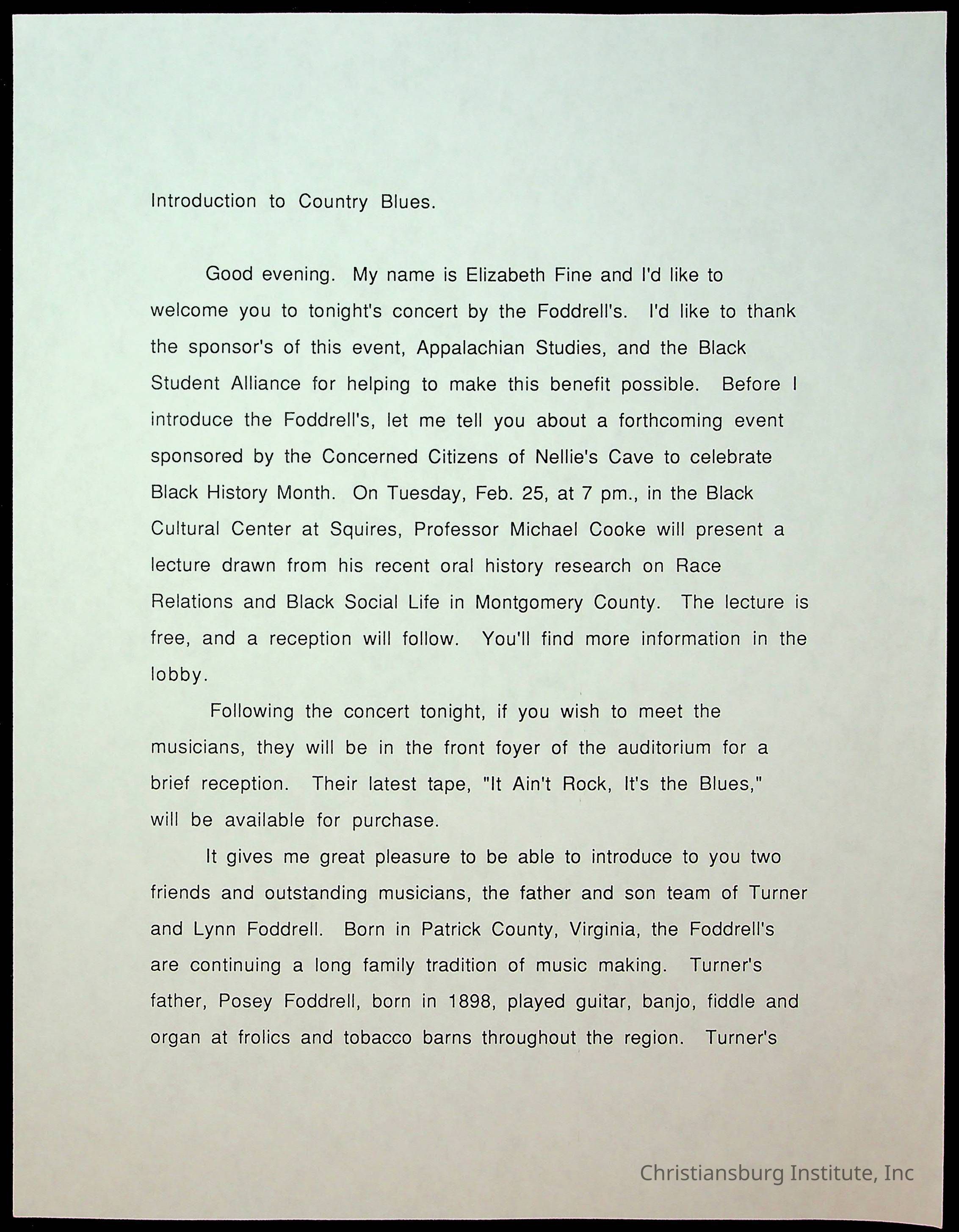 Copyright has been assigned to Christiansburg Institute Museum & Archives by Elizabeth Fine. For permission to publish materials created by the donor, contact CIMA@christiansburginstitute.com. Materials not created by Elizabeth Fine may still be under copyright.