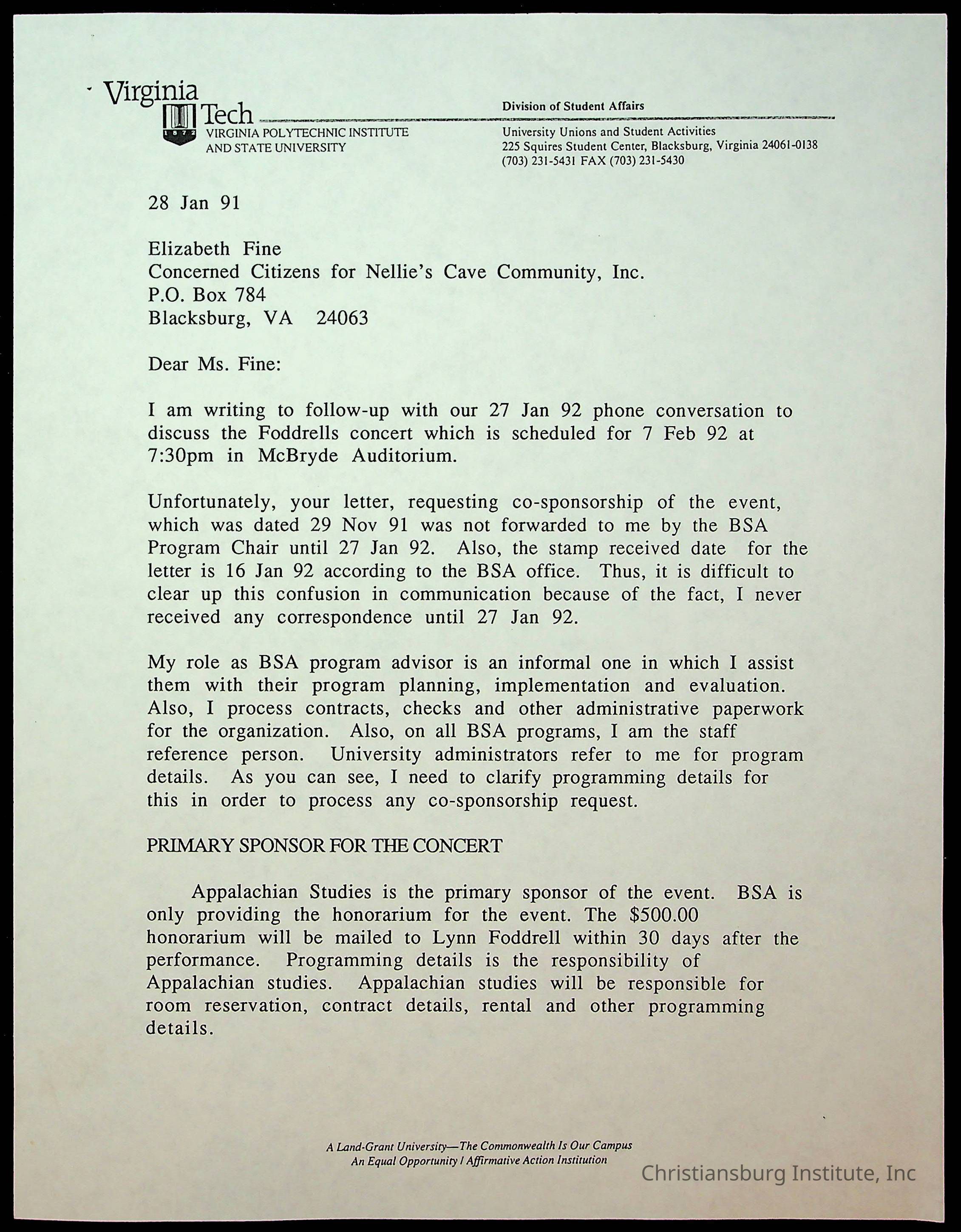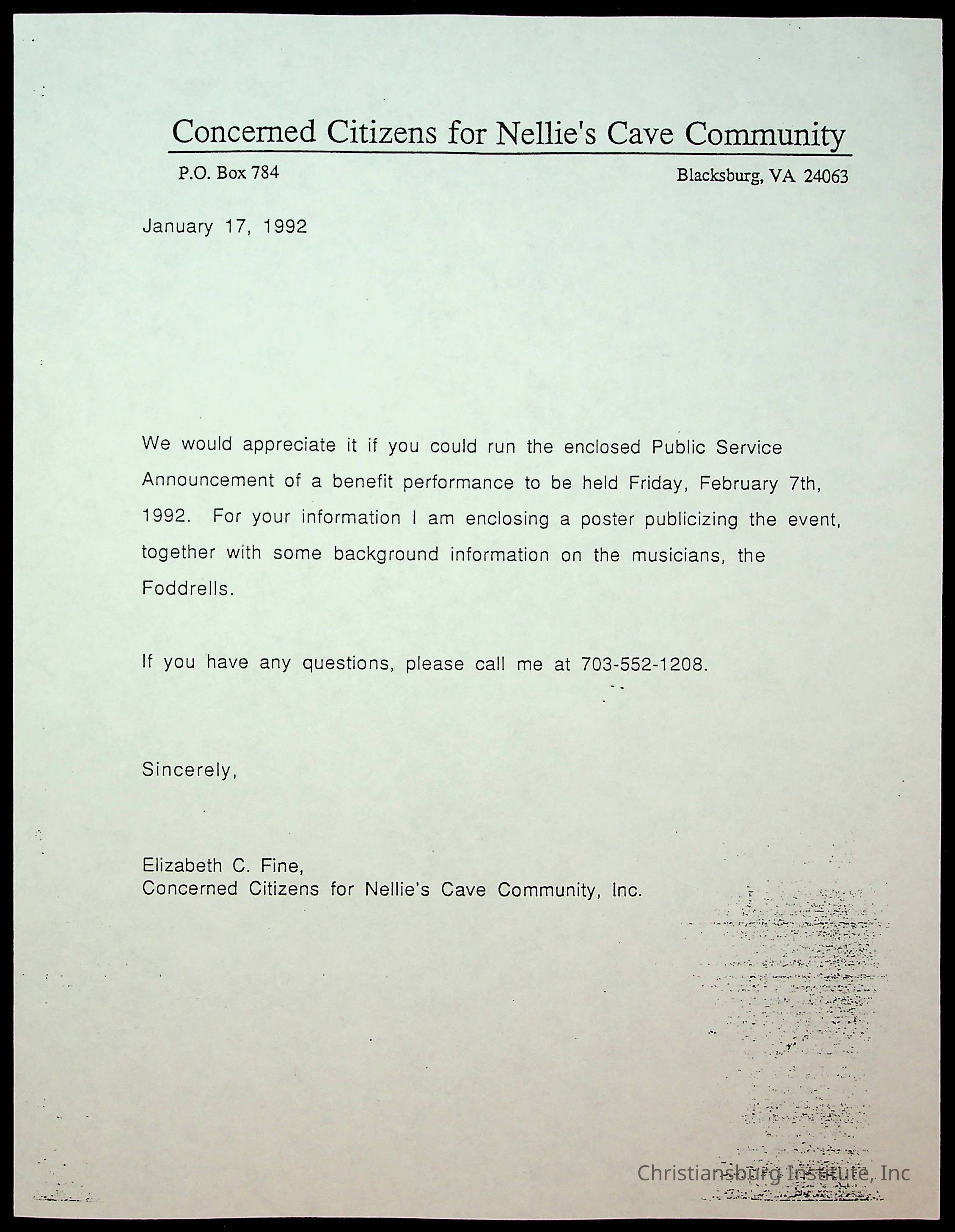 An archive of materials related to The Foddrells Concert to benefit Concerned Citizens for Nellies Cave Community, held on February 7th, 1992.