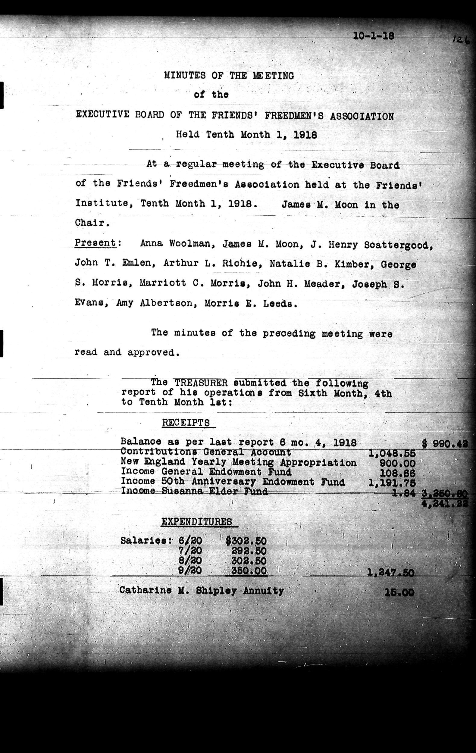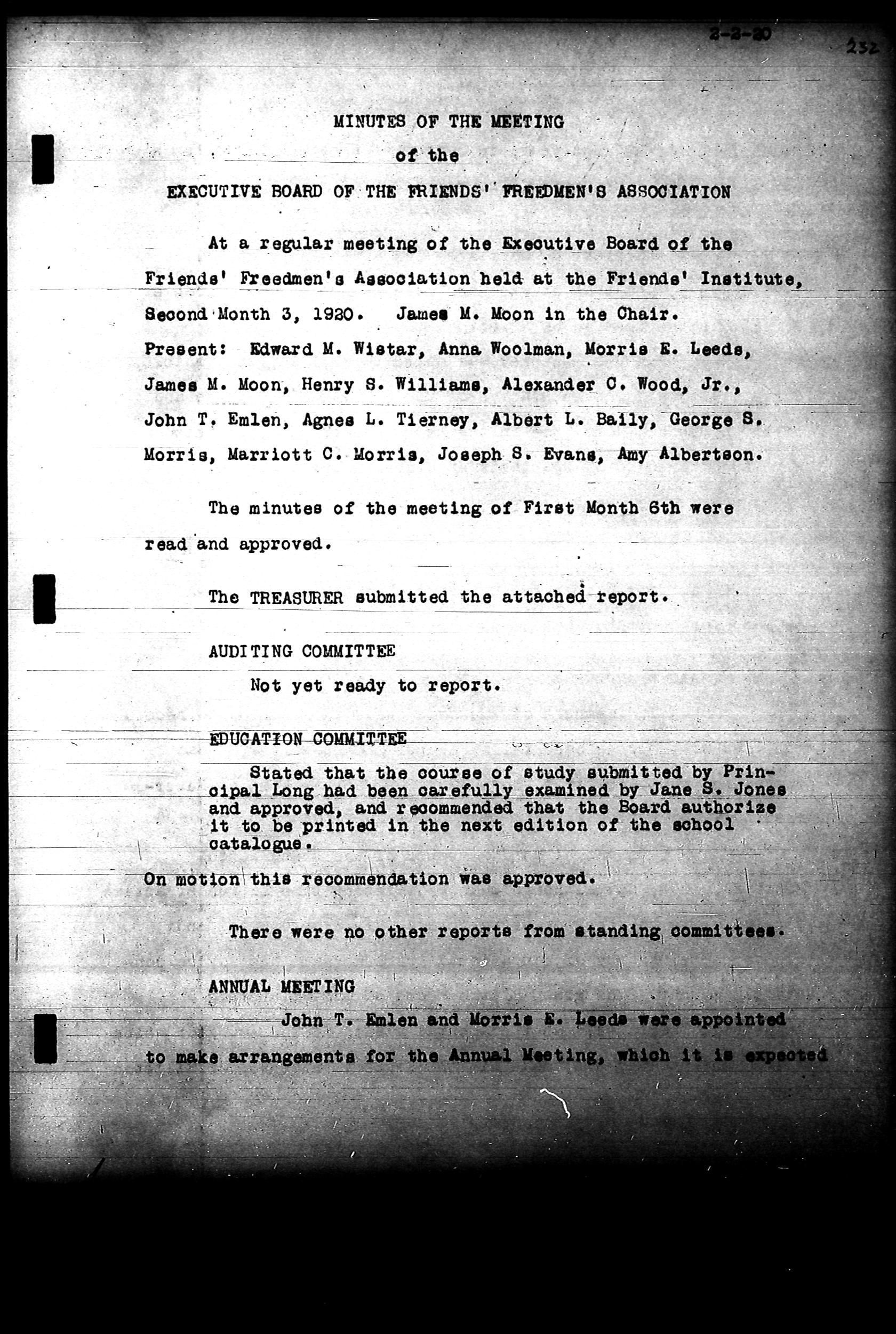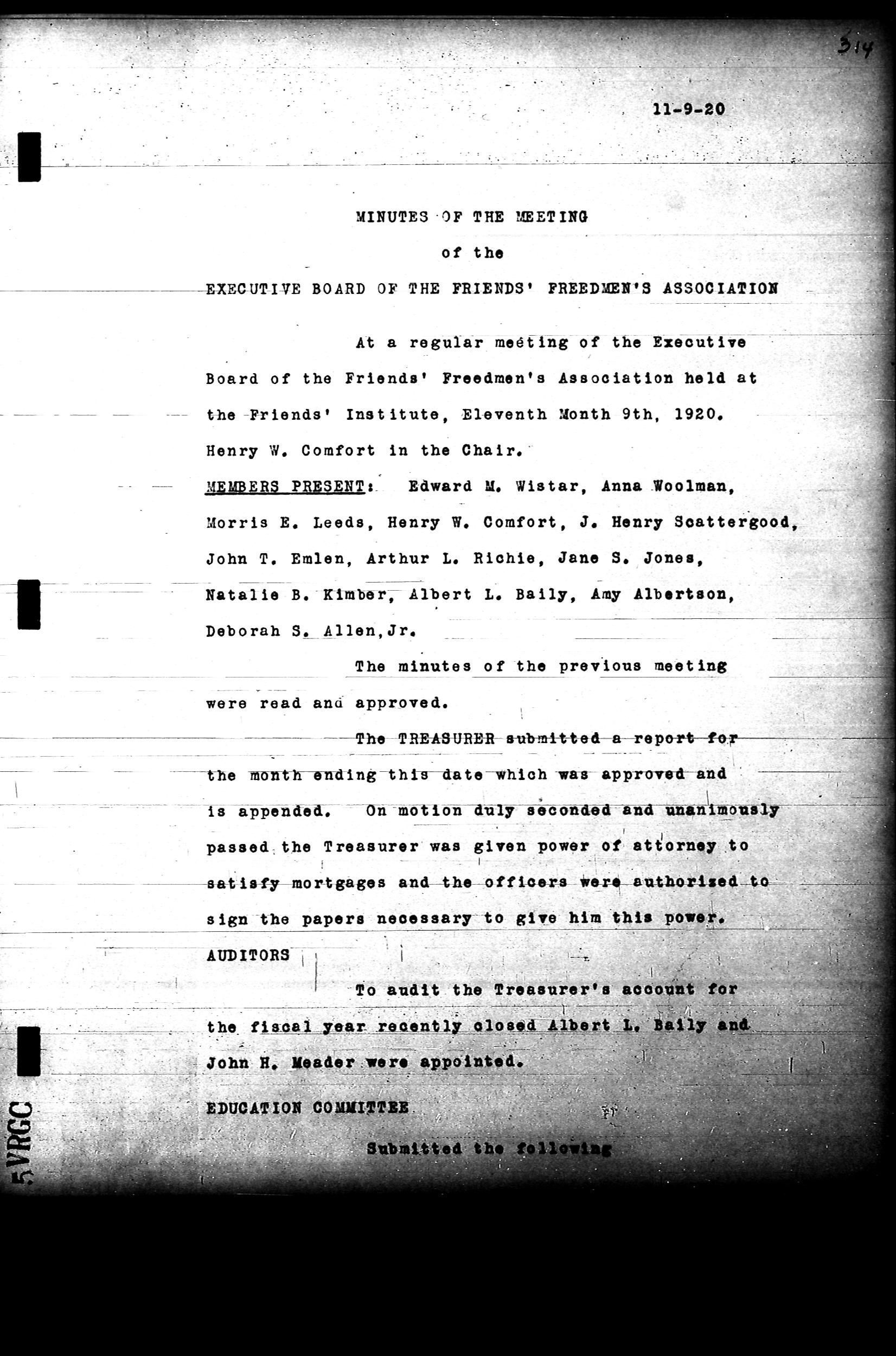 Friends Freedman's Association Reel Three: Executive Committee Minutes 1910-1920 (part 2)Scope and Content