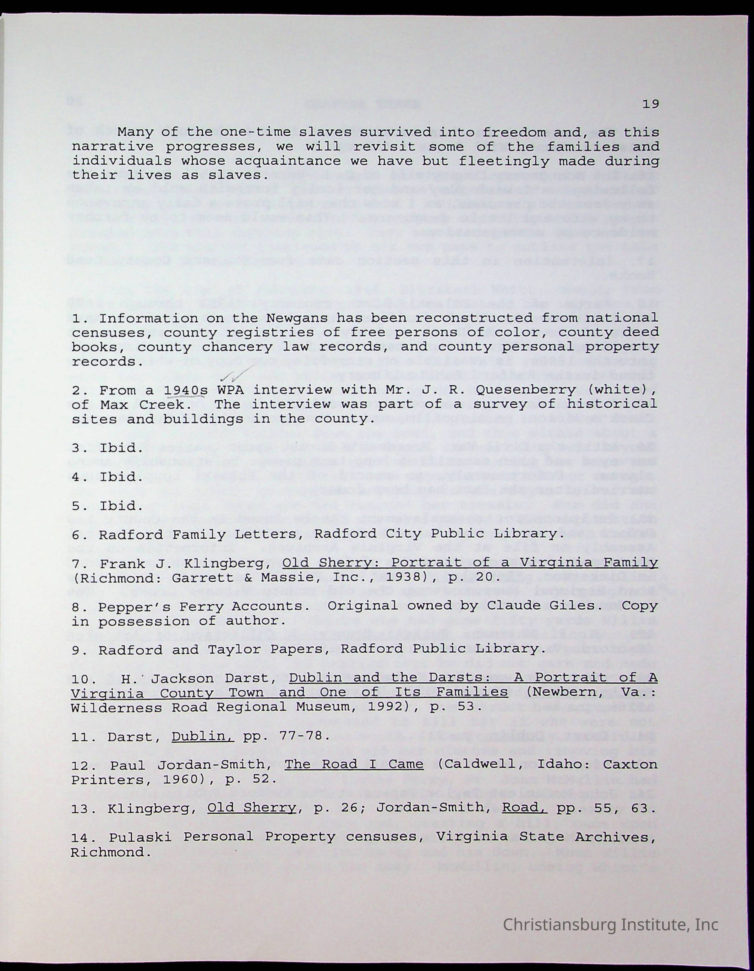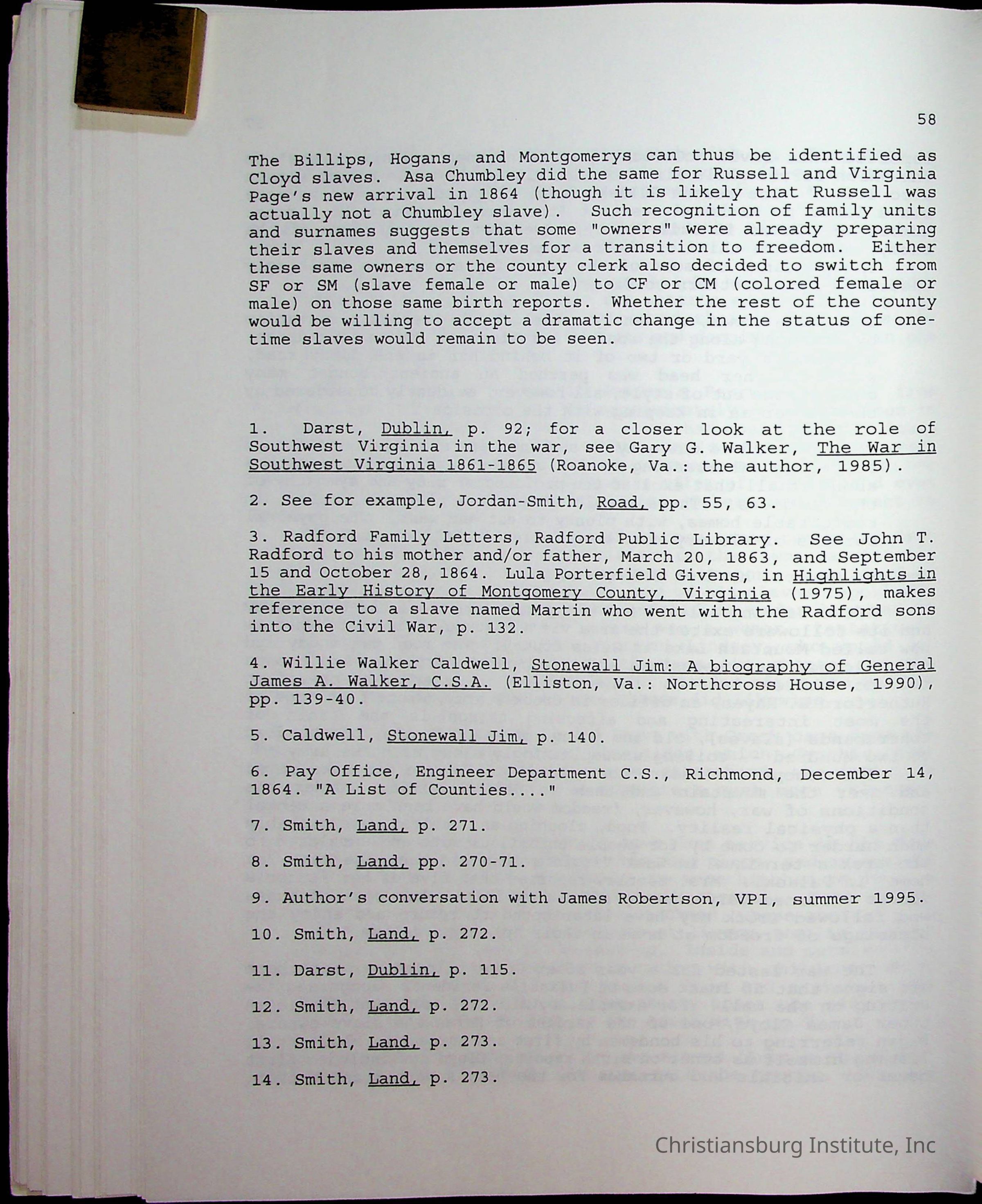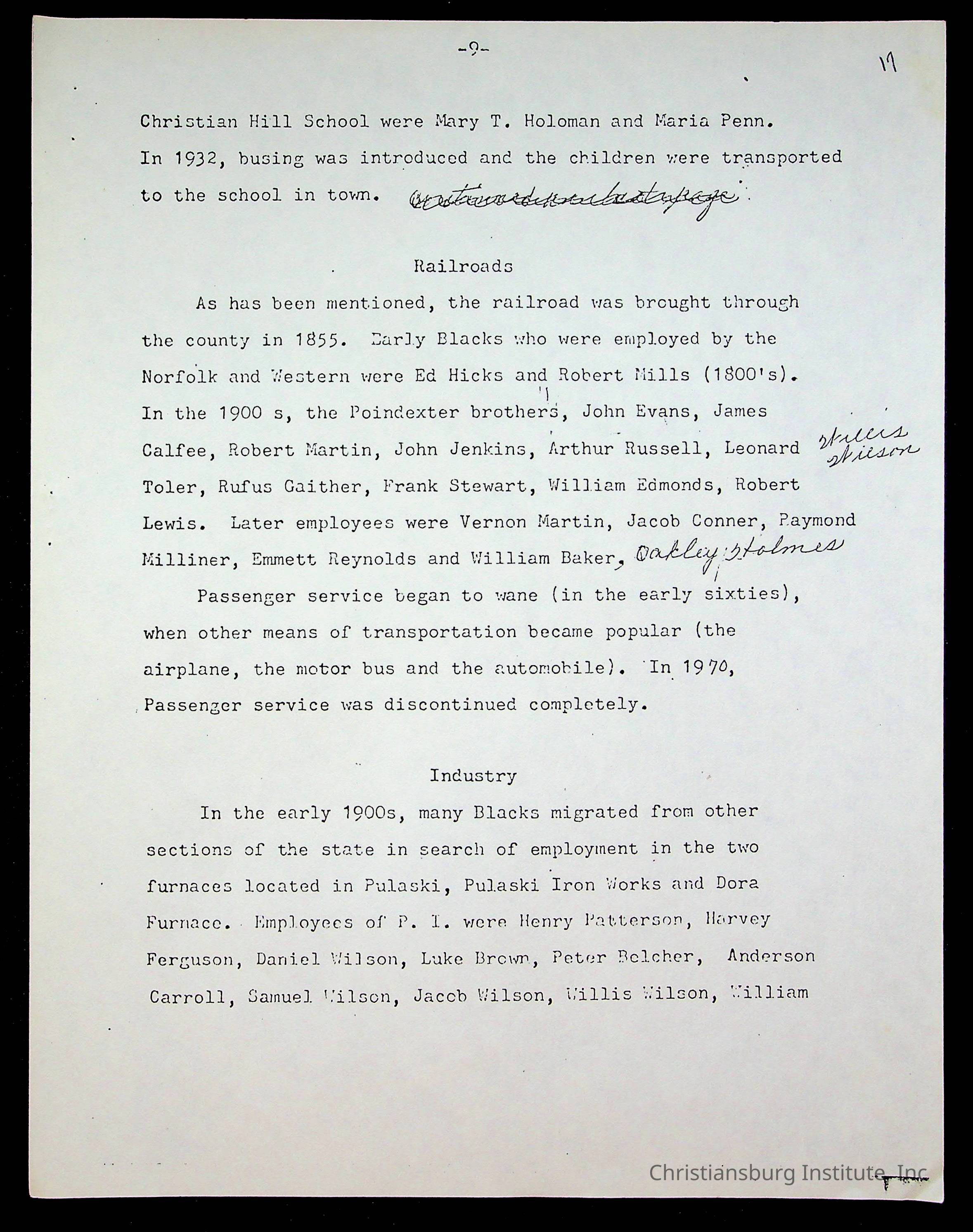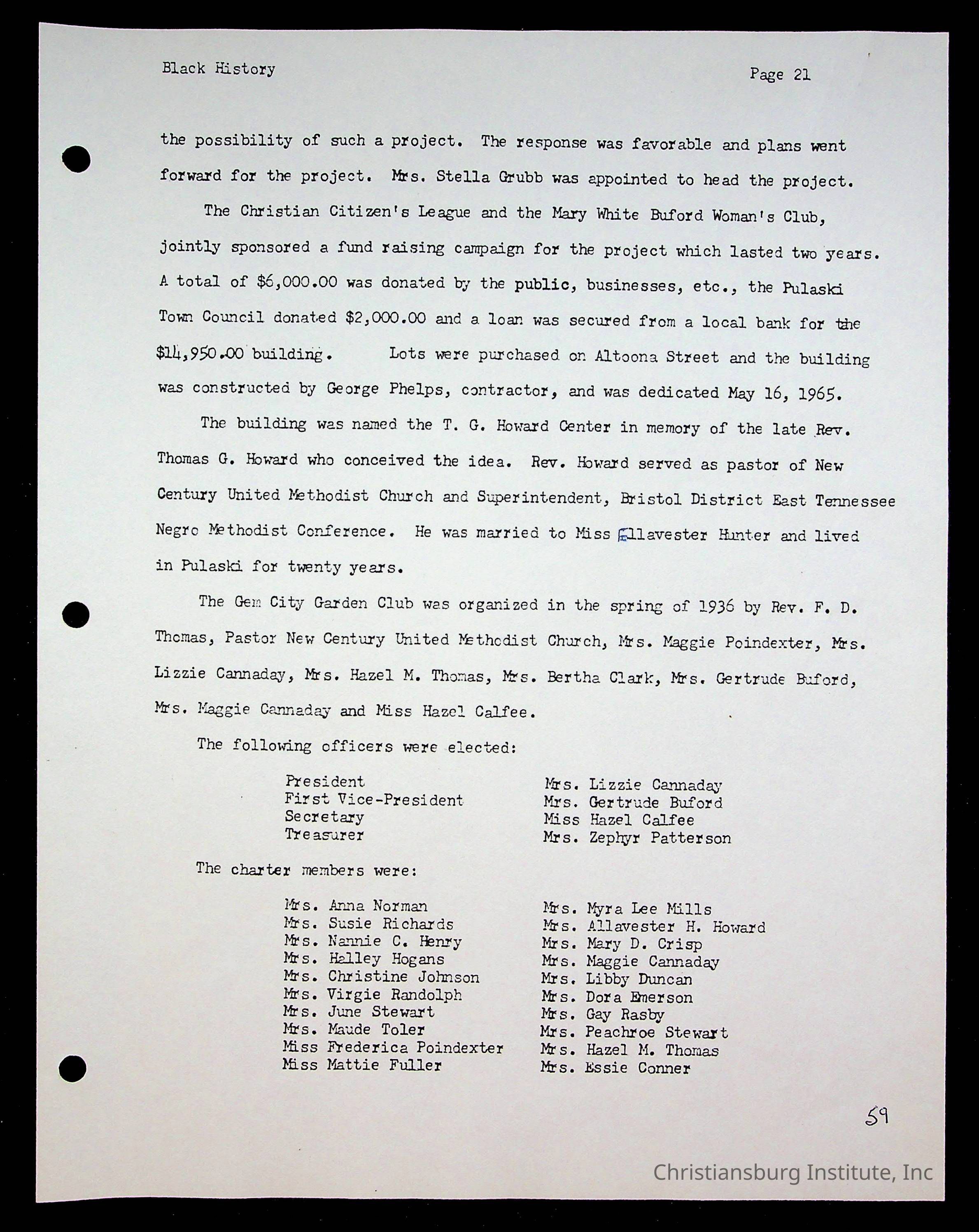 An archive of Black history materials from Pulaski County, Virginia assembled in 1995 by Amanda DeHart. Materials dated range from 1919 to 1995.