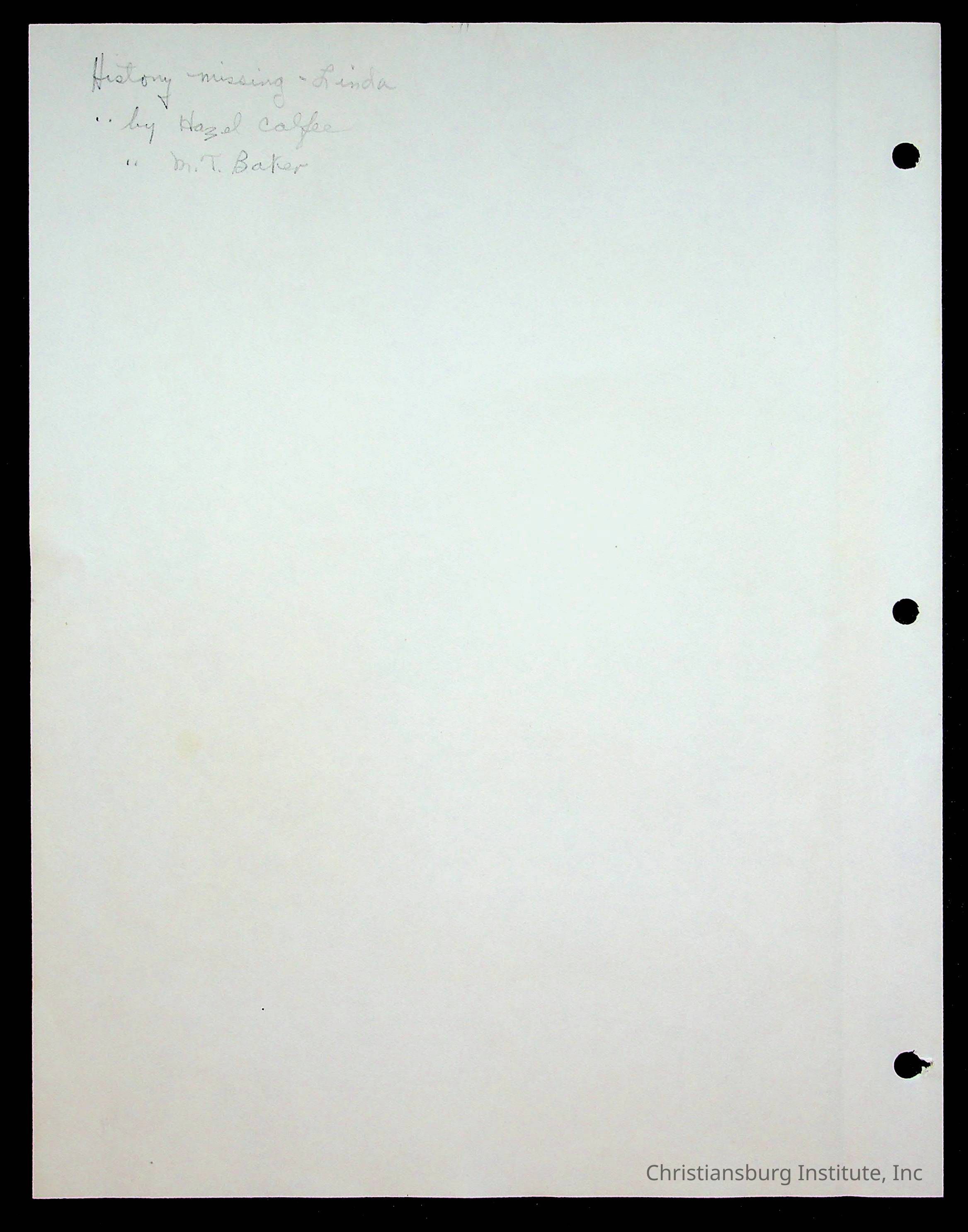 Copyright has been assigned to Christiansburg Institute Museum & Archives by Amanda DeHart. For permission to publish materials created by the donor, contact CIMA@christiansburginstitute.com. Materials not created by Amanda DeHart may still be under copyright.