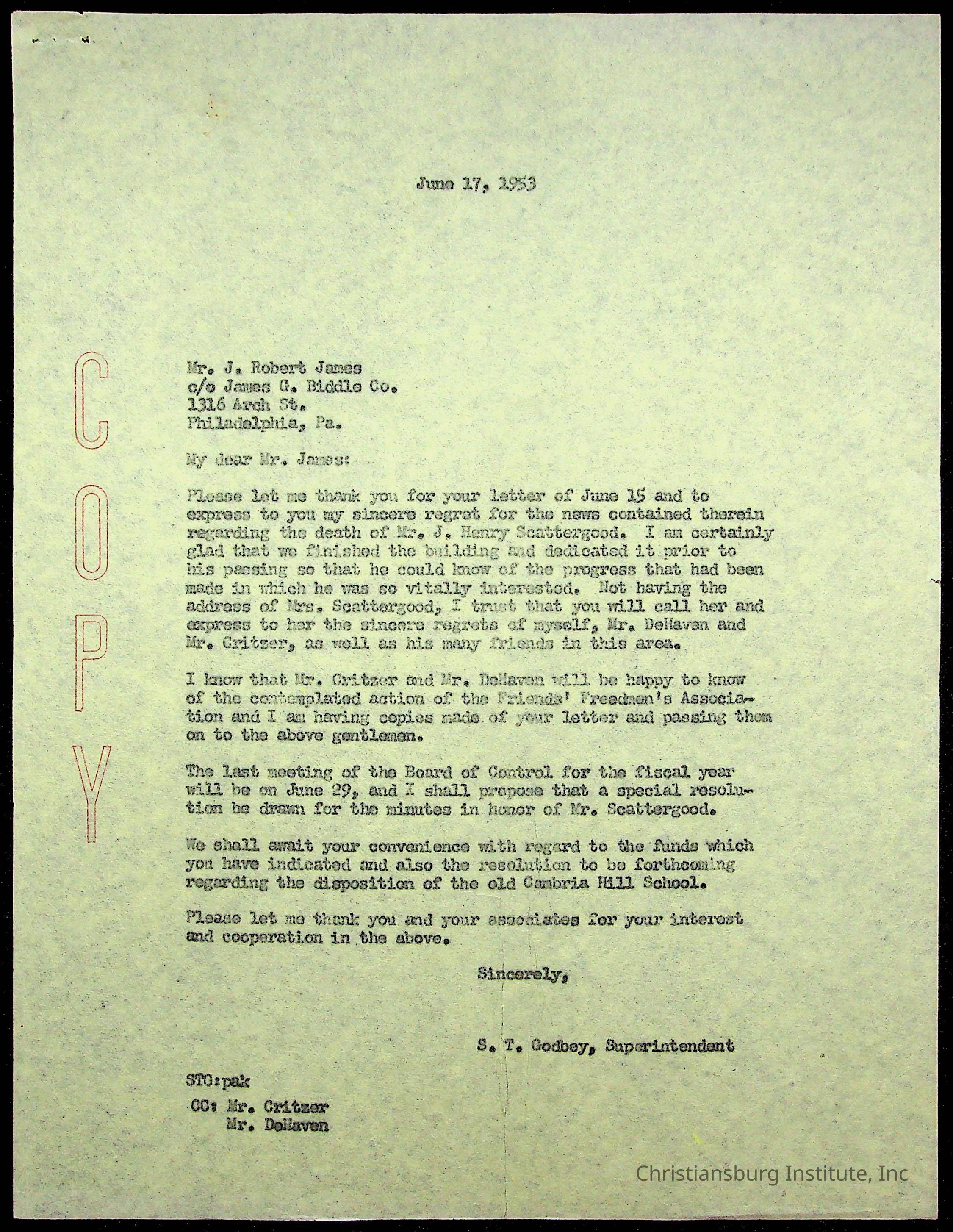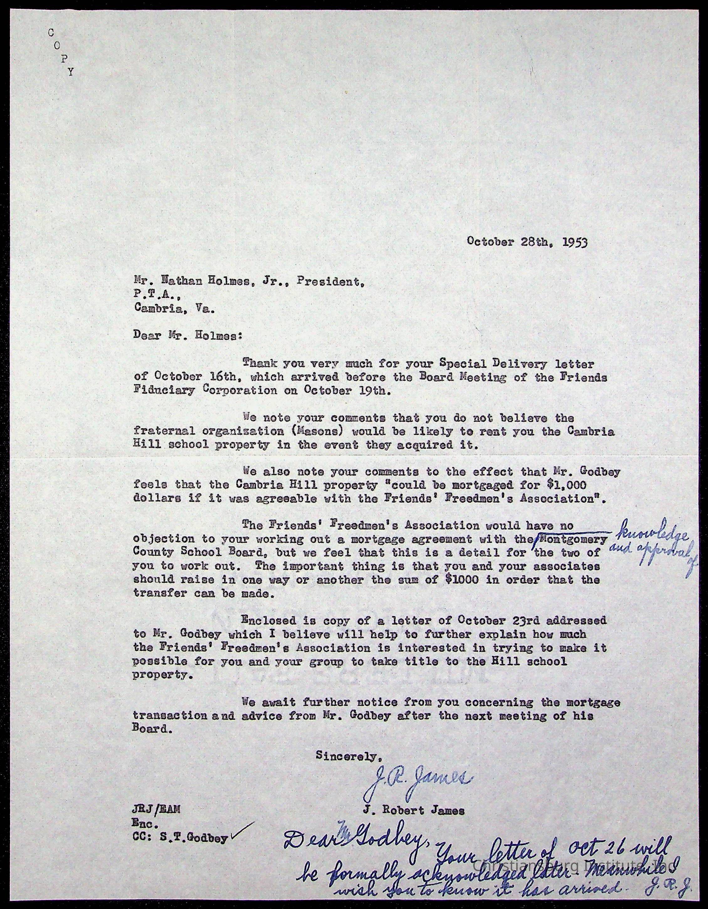 An archive of correspondence relating to Scattergood Hall at Christiansburg Institute, circa 1950s.