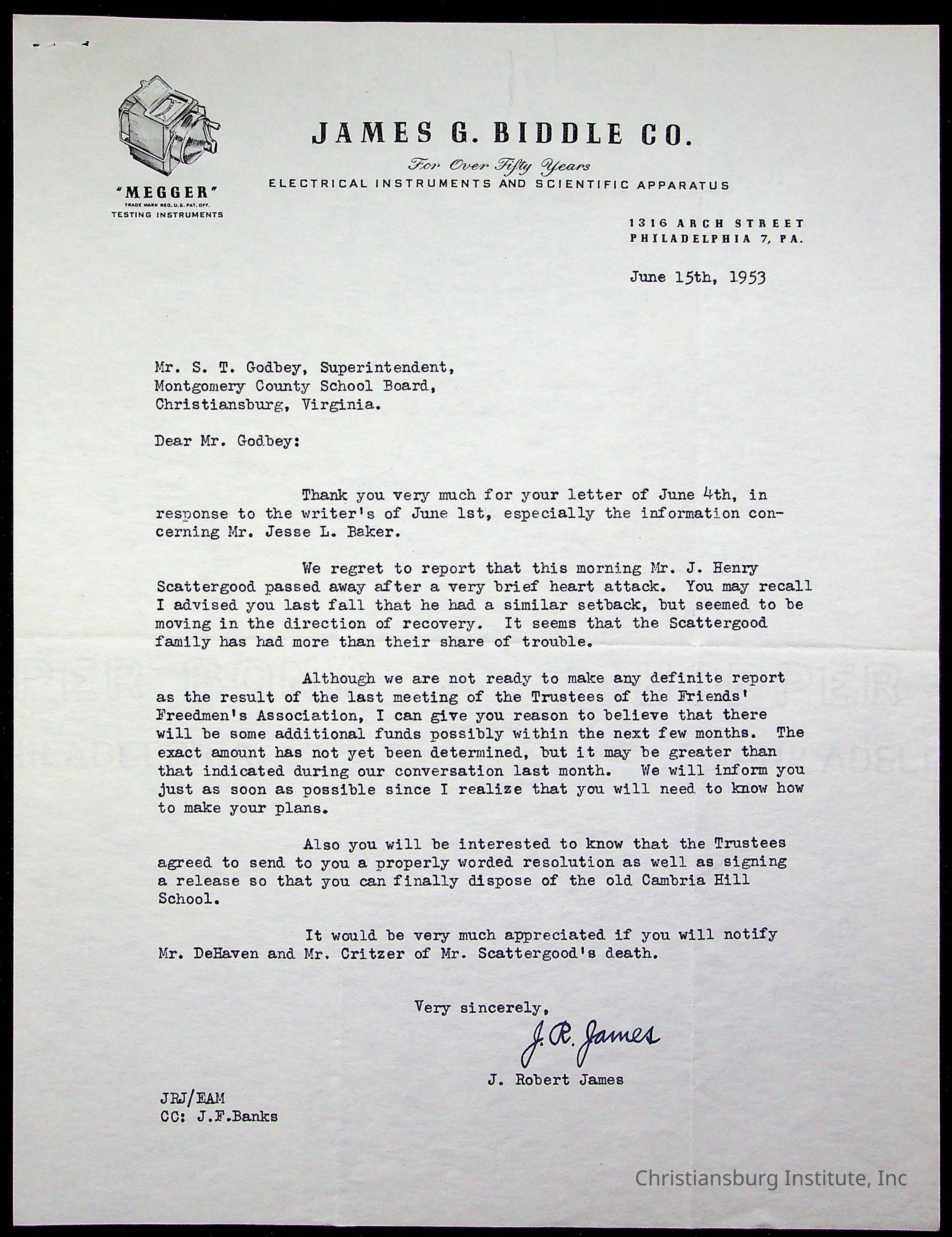 Christiansburg Institute, Scattergood, J. Henry, Godbey, S. T., James, J. Robert