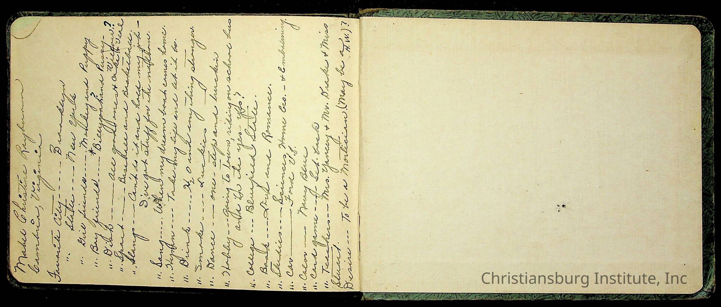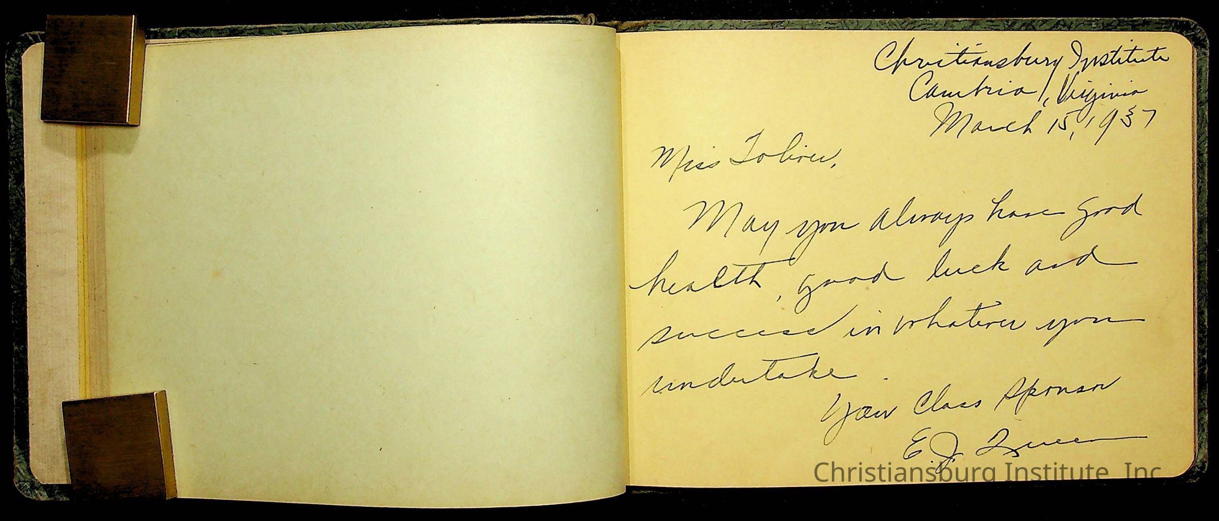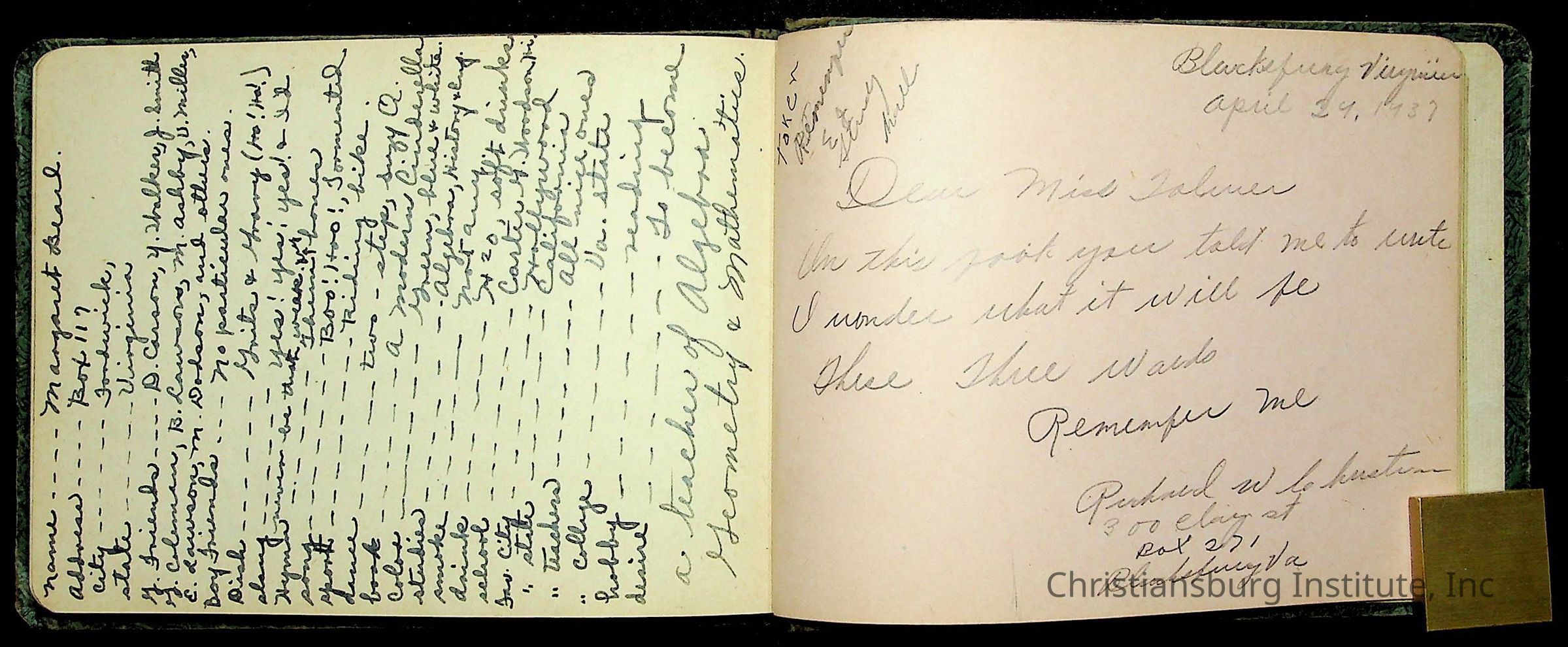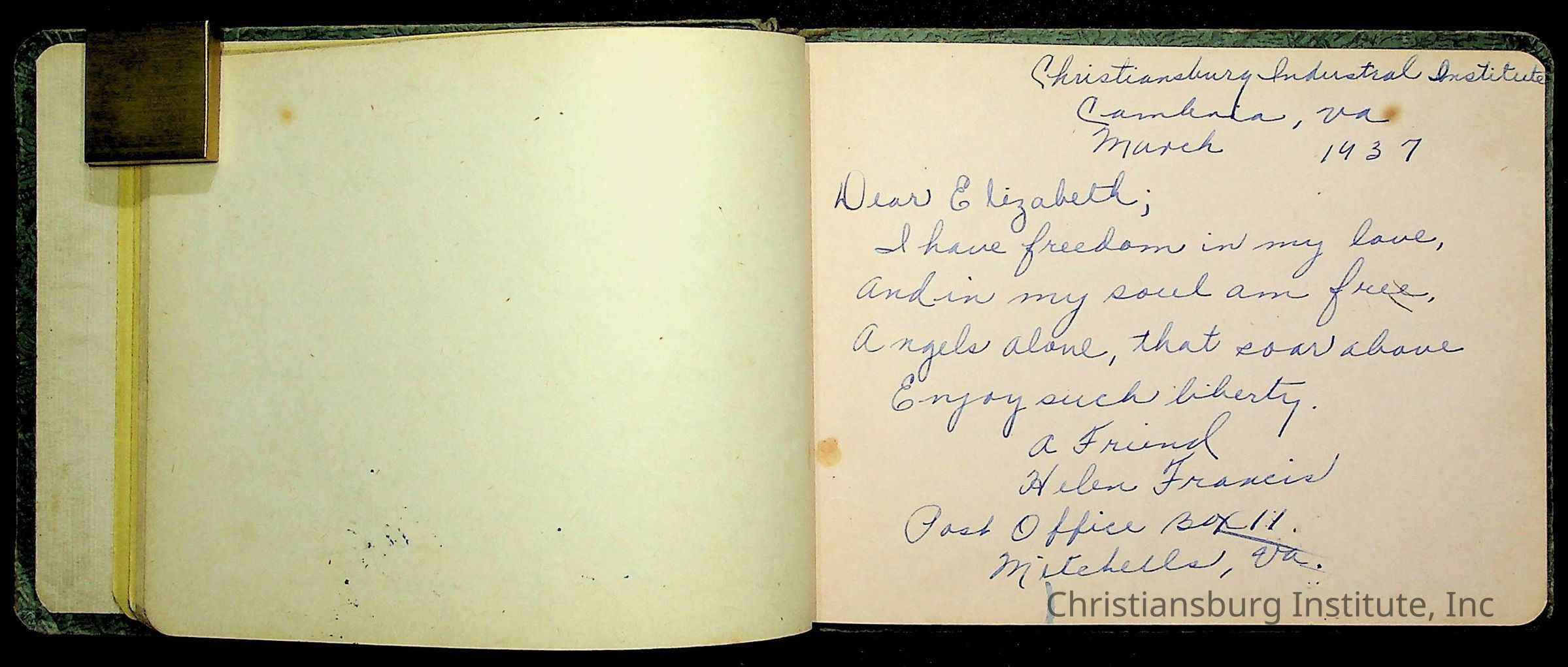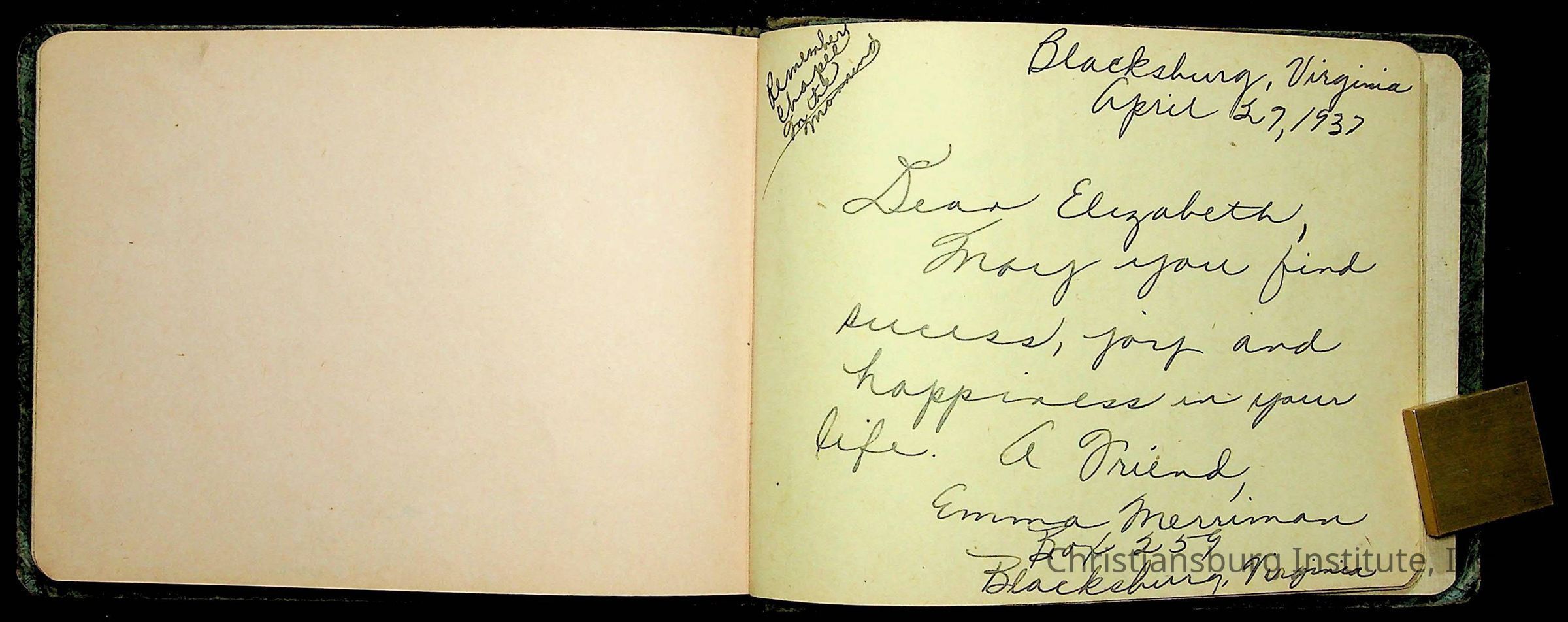 A Christiansburg Industrial Institute autograph book for Elizabeth Toliver, class of 1937.