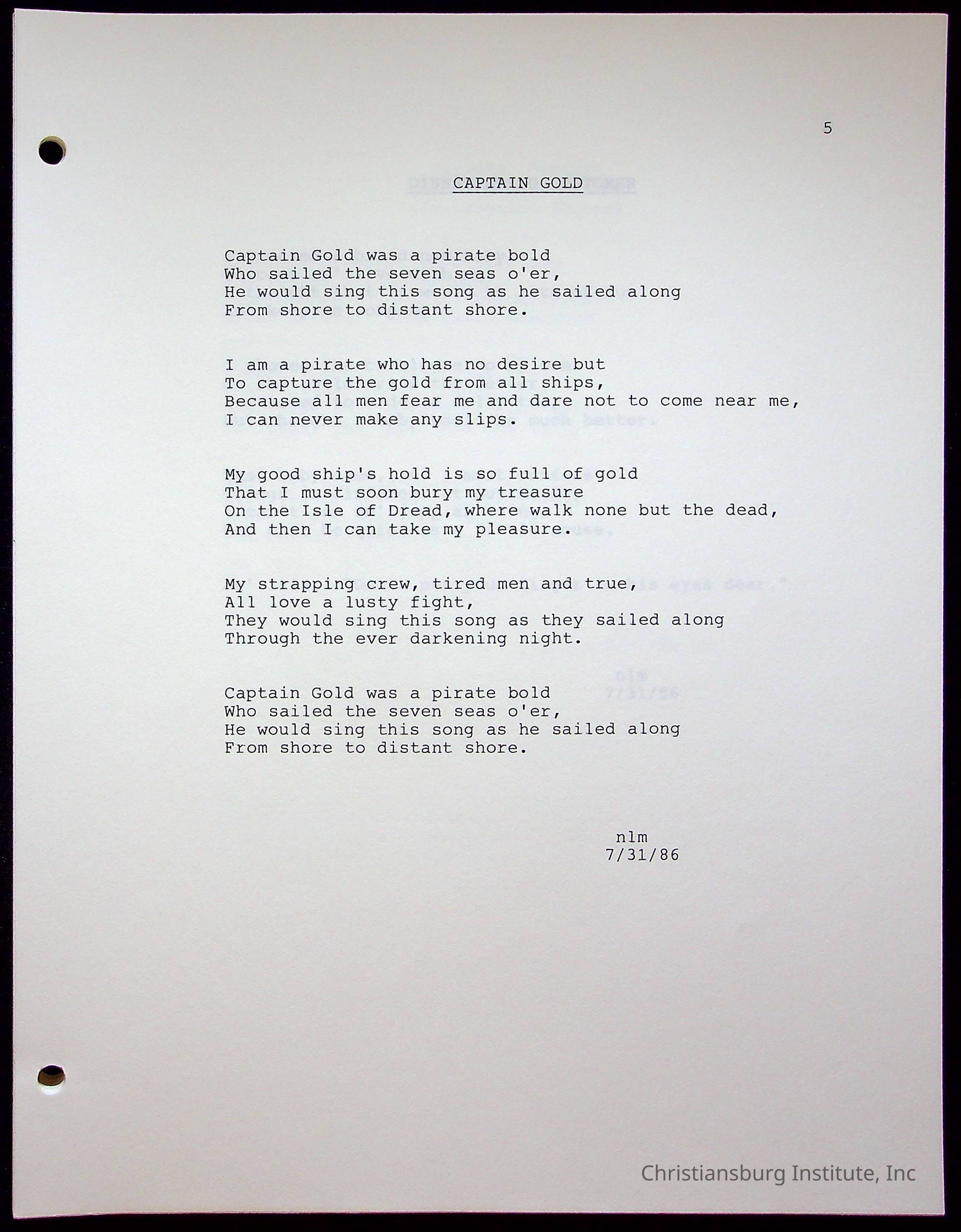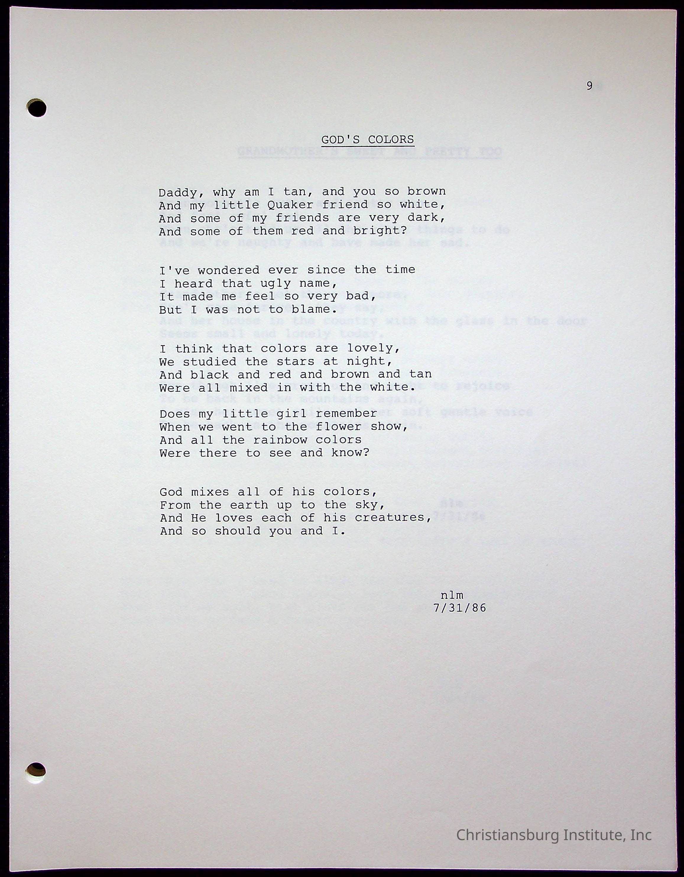 A copy of the "Poems for Children" written by Nerissa Long Milton complied by CIAA historian, Amanda DeHart dated 1986.Creator