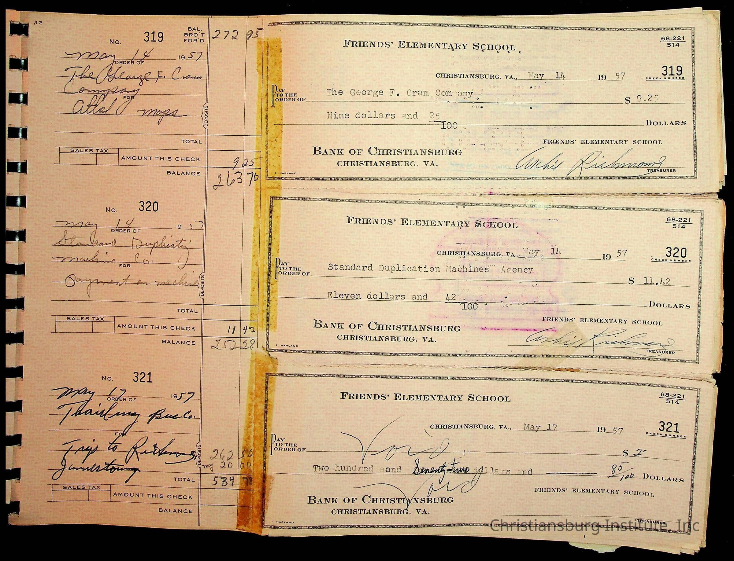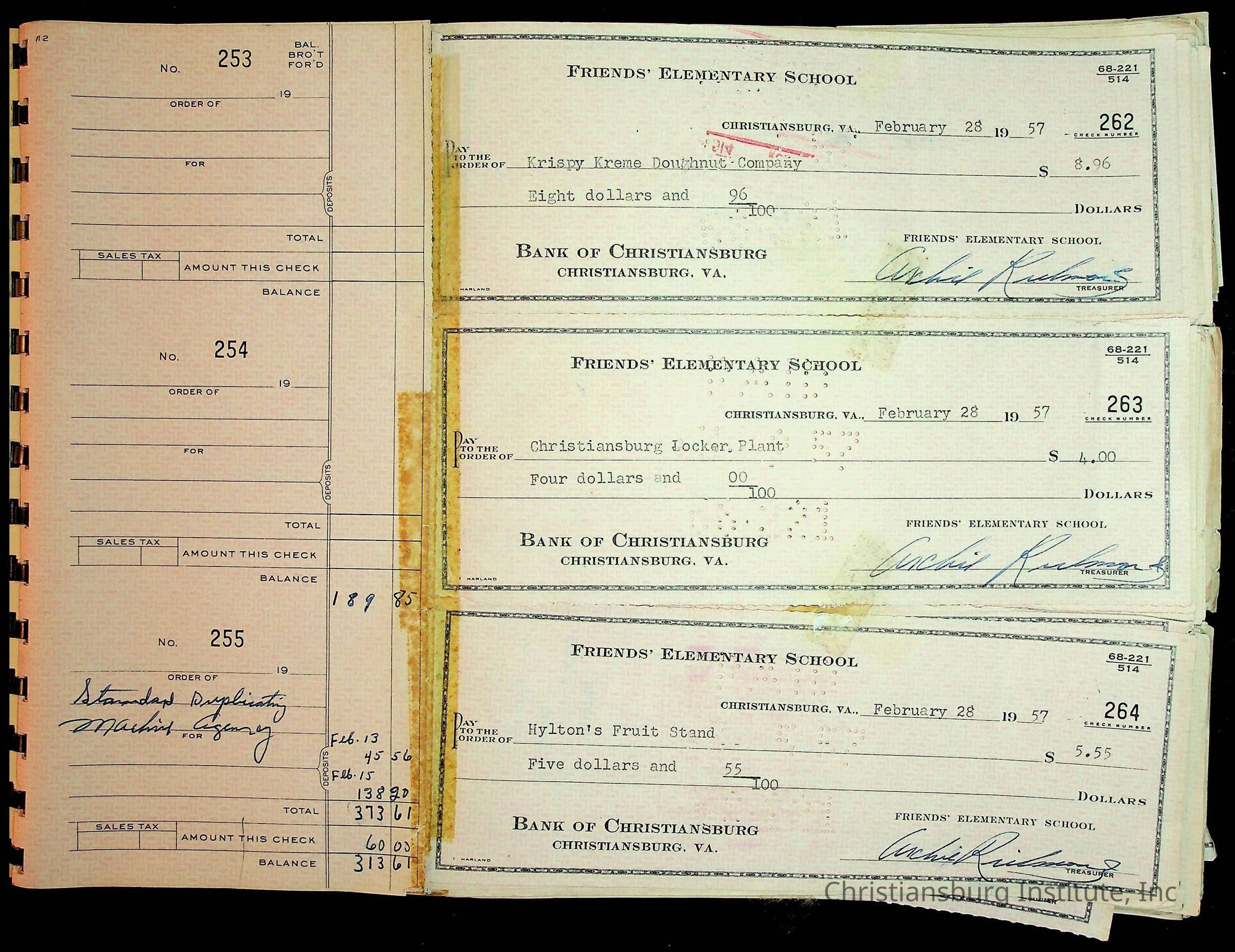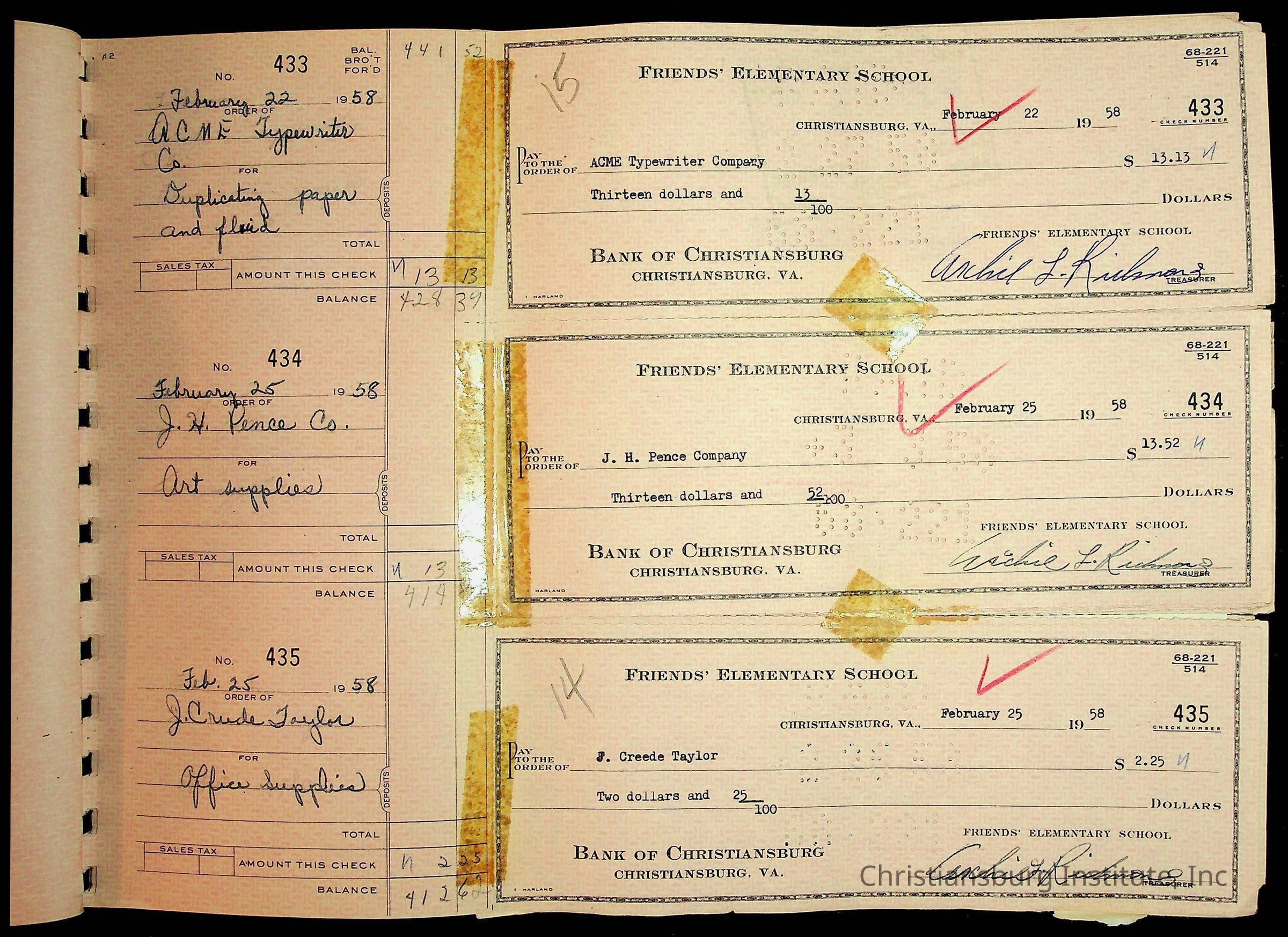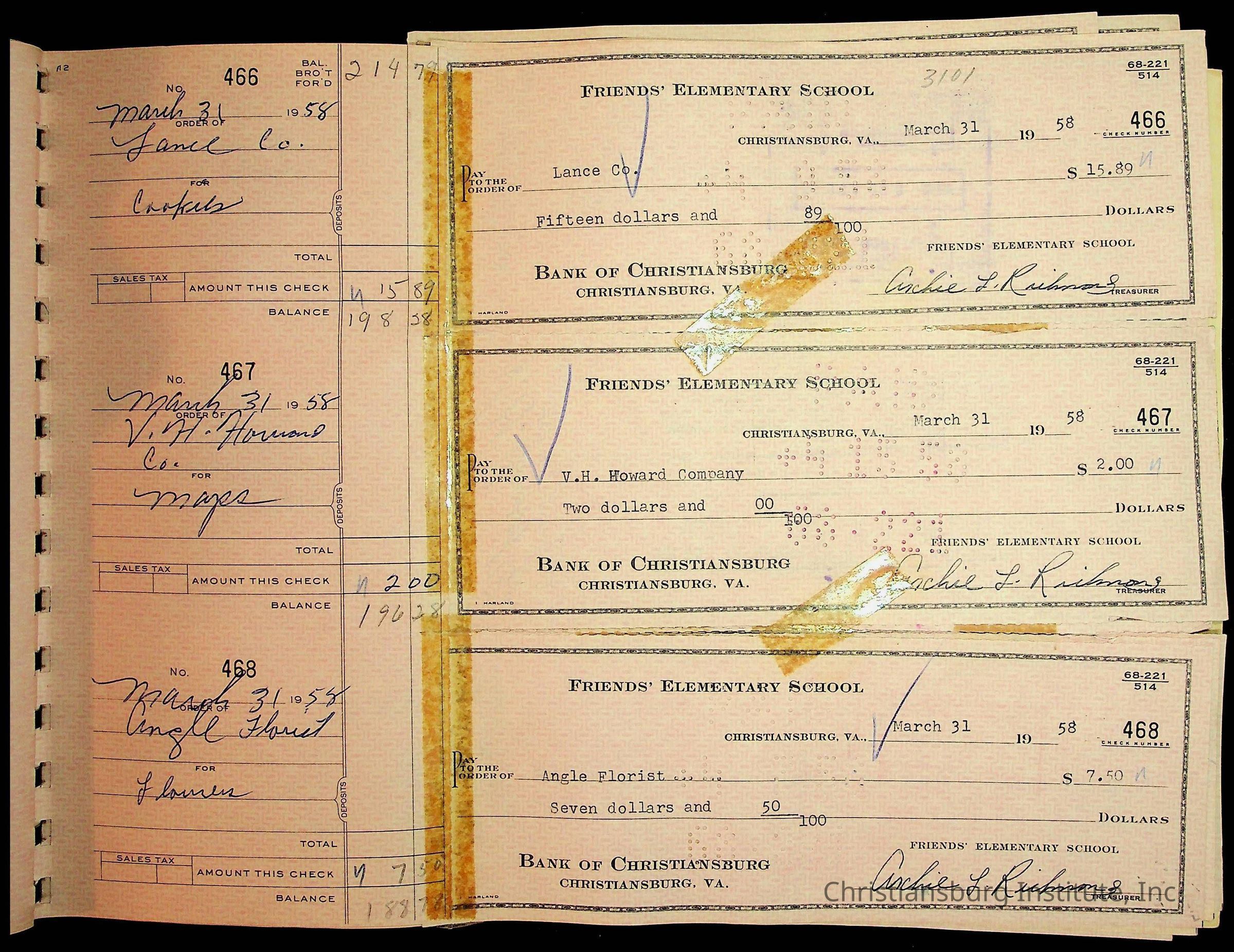 Friends Elementary School Checkbook, 2/28/1957-5/31/1958