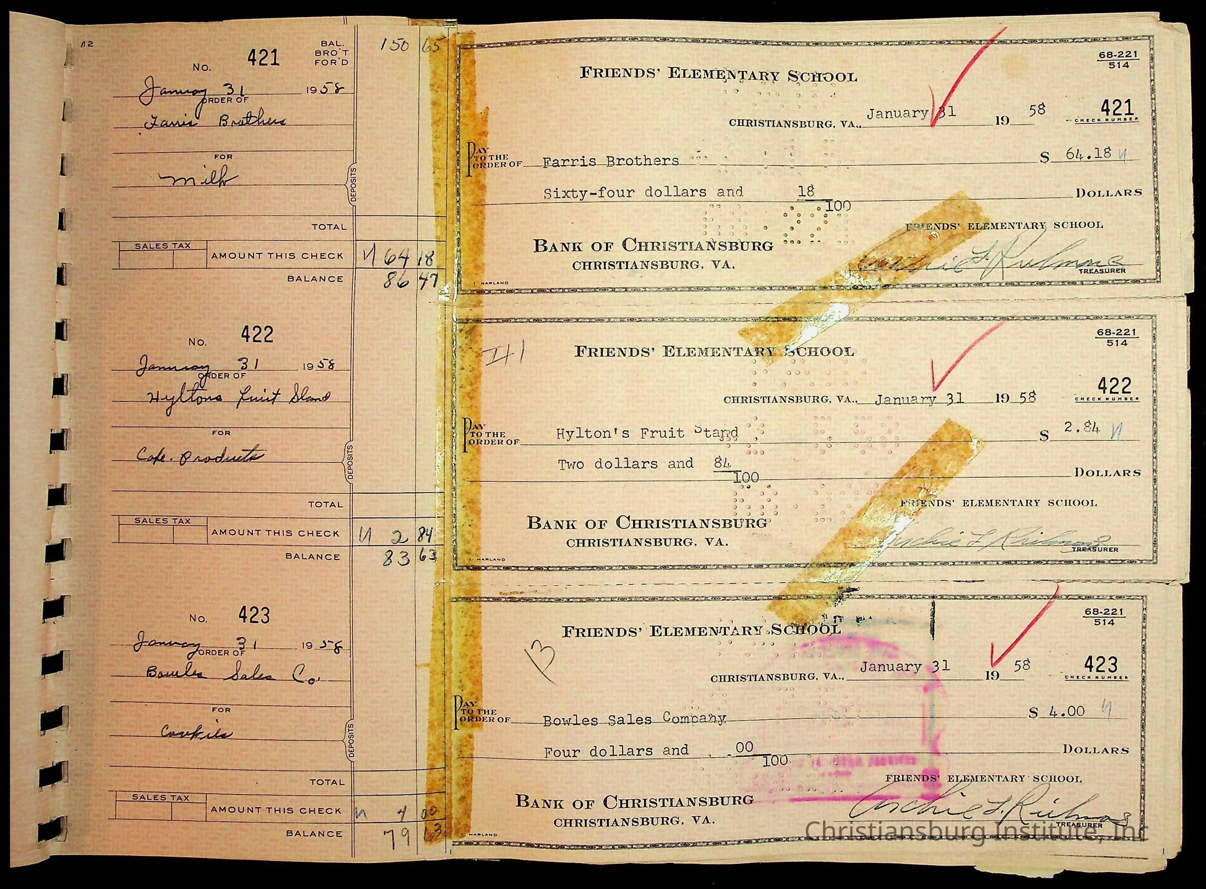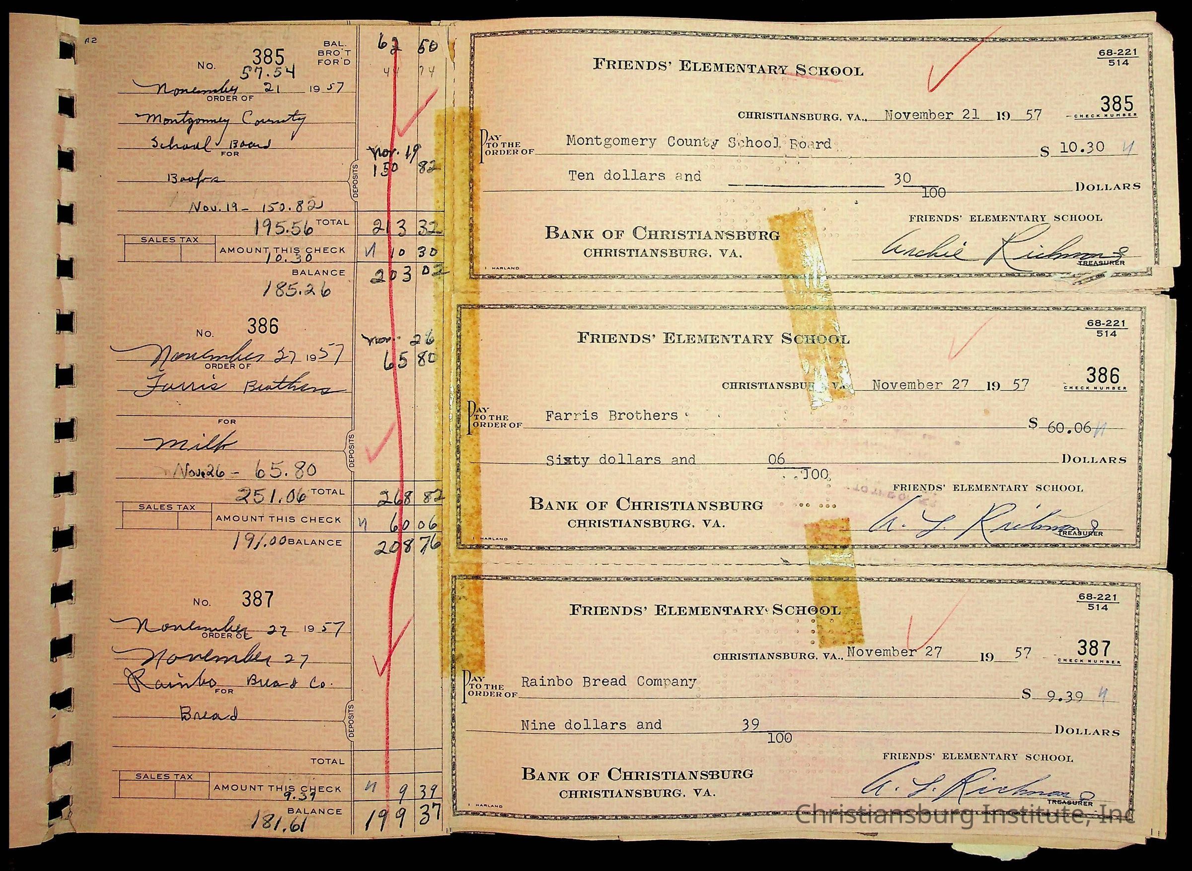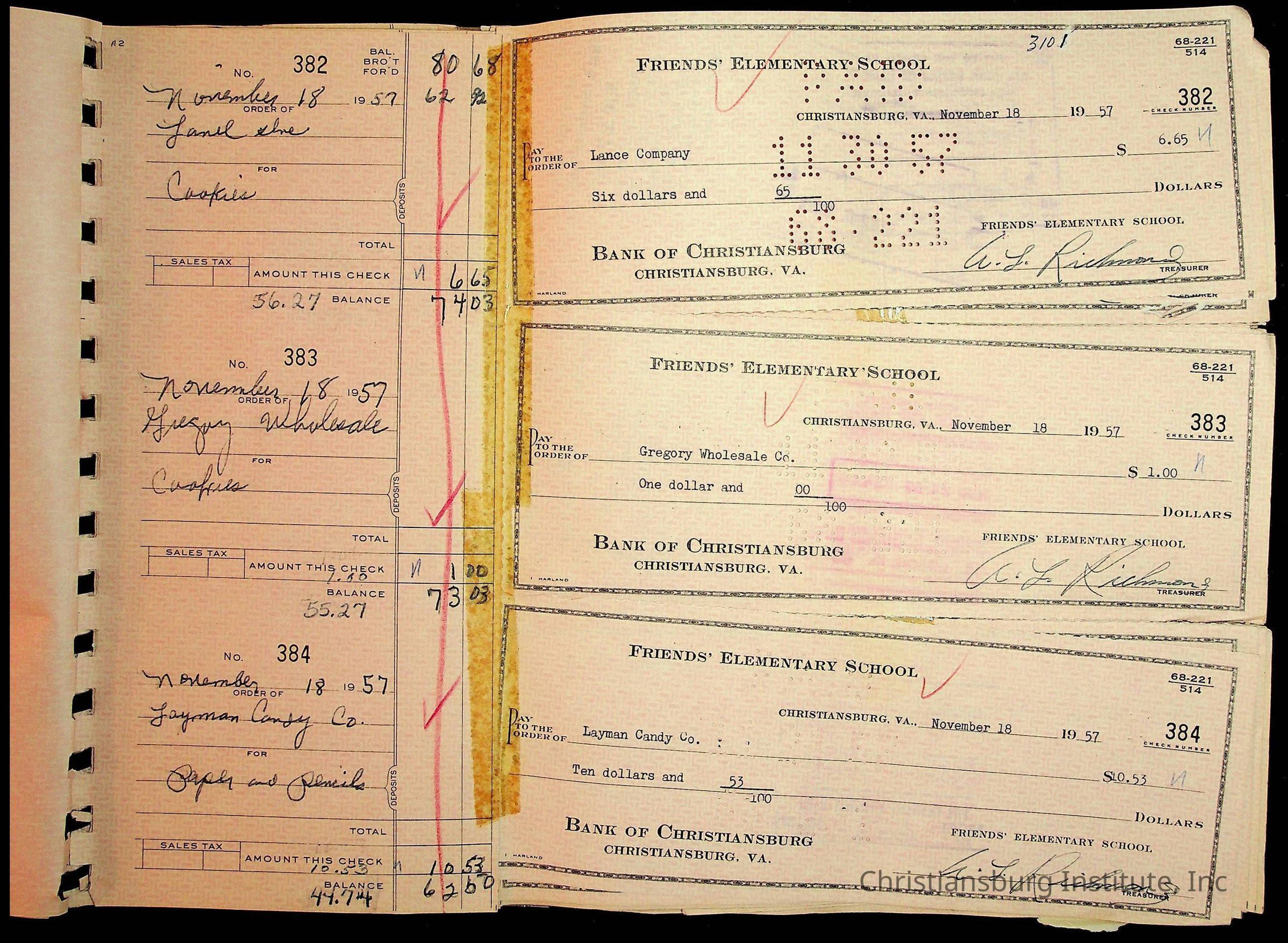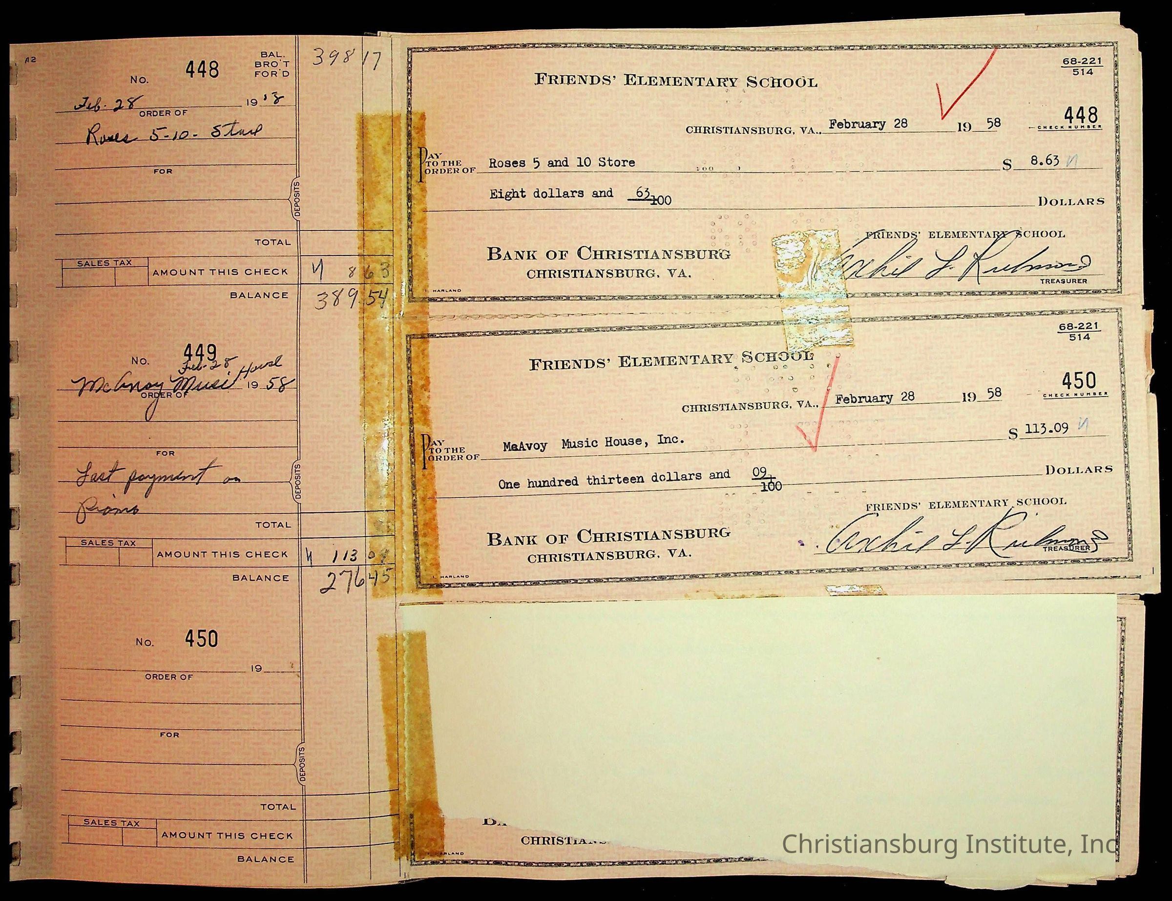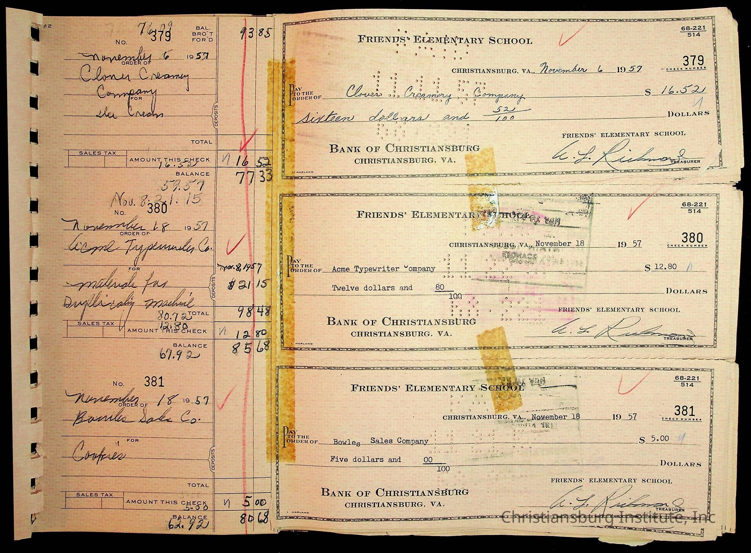 Friends Elementary School Checkbook, 2/28/1957-5/31/1958