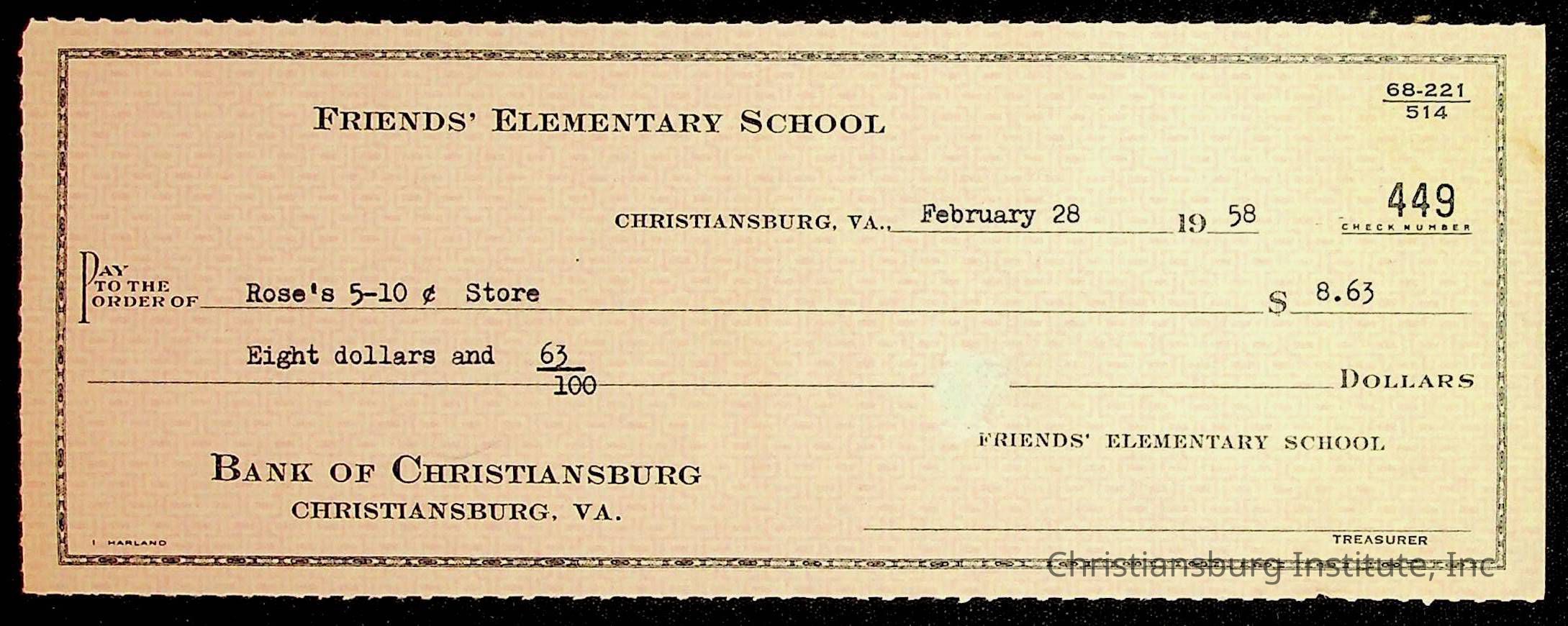 Friends Elementary School, Bank of Christiansburg, John H. Harland Company