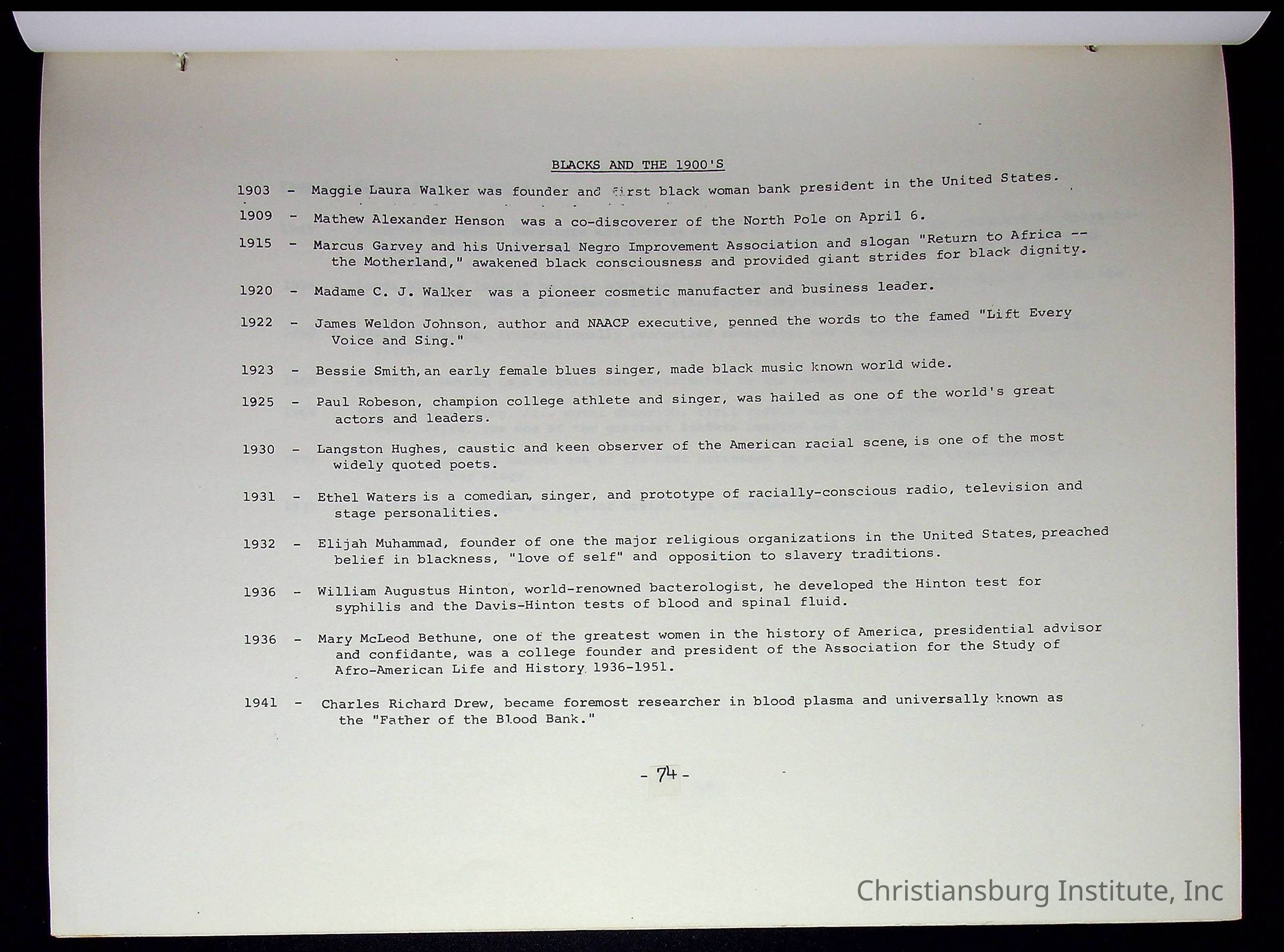 A compilation of materials that are relevant to Black history during the 20th century complied by Nerissa Long Milton, undated.