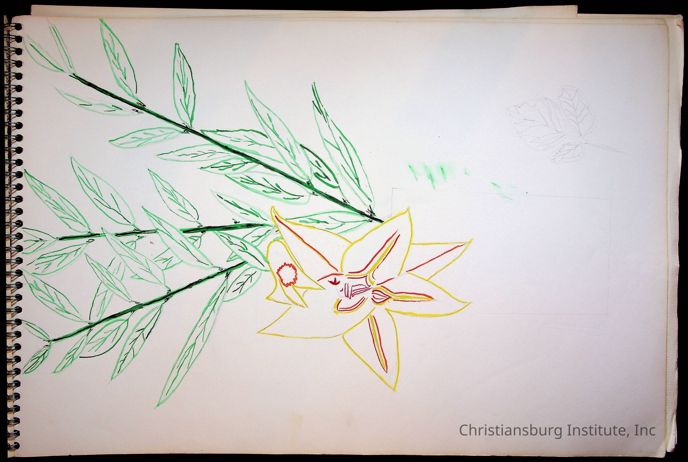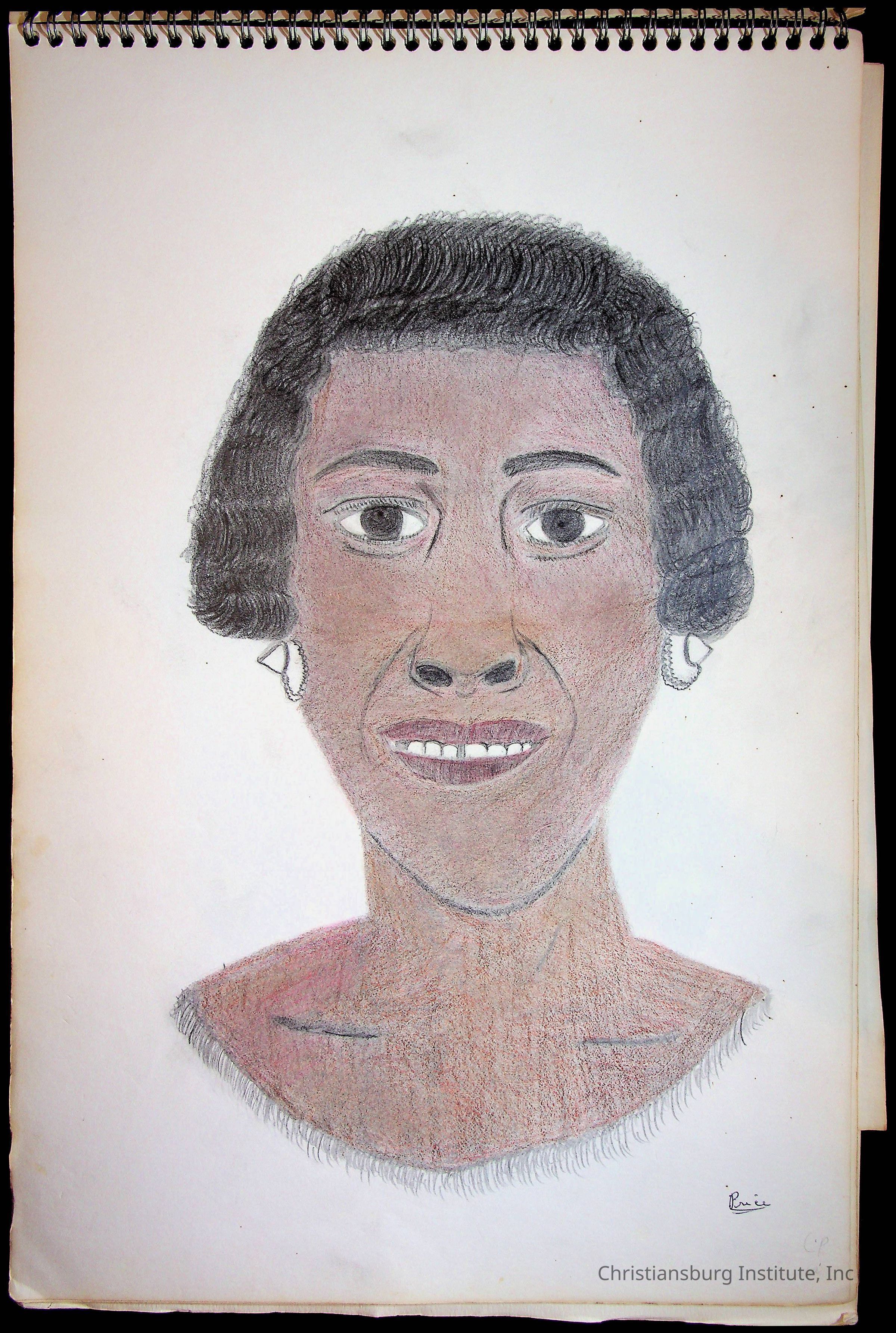 A sketchbook filled with sketches of various Christiansburg Industrial Institute graduates drawn by Amanda DeHart, undated.