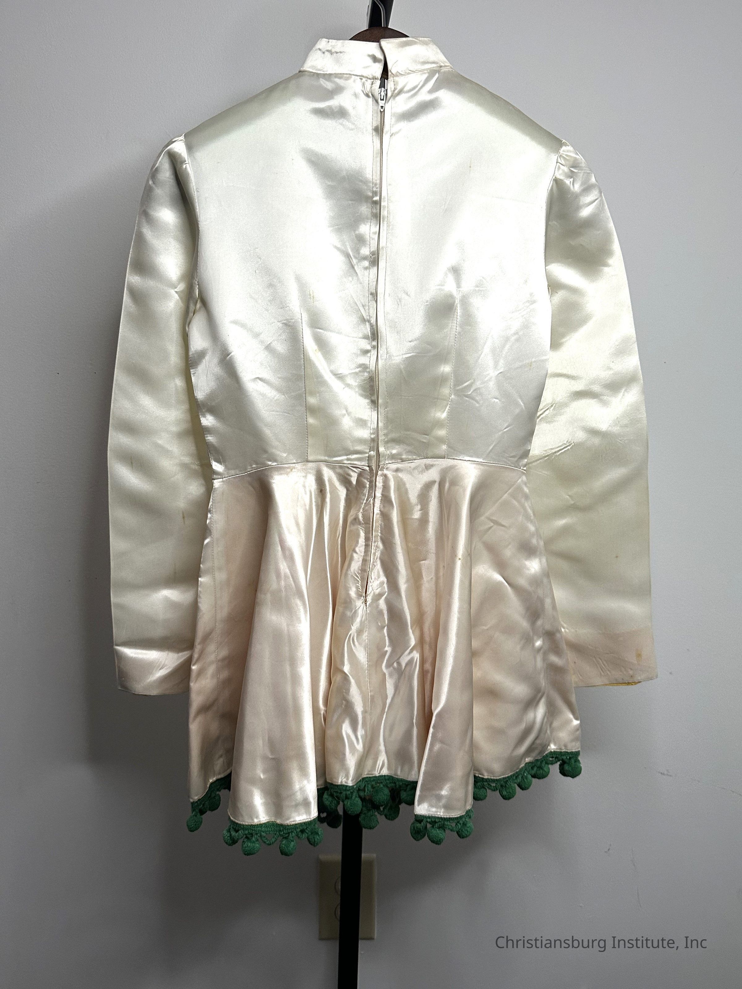 A white silk Christiansburg Institute cheerleader uniform with green trim on hem in fair condition, undated.Collection
