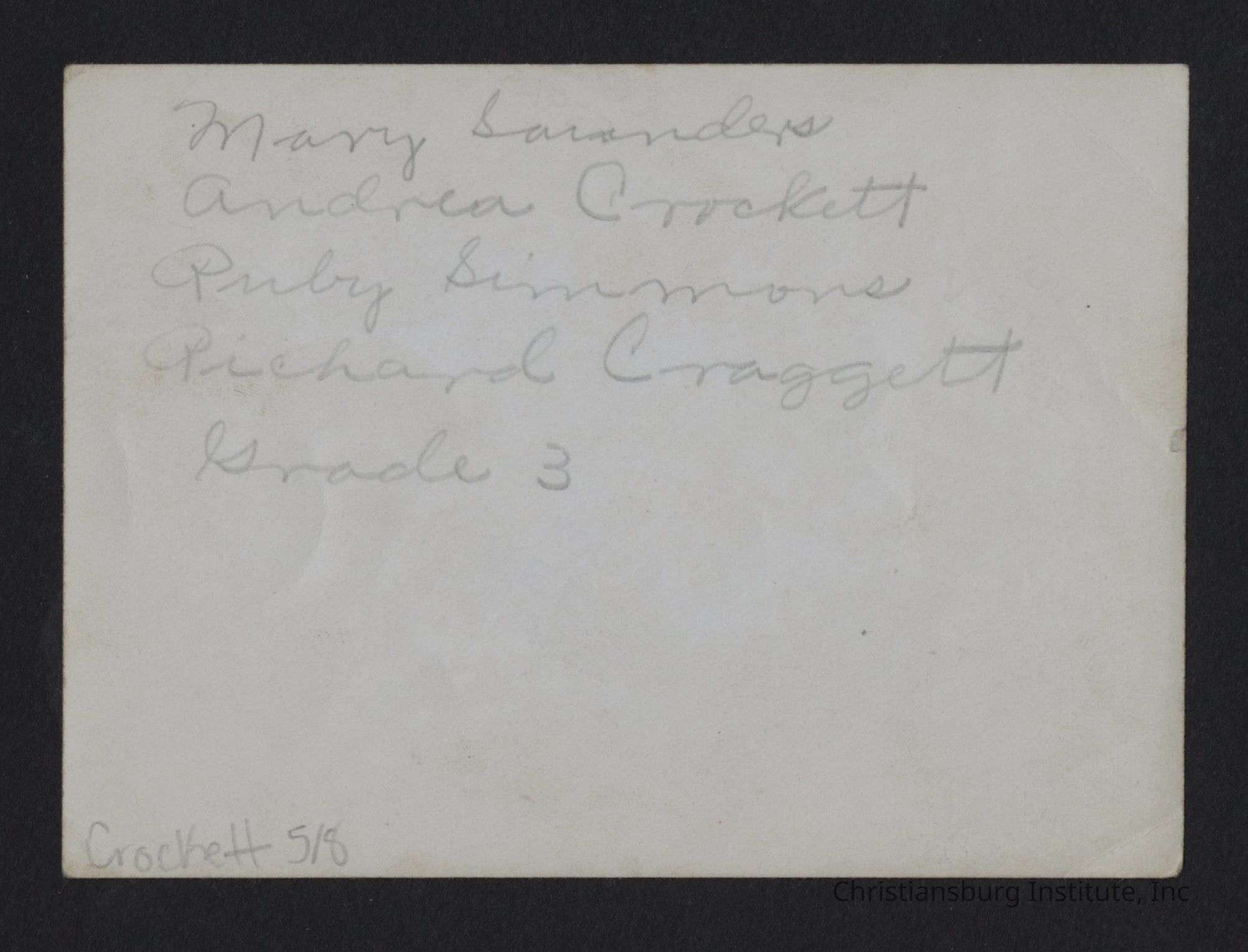 Several images captured by CI alumni, Goldie Scott Crockett, of children at the Elliston Colored School, circa 1950s.
