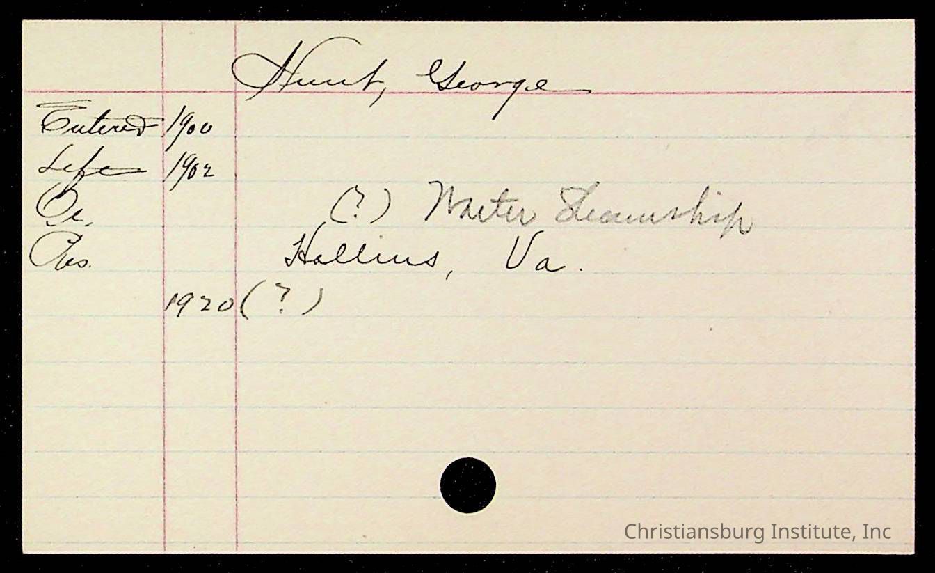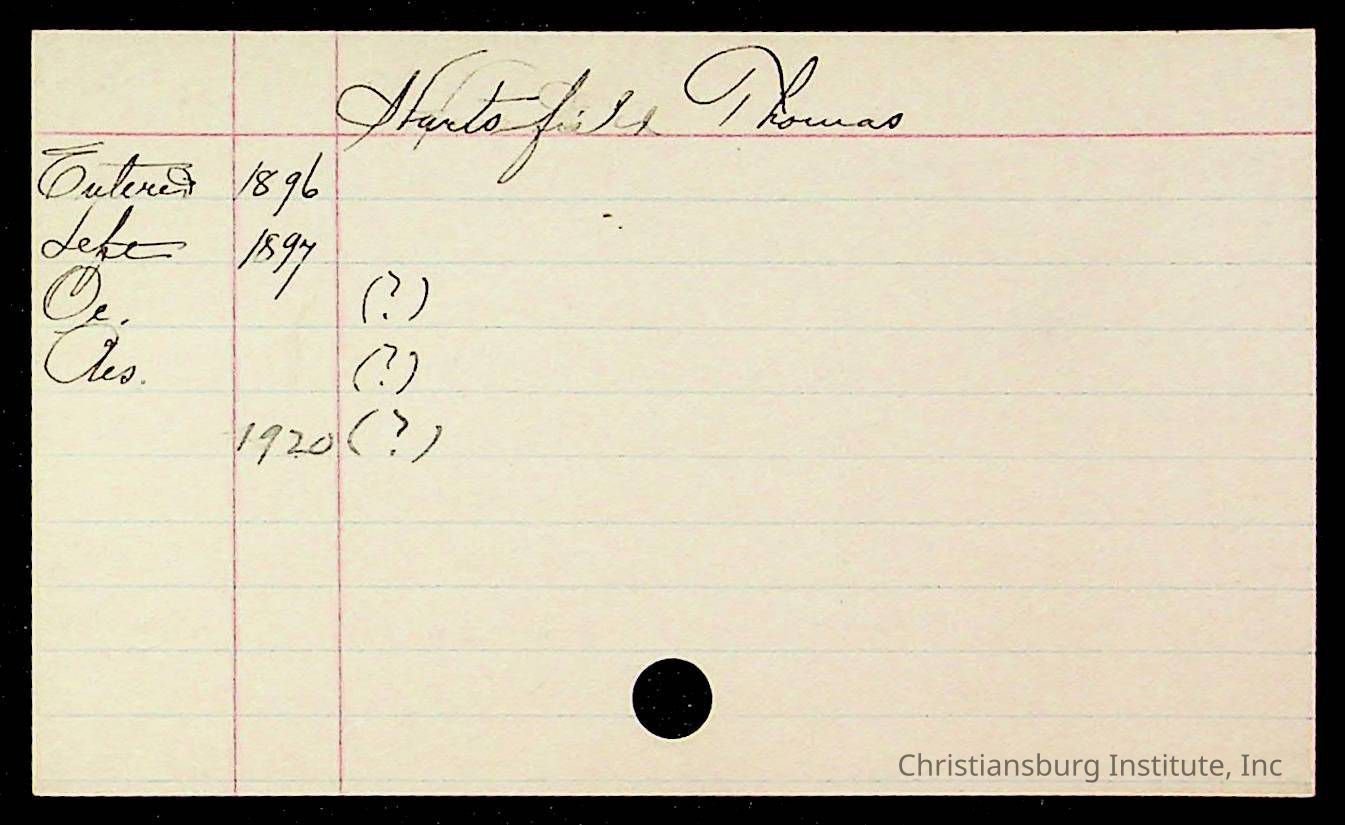 An archive of early Christiansburg Institute student records written on notecards for last names that began with the letter H, 1900s.