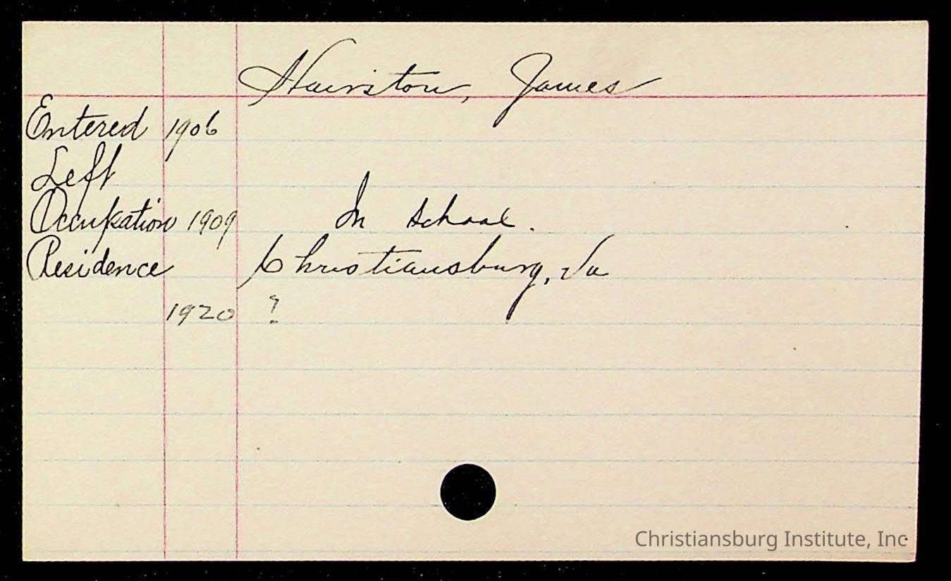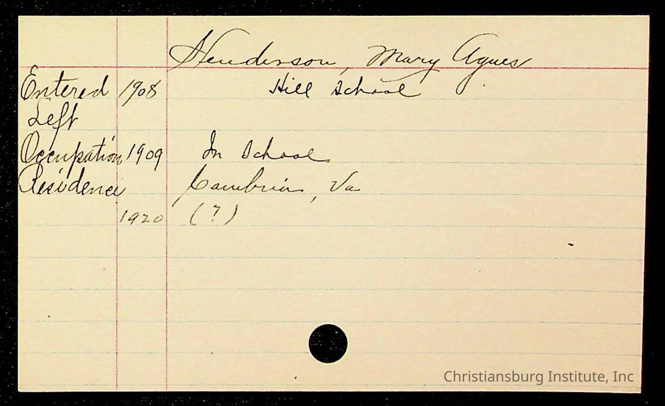Copyright has been assigned to Christiansburg Institute Museum & Archives by Montgomery County Public Schools. For permission to publish materials created by the donor, contact CIMA@christiansburginstitute.com. Materials not created by Christiansburg Industrial Institute may still be under copyright.