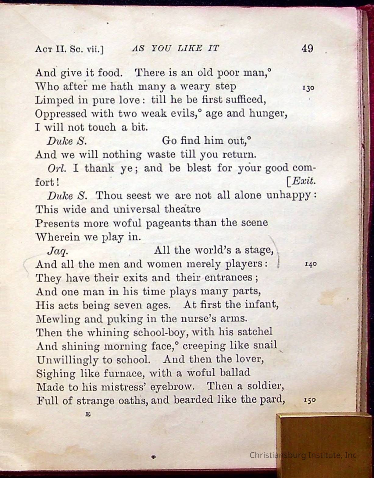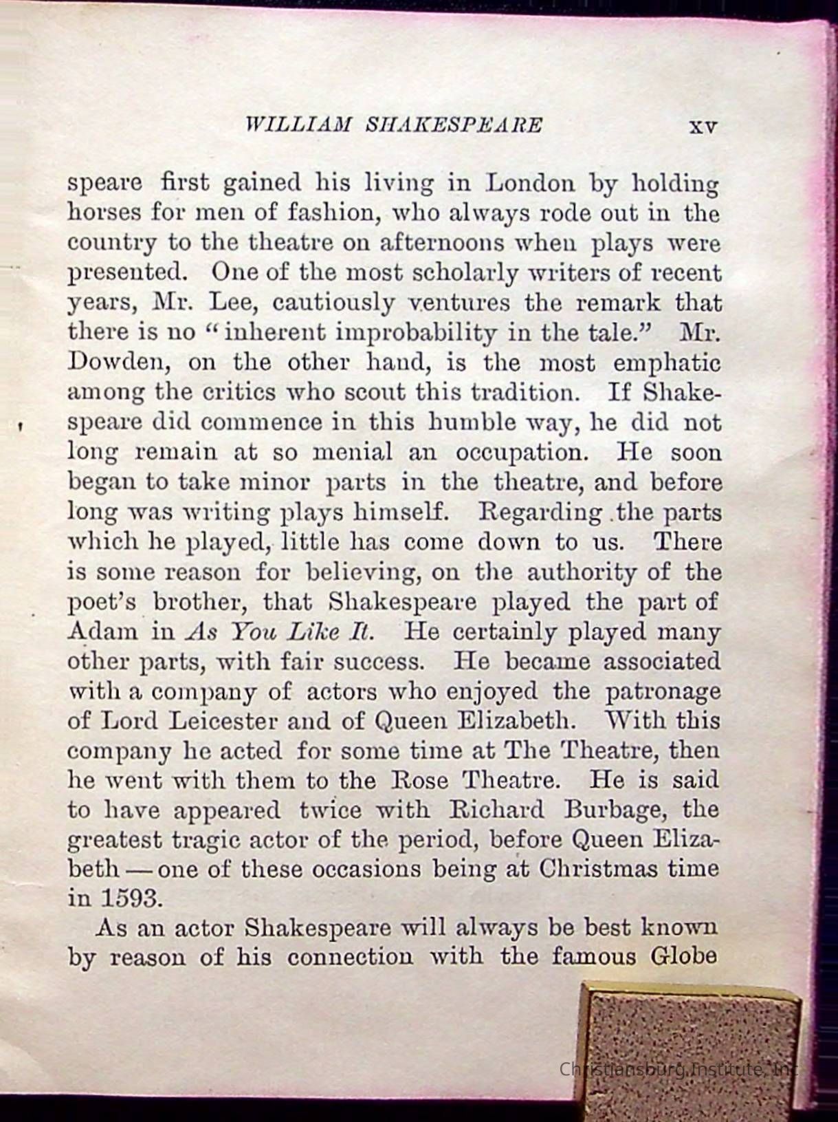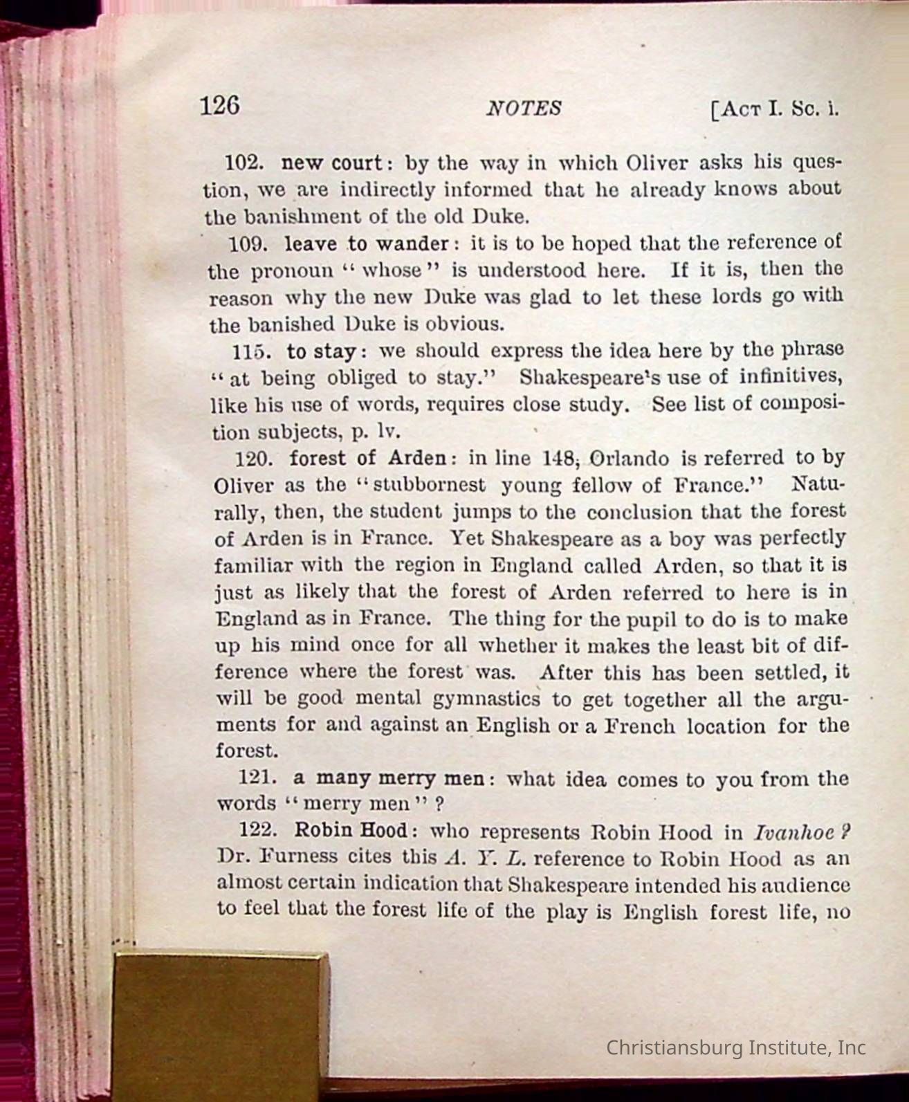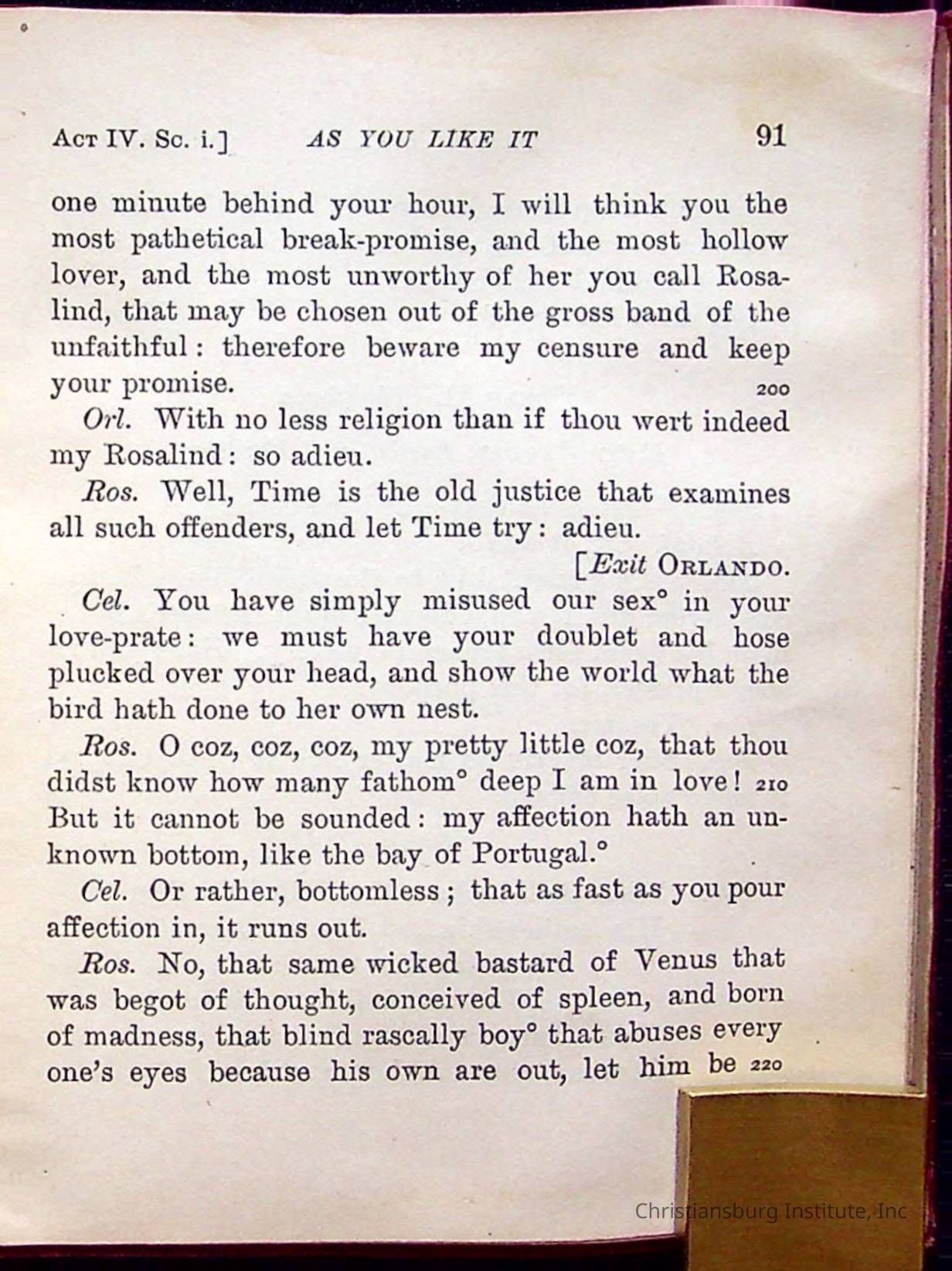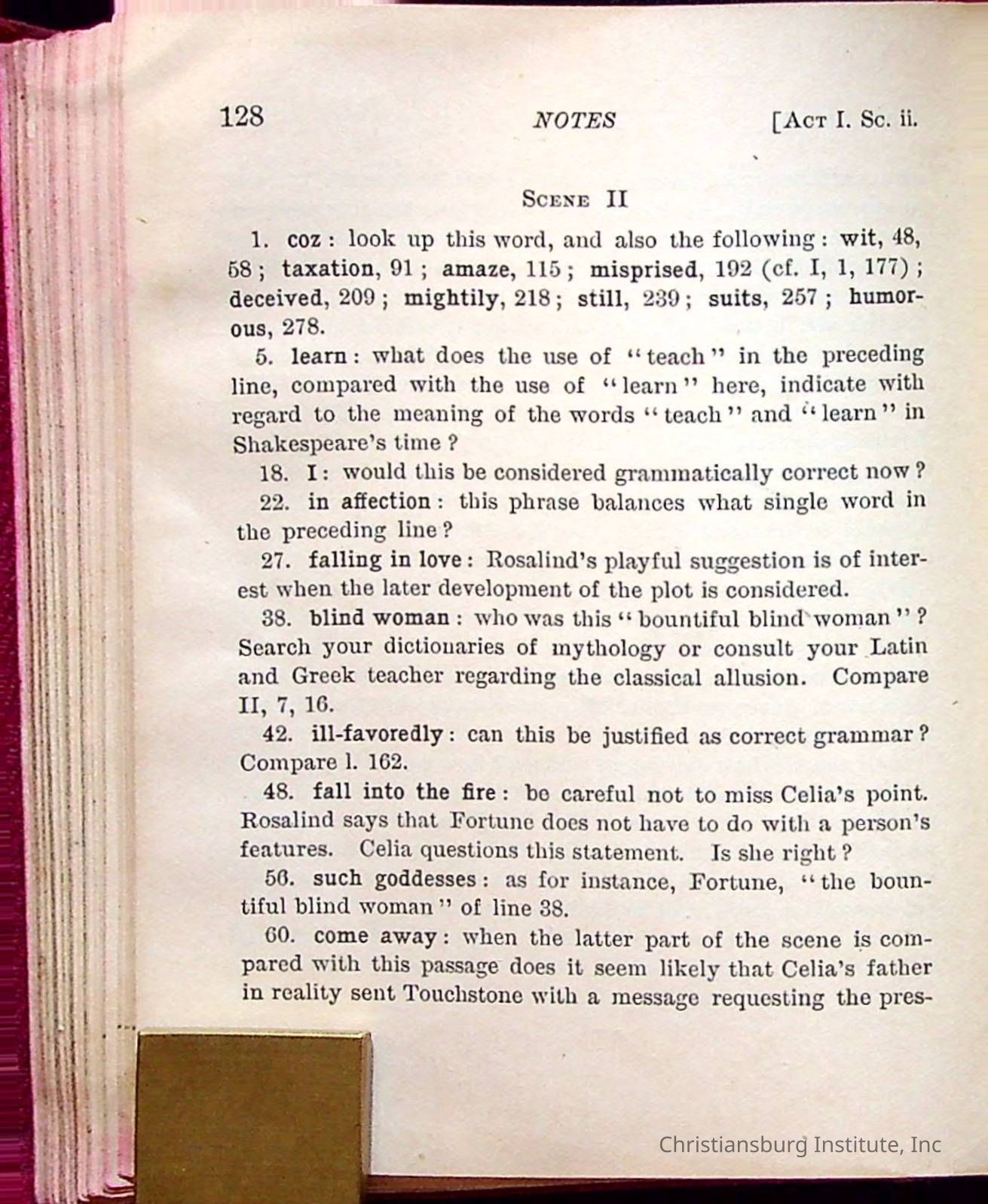 A second copy of the book, Shakespeare's As You Like It edited by Charles R. Gaston and published by the MacMillan Company in the year 1902. This book was used by Christiansburg Institute teacher, Viola Charlton in her class.Collection