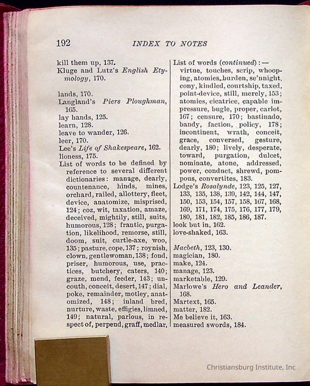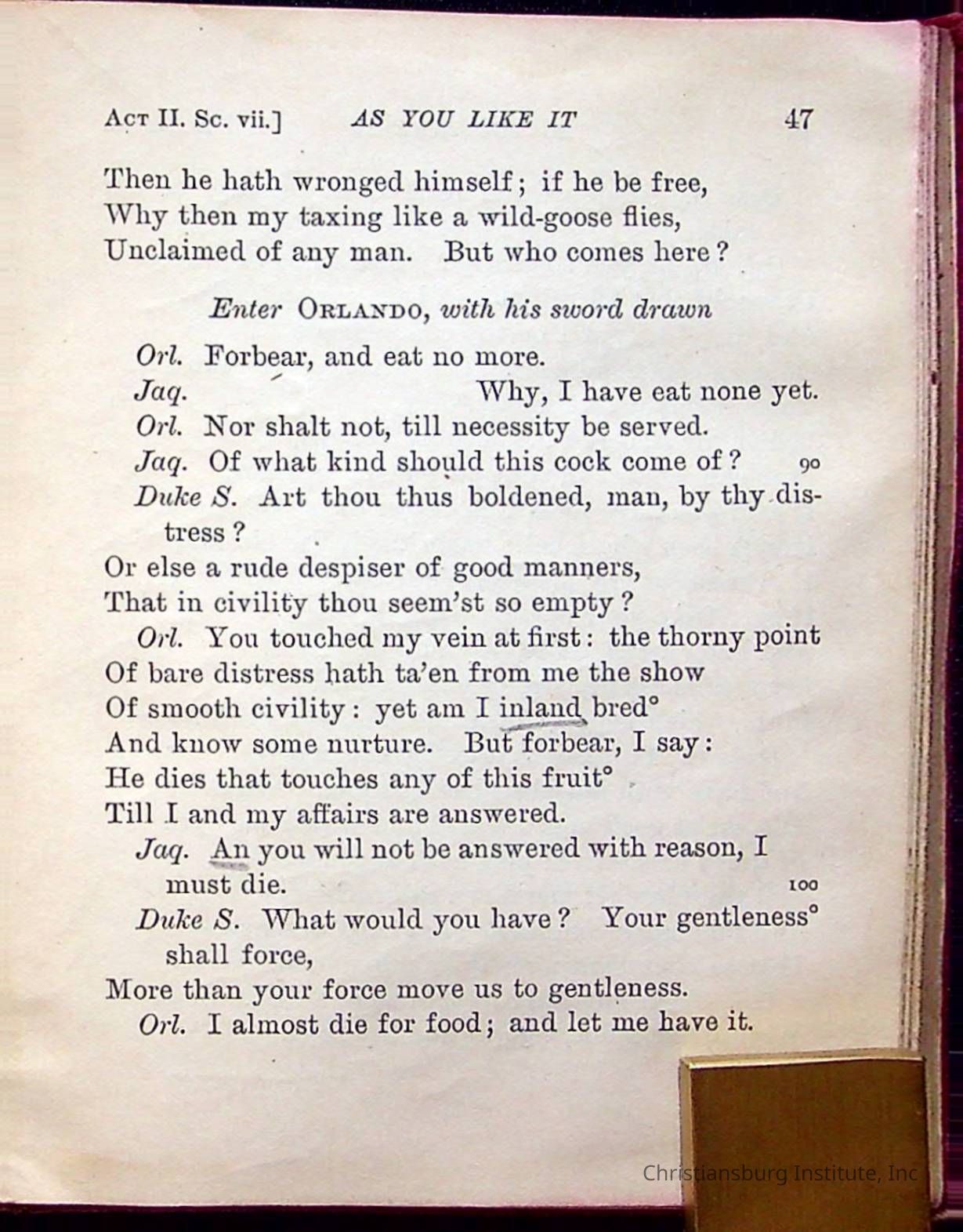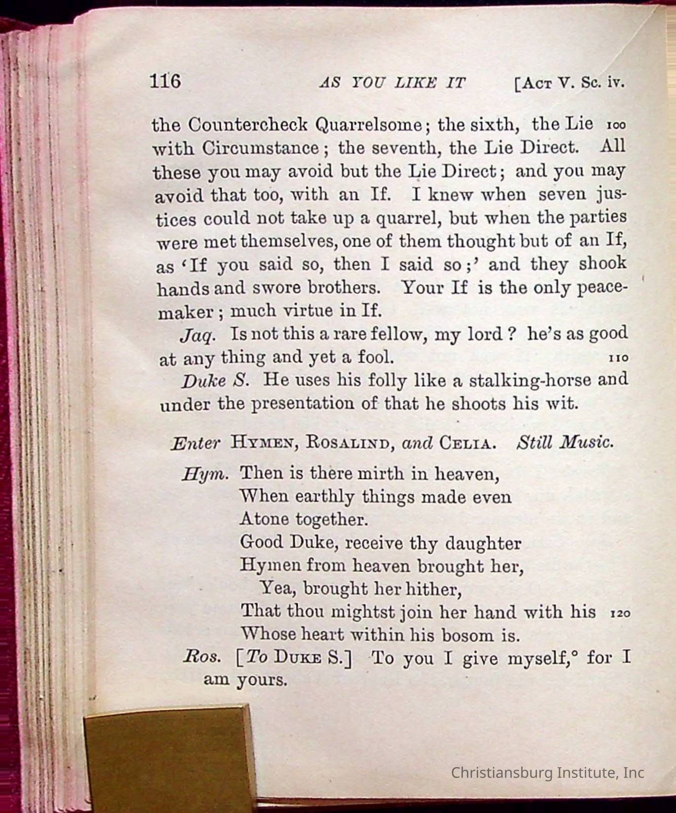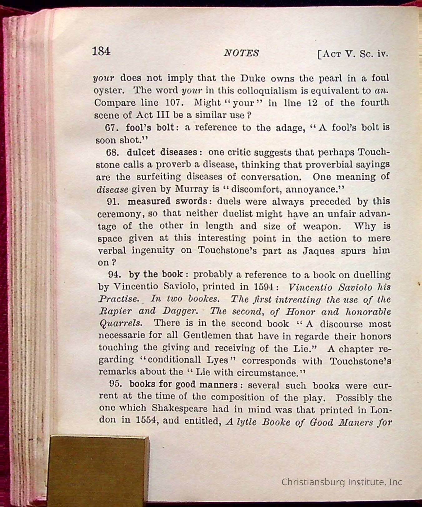 A second copy of the book, Shakespeare's As You Like It edited by Charles R. Gaston and published by the MacMillan Company in the year 1902. This book was used by Christiansburg Institute teacher, Viola Charlton in her class.Collection