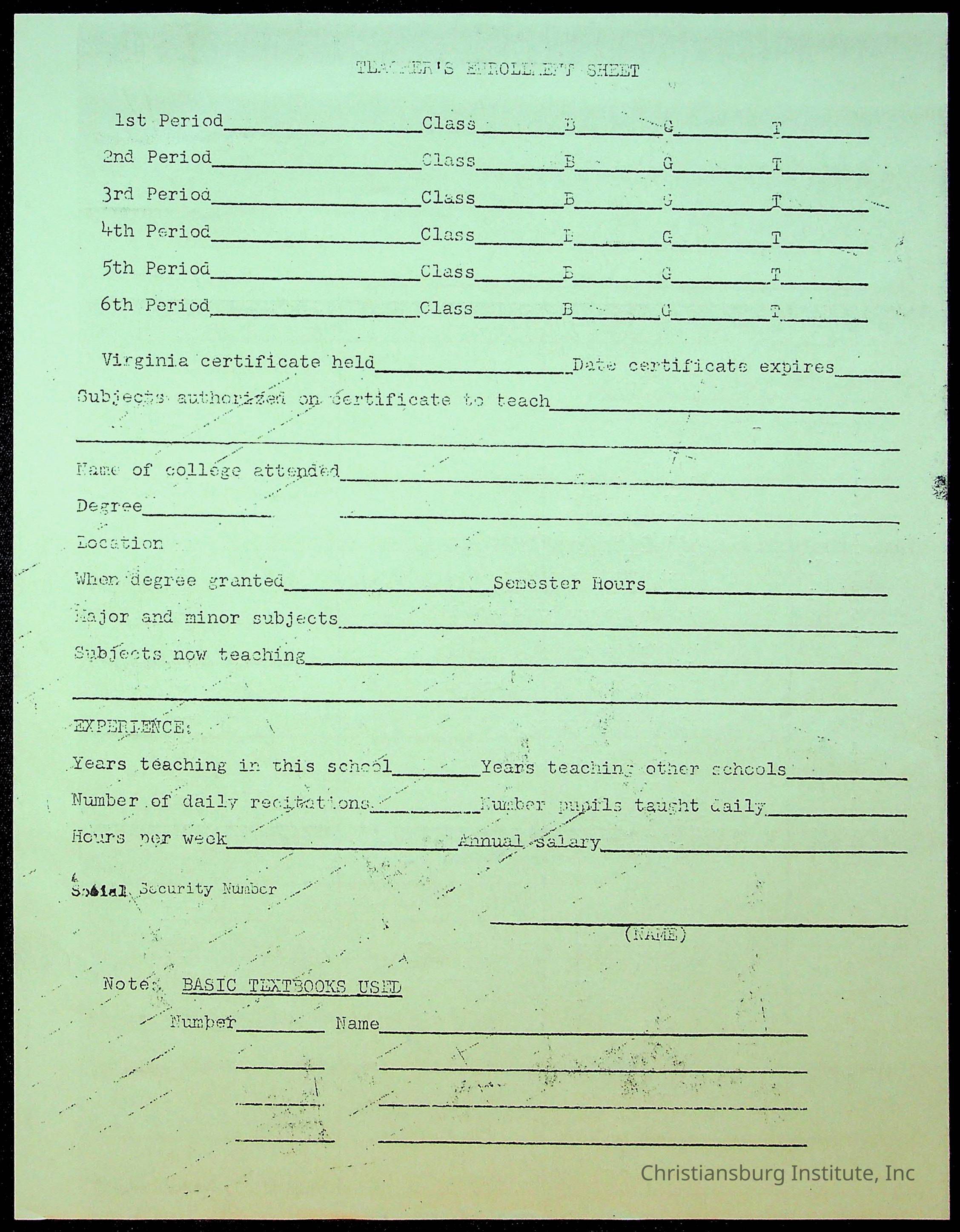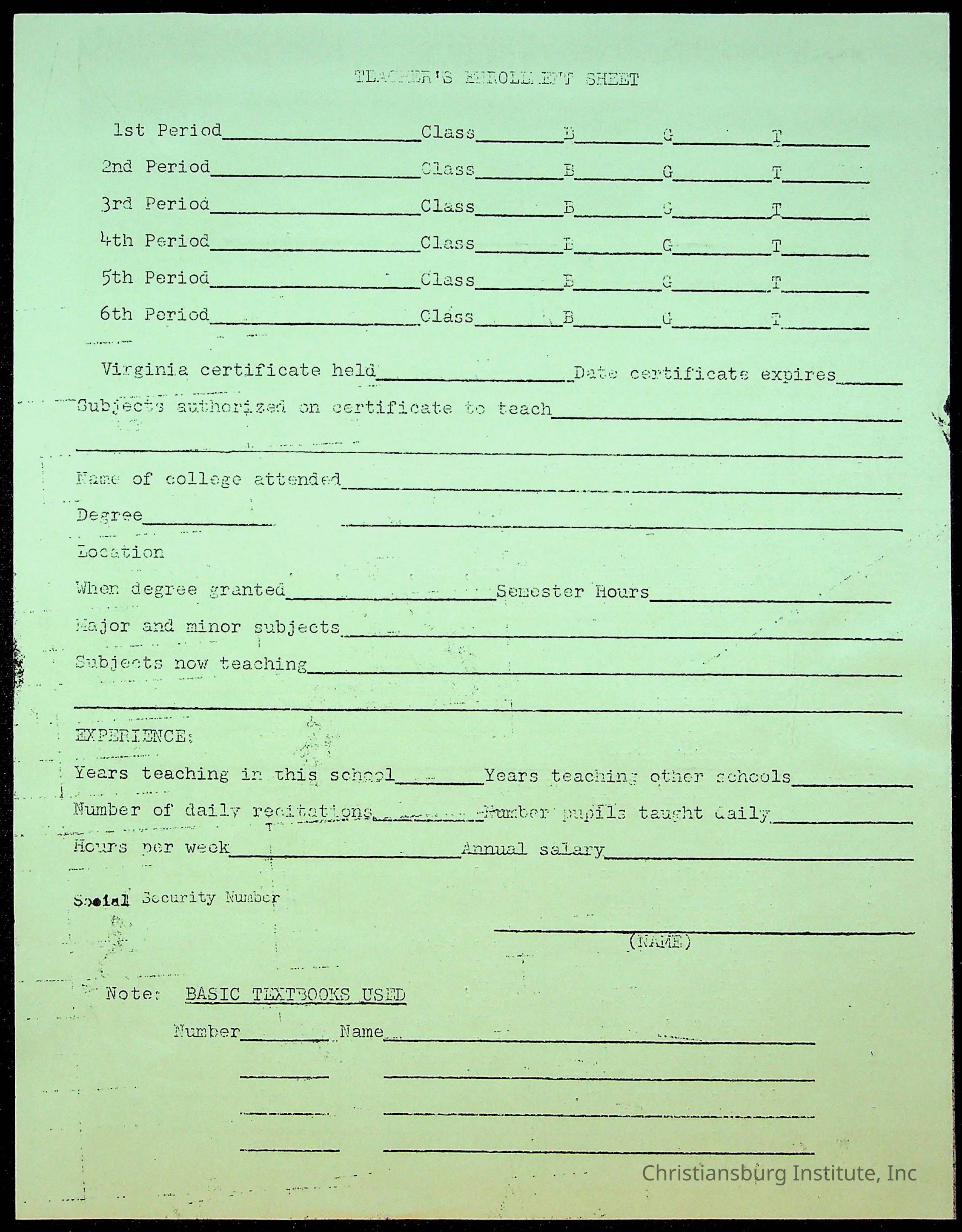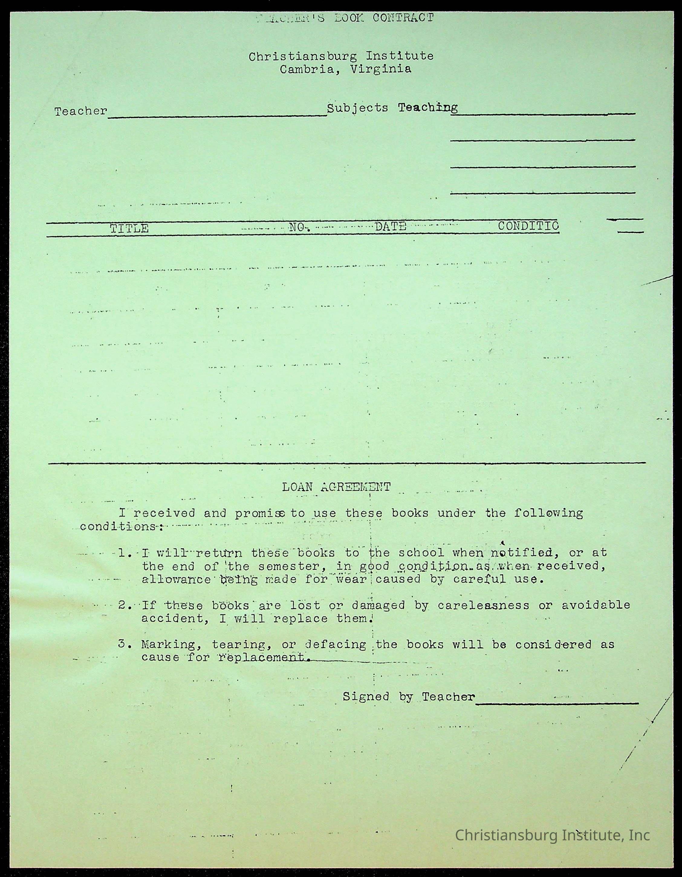 Copyright has been assigned to Christiansburg Institute Museum & Archives by Montgomery County Public Schools. For permission to publish materials created by the donor, contact CIMA@christiansburginstitute.com. Materials not created by Christiansburg Industrial Institute may still be under copyright.