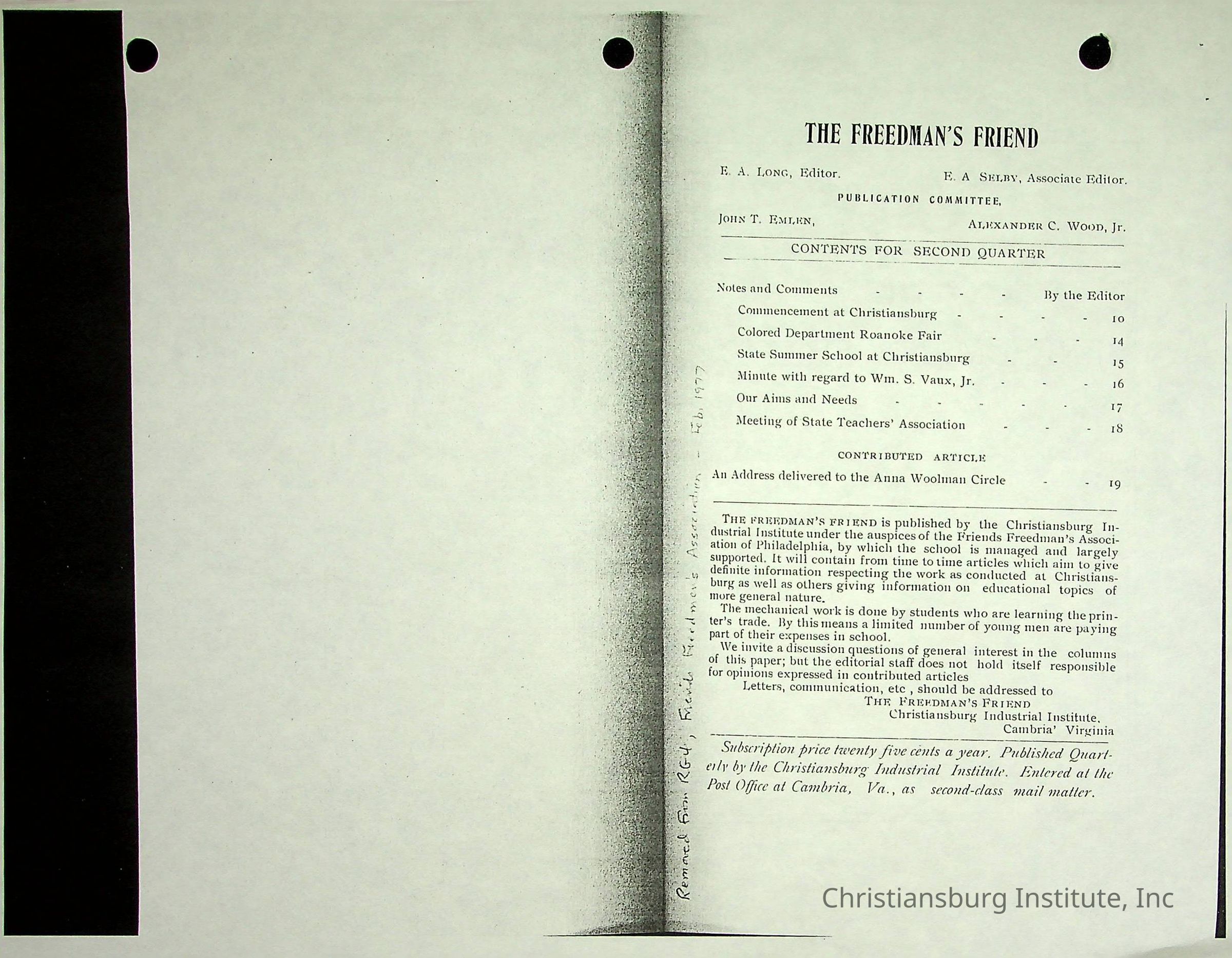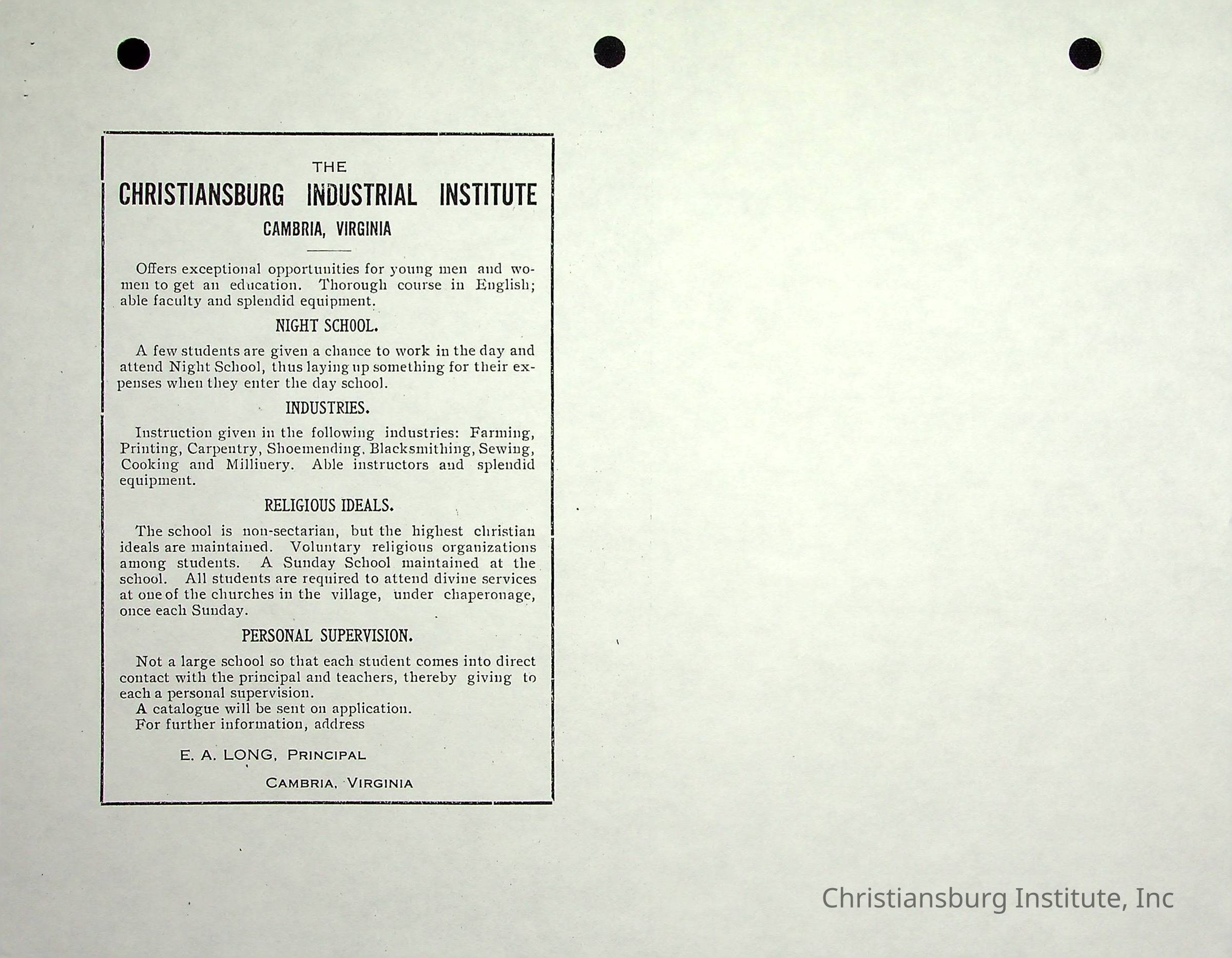 Christiansburg Industrial InstitutePlace Printed