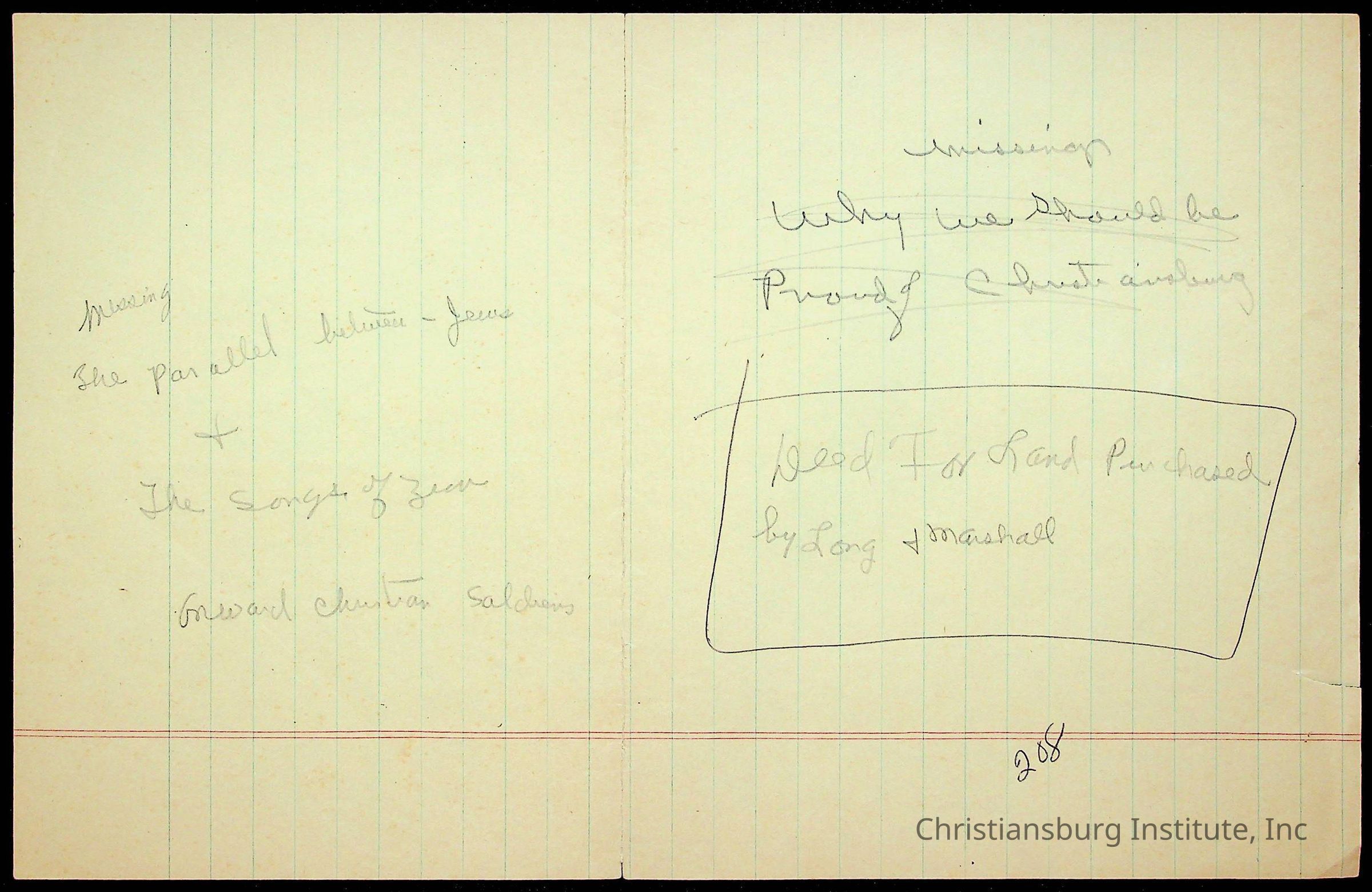 Speech notes about love, happiness, and laughter and Christiansburg Institute, written by Amanda DeHart, undated.Collection