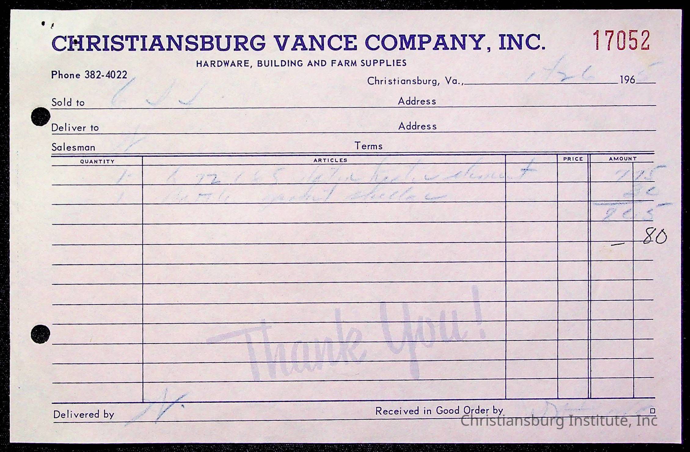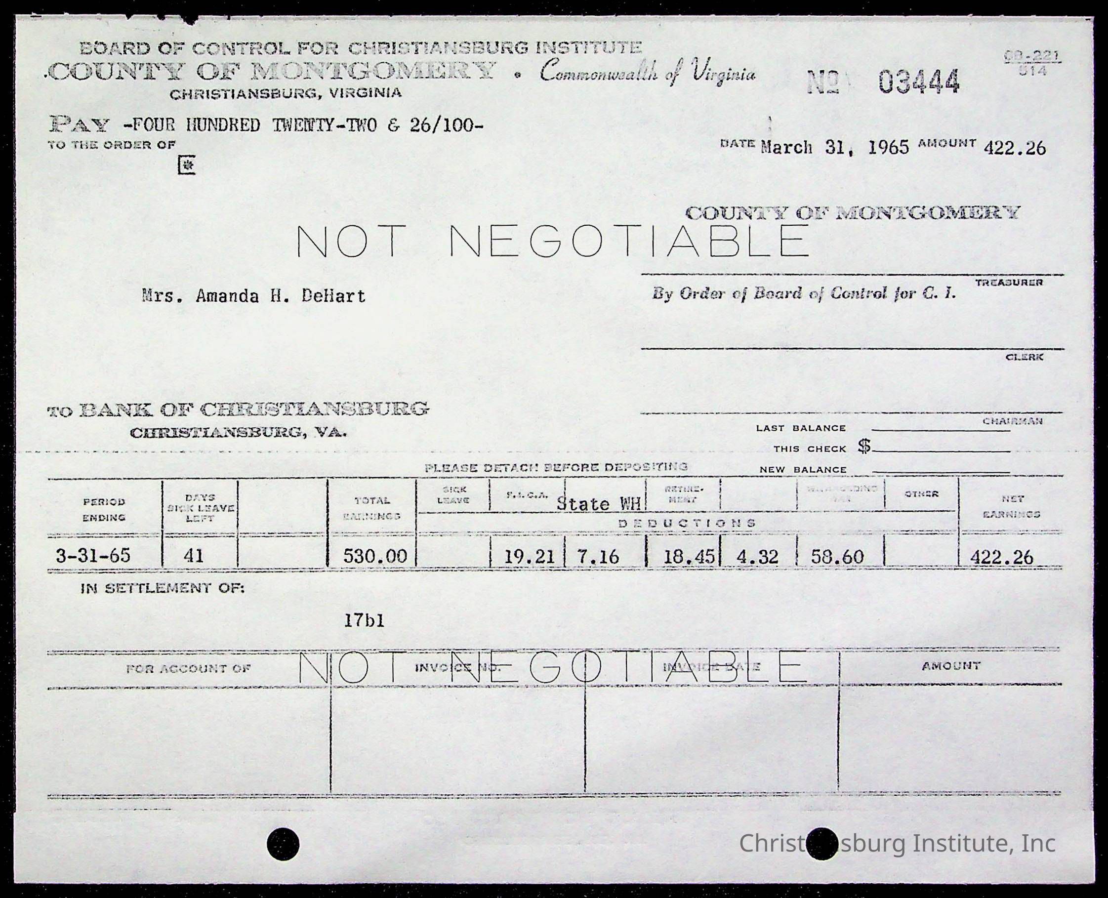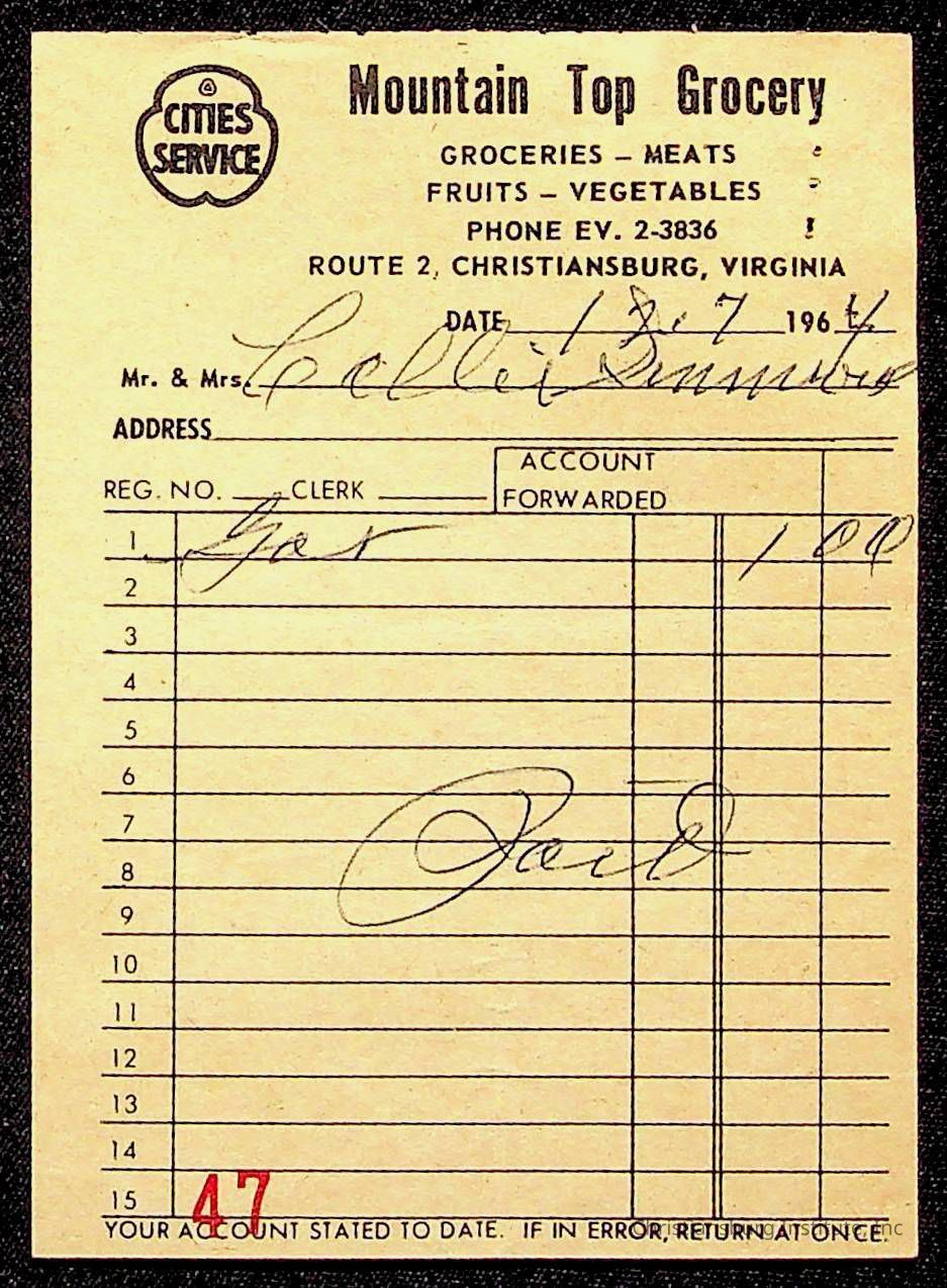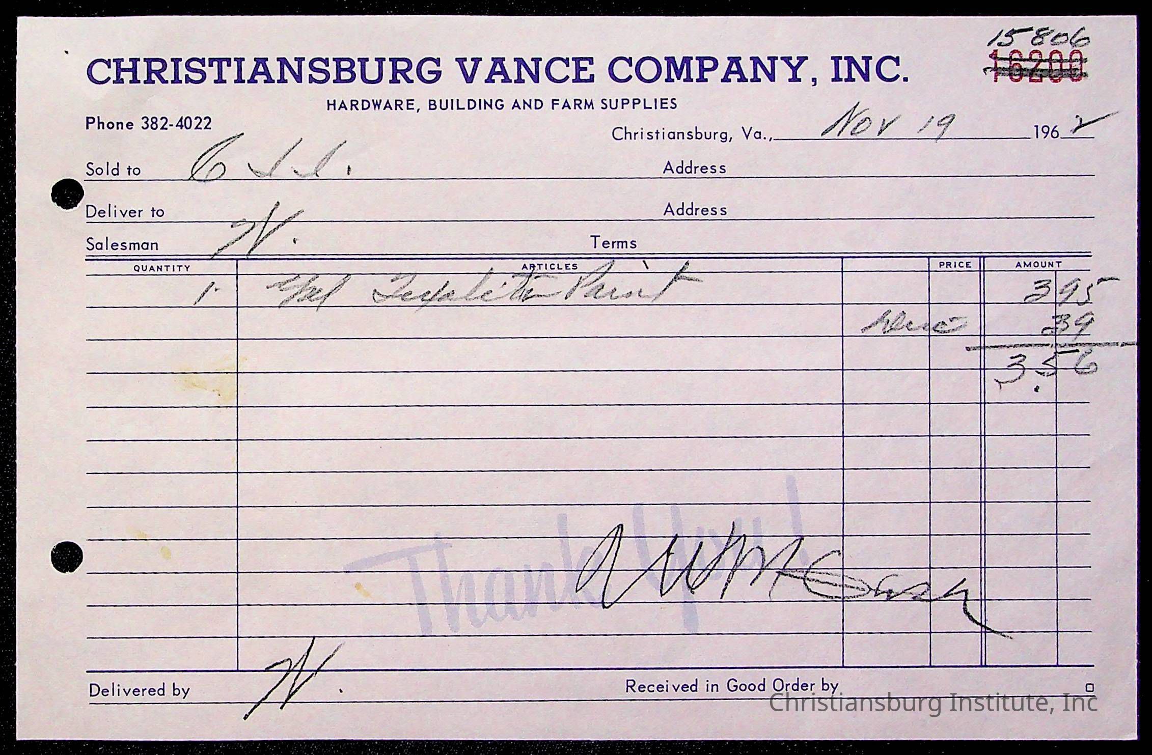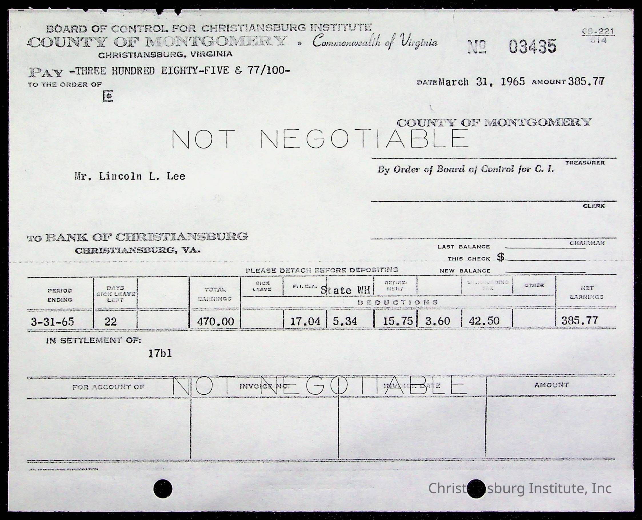 An archive of bills and receipts for Christiansburg Institute from February of 1965.