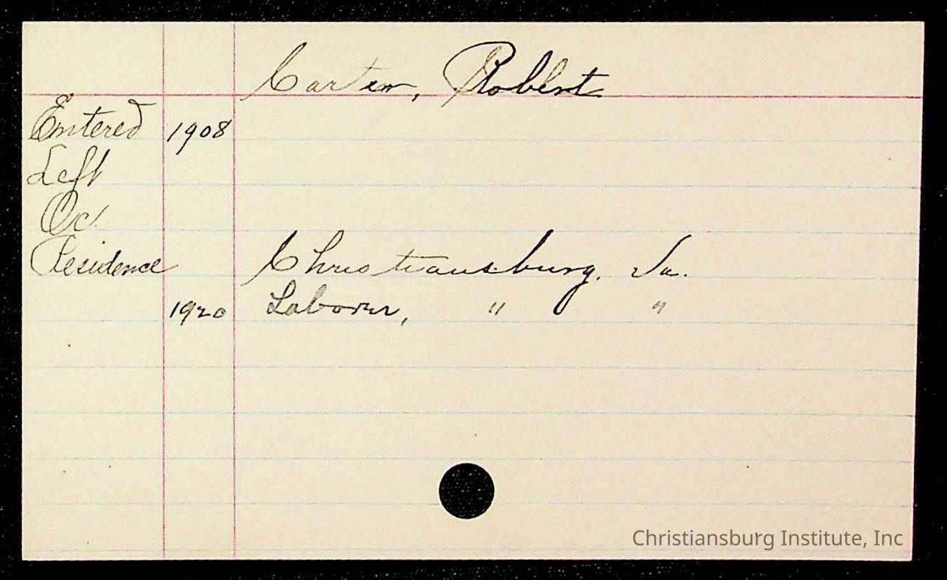 An archive of early Christiansburg Institute student records written on notecards for last names that began with the letter C, 1900s.