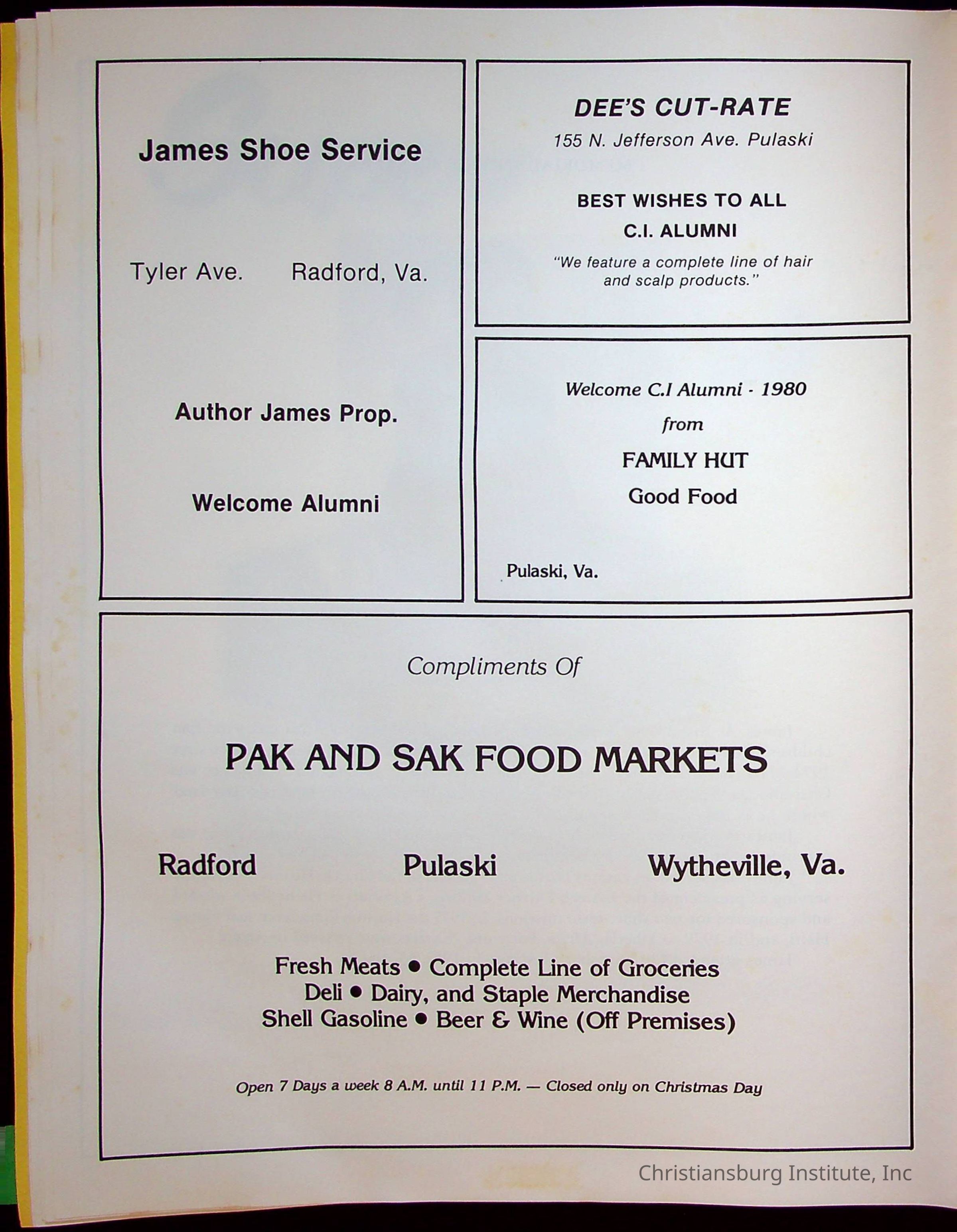 The official program booklet for the second Christiansburg Institute reunion on July 4th-6th 1980 that took place at the Marriott Inn in Blacksburg, Virginia.Collection