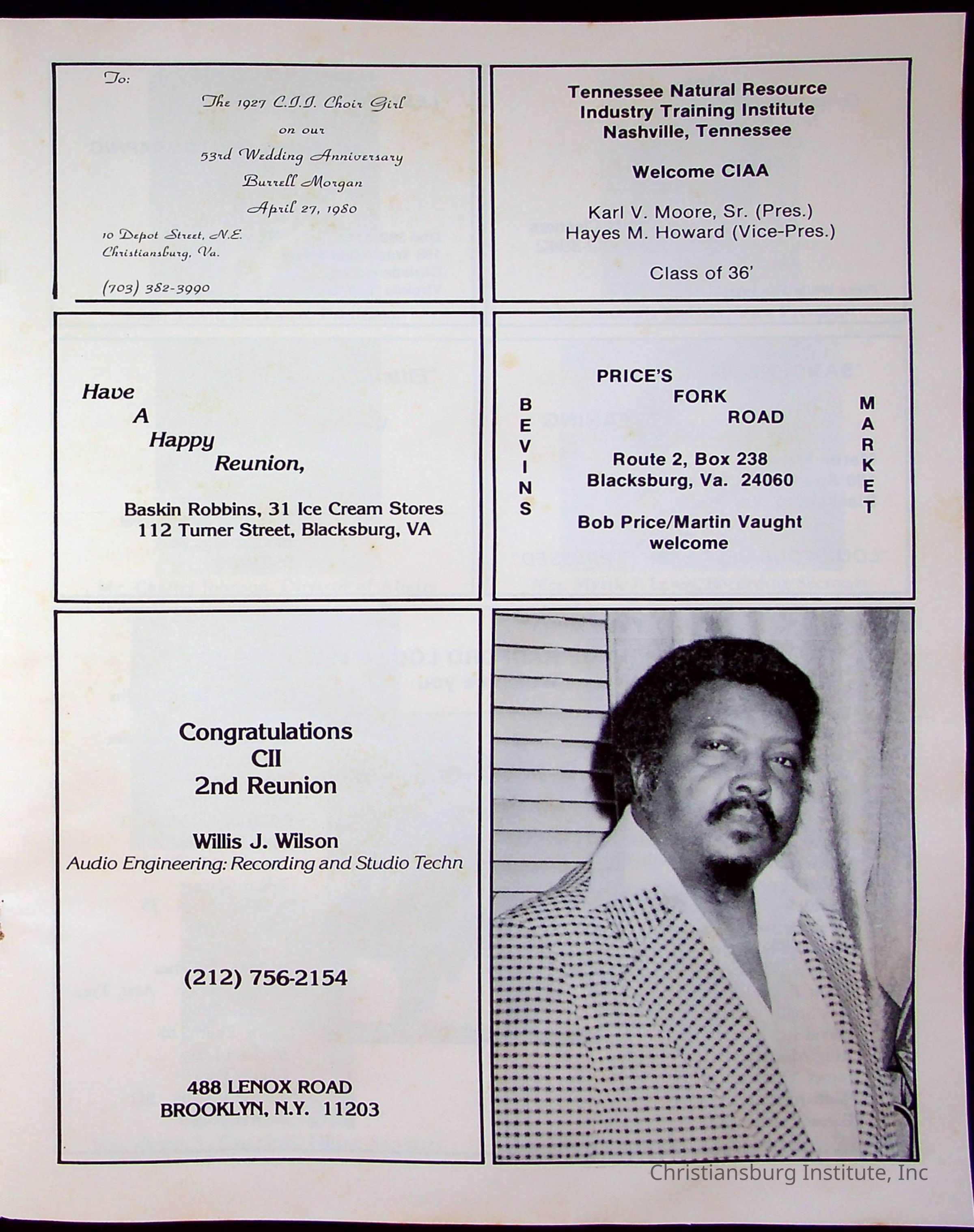 Christiansburg Institute Alumni Association Reunion BookletPeriodical Type