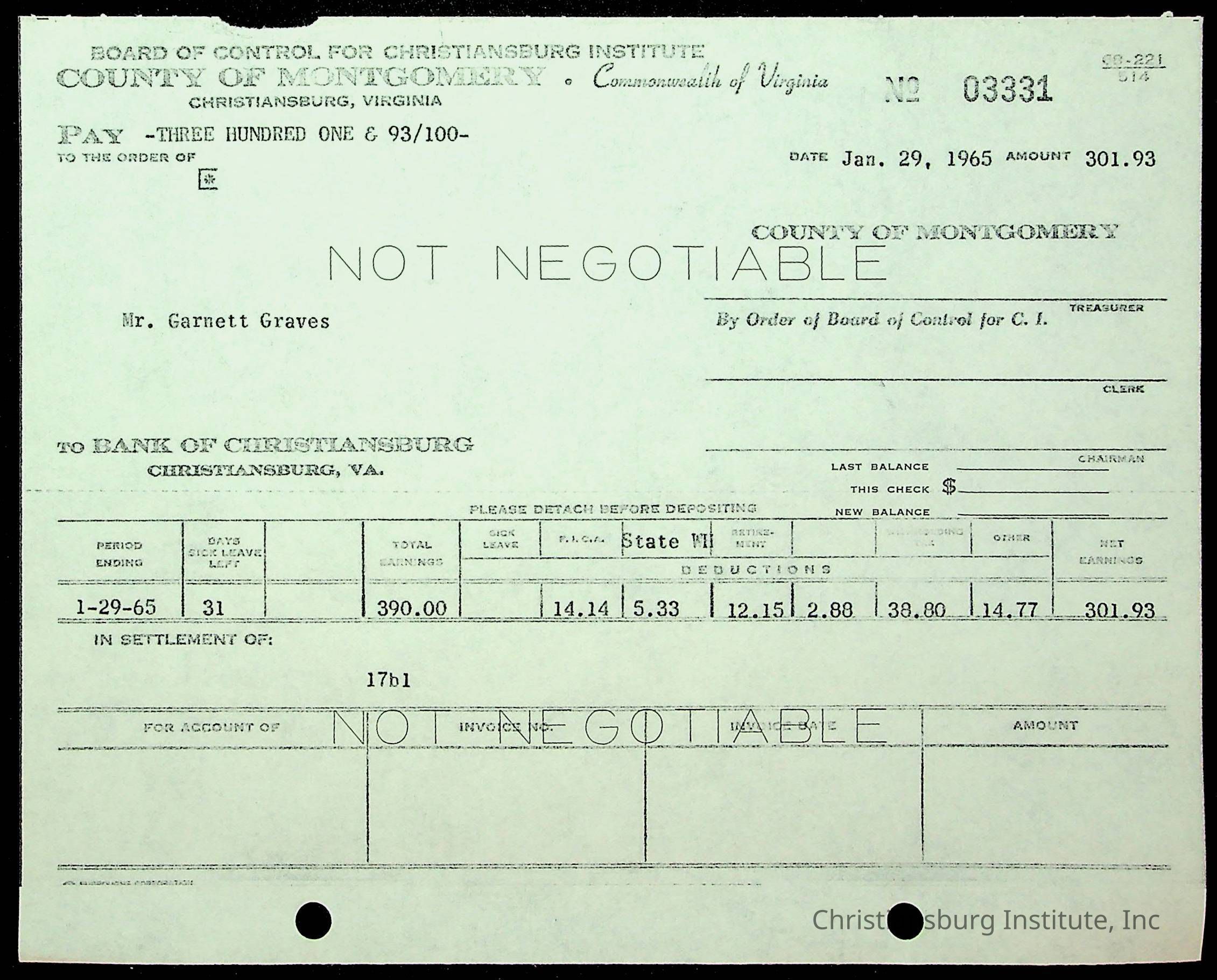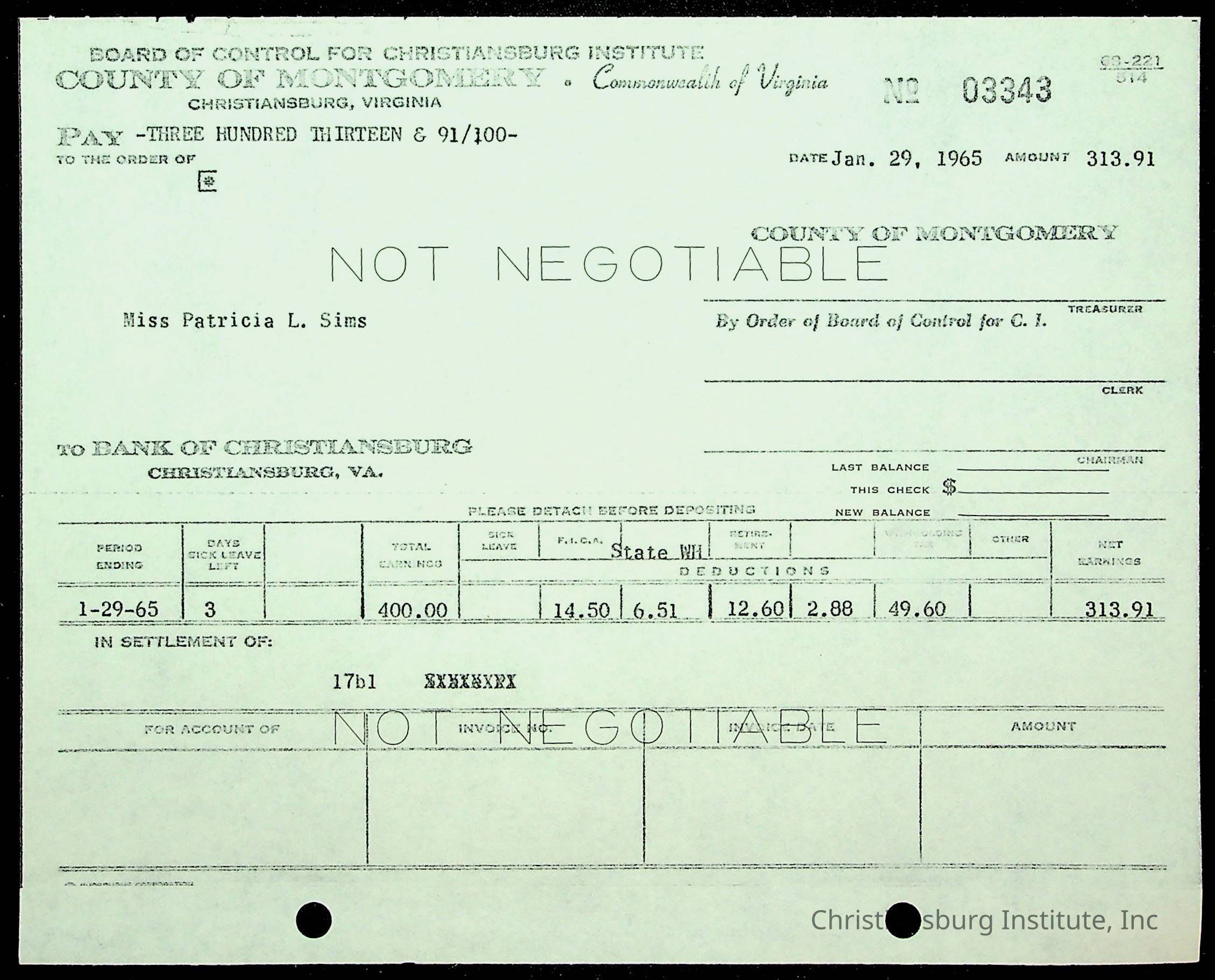 Christiansburg Institute, The Board of Control, Bank of Christiansburg, Montgomery County School Board