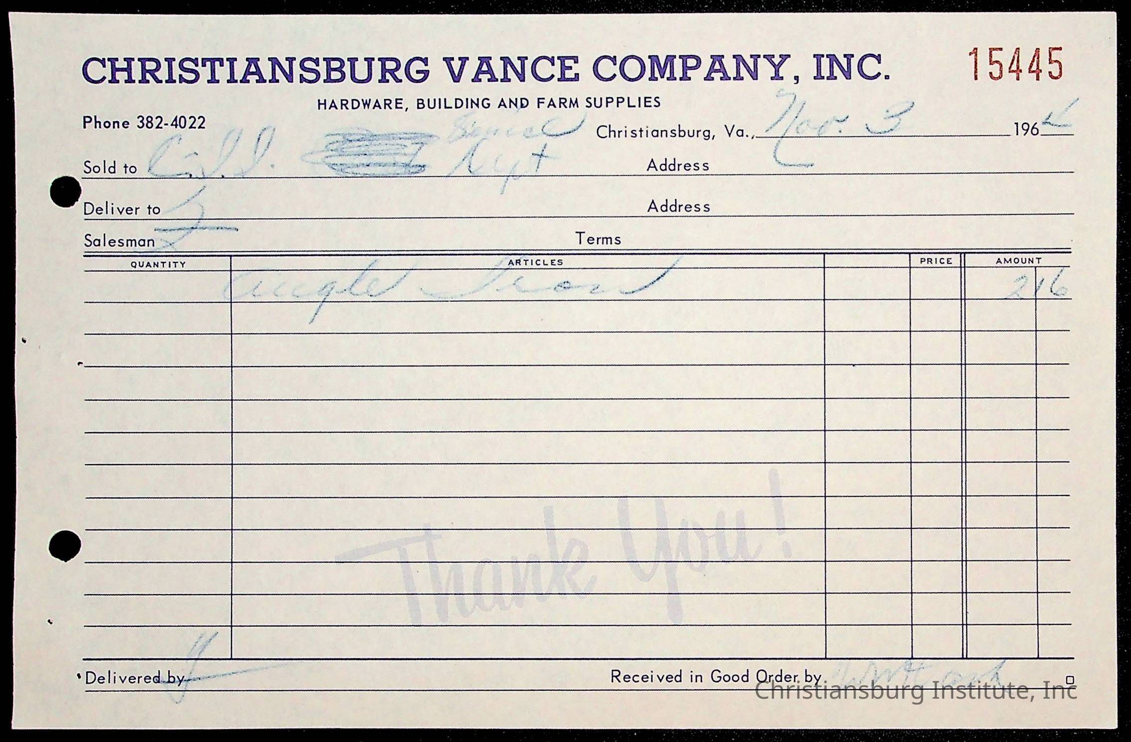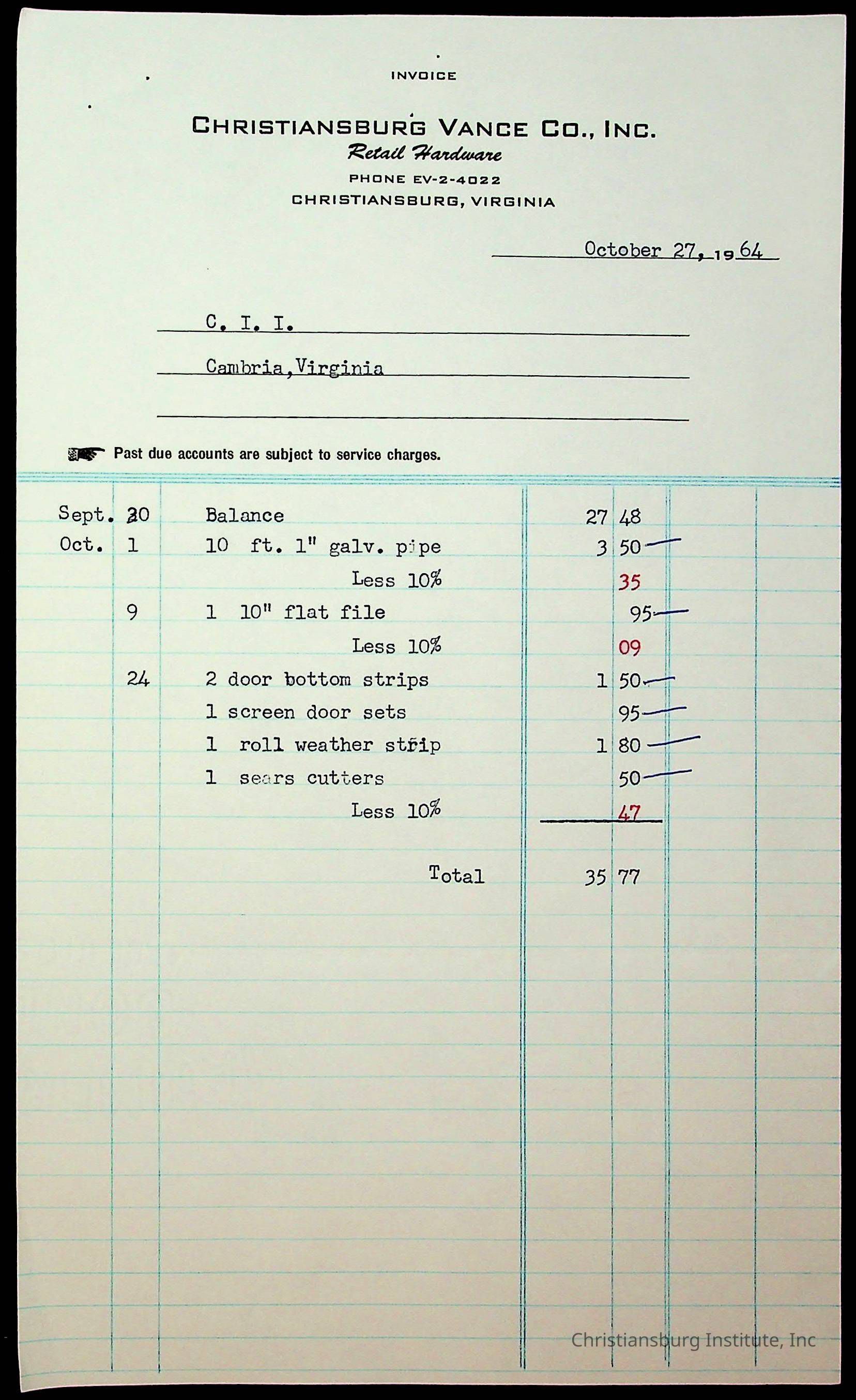 Copyright has been assigned to Christiansburg Institute Museum & Archives by Montgomery County Public Schools. For permission to publish materials created by the donor, contact CIMA@christiansburginstitute.com. Materials not created by Christiansburg Industrial Institute may still be under copyright.