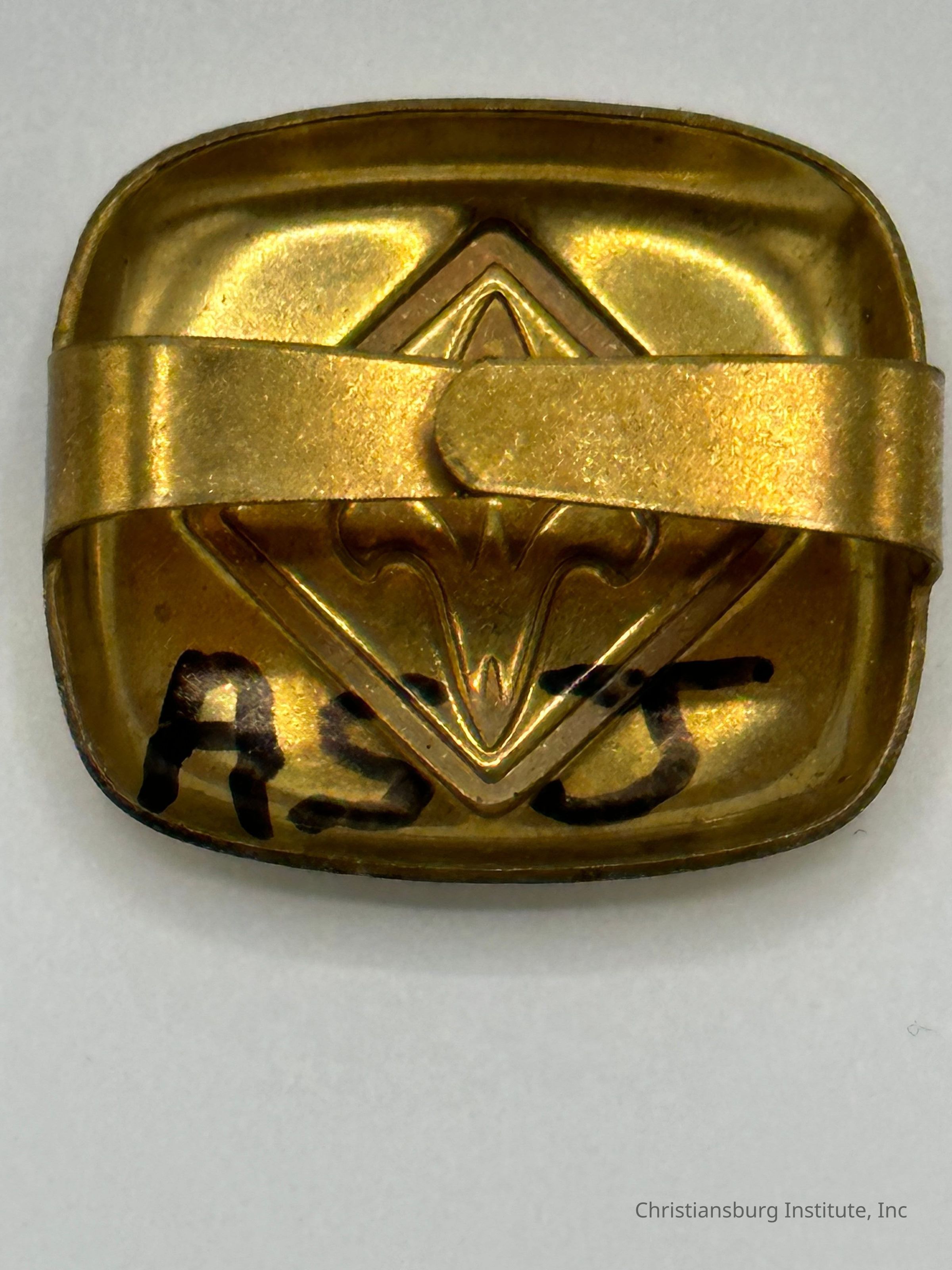A Webelos Rank Cub Scouts gold metal tie pin with the initial' ASJ' inscribed on the back of the pin, undated.Collection