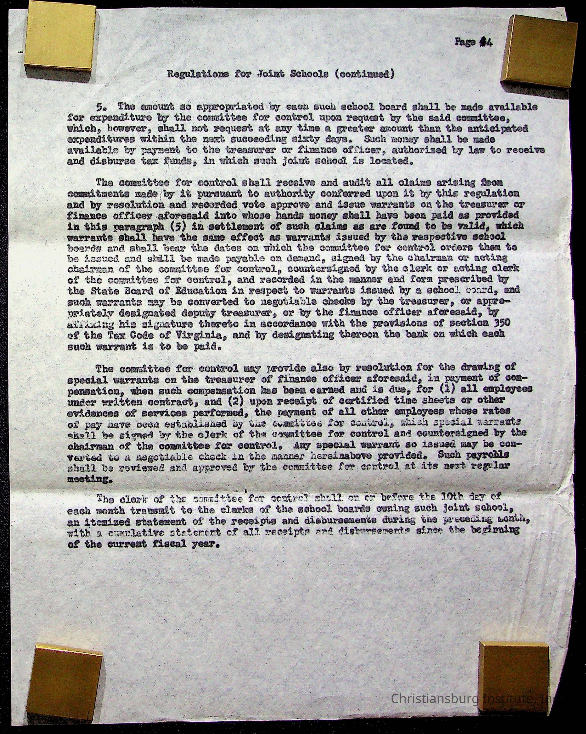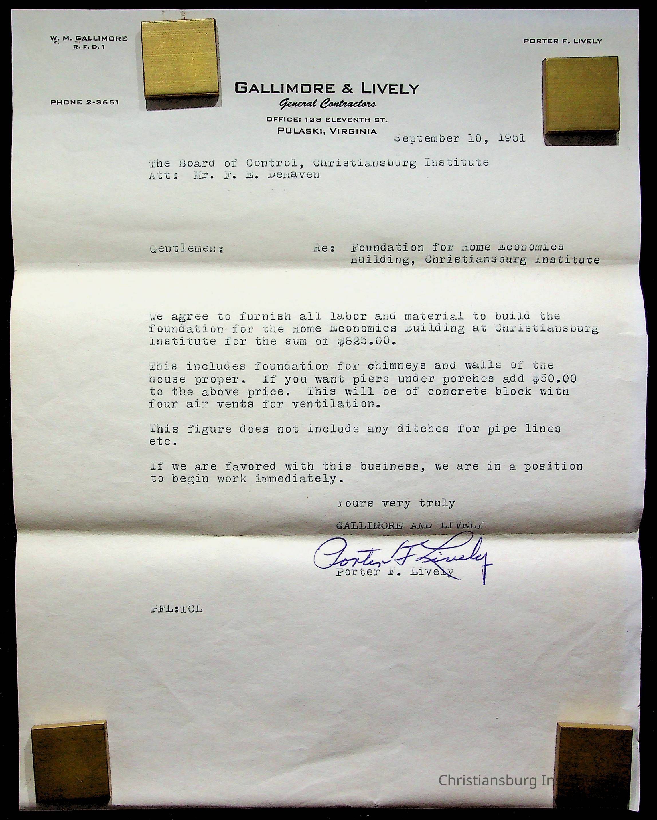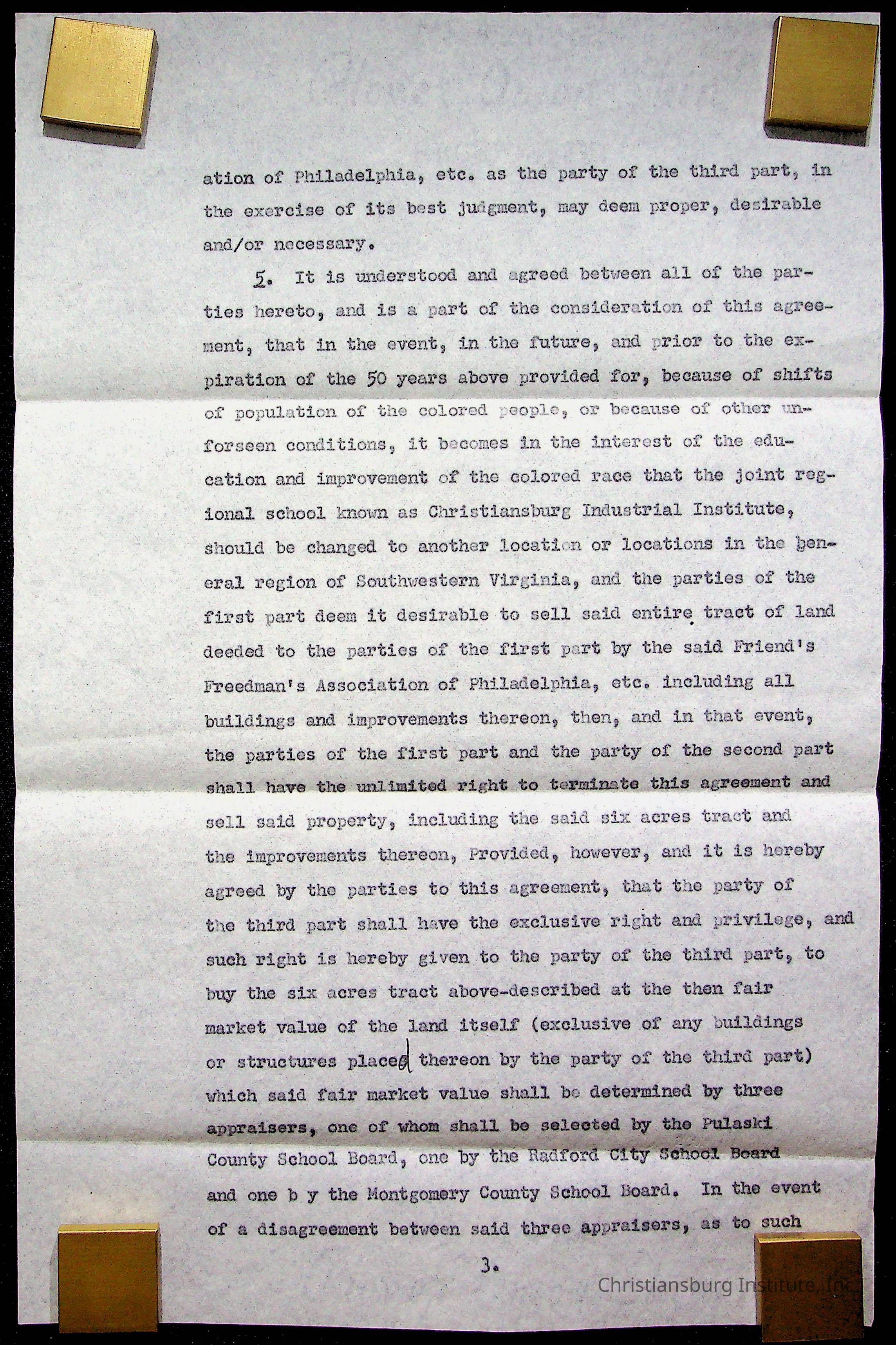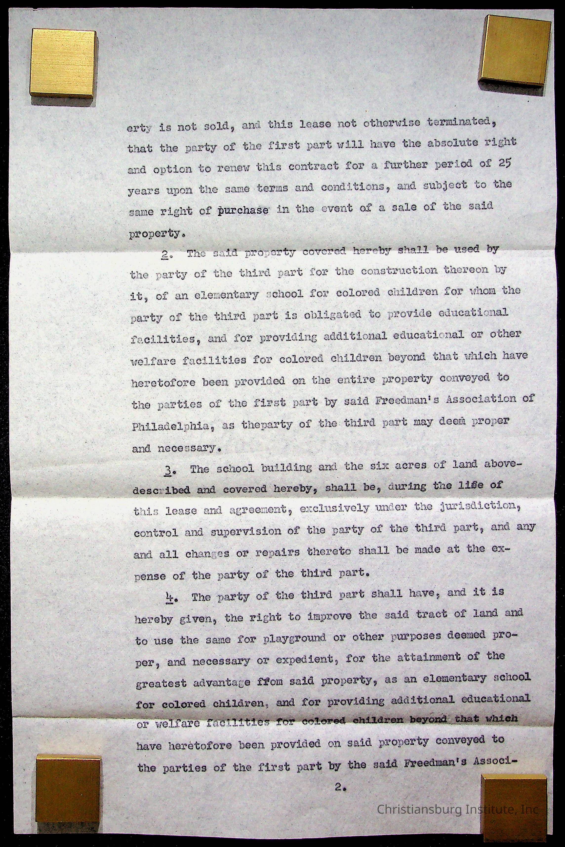 An archive of materials relating to the Christiansburg Institute including copies of deeds, correspondence, insurance paperwork, and other materials, circa 1940s-1960s.Collection