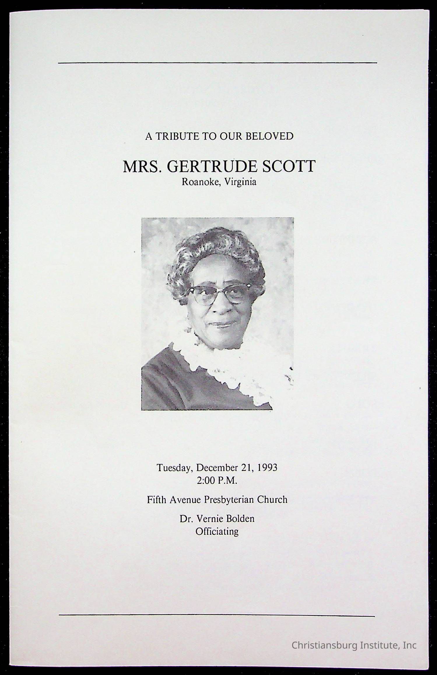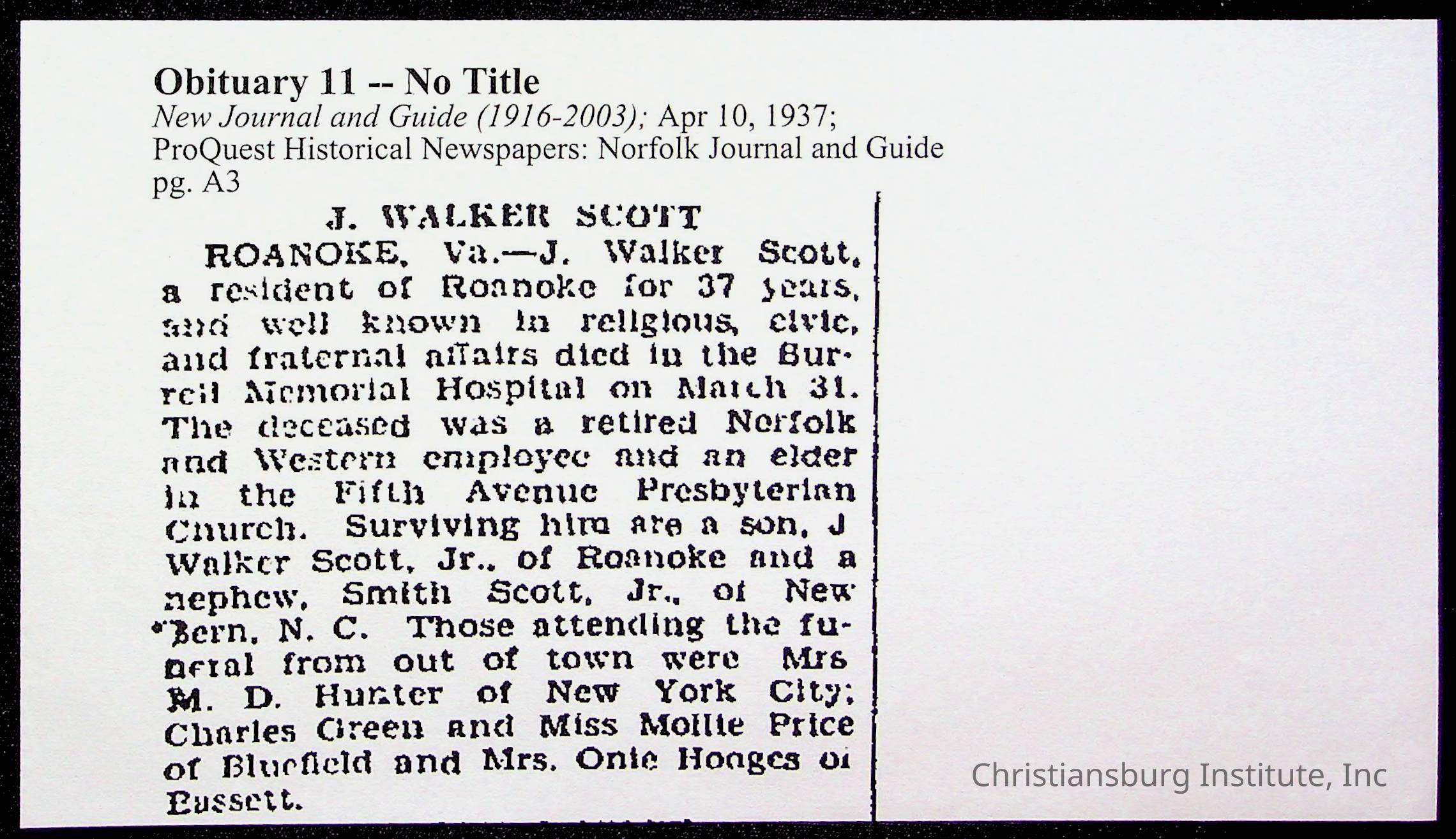 Copyright has been assigned to Christiansburg Institute Museum & Archives by Fifth Avenue Presbyterian Church. For permission to publish materials created by the donor, contact CIMA@christiansburginstitute.com. Materials not created by Fifth Avenue Presbyterian Church may still be under copyright.
