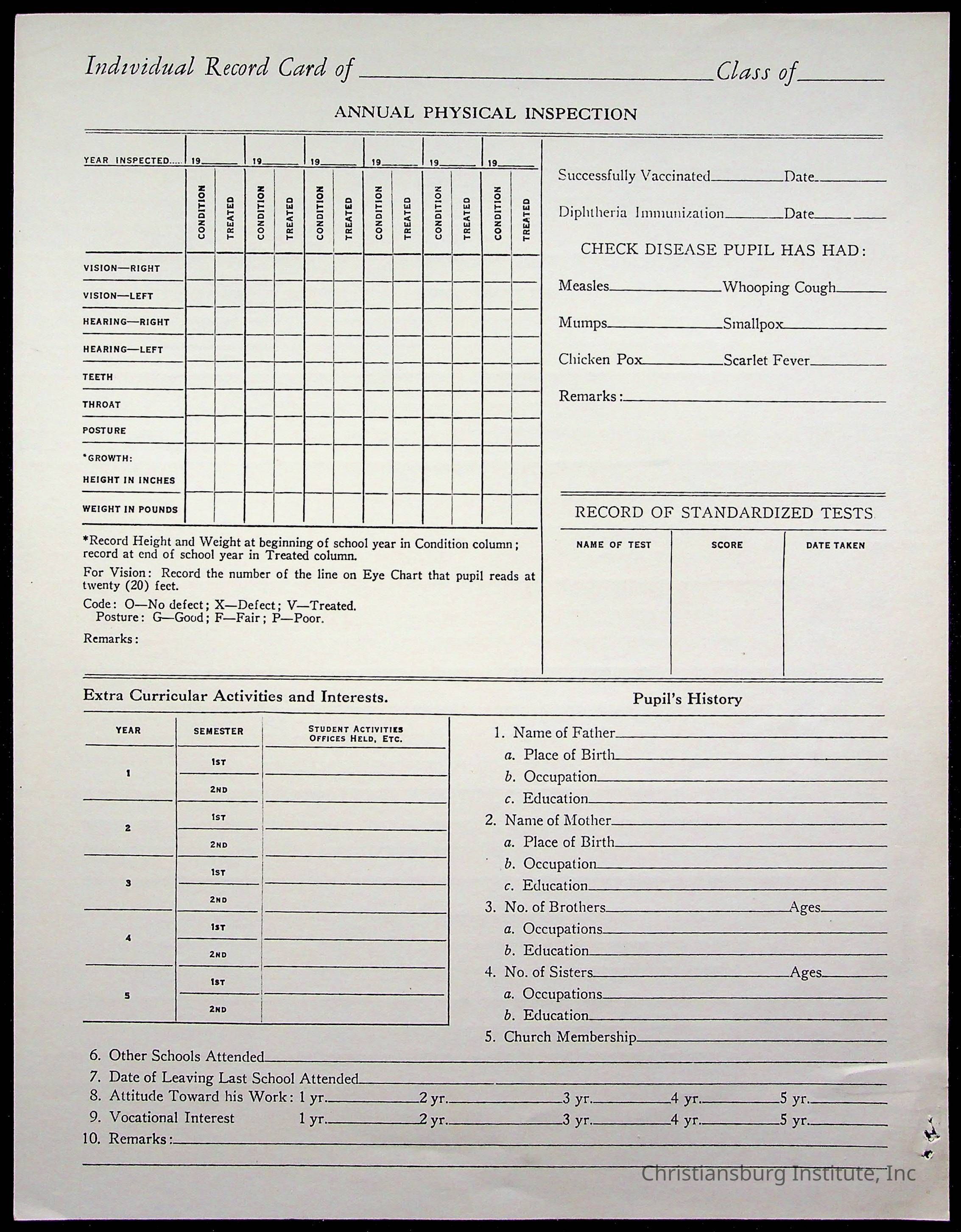 Copyright has been assigned to Christiansburg Institute Museum & Archives by Montgomery County Public Schools. For permission to publish materials created by the donor, contact CIMA@christiansburginstitute.com. Materials not created by Christiansburg Industrial Institute may still be under copyright.