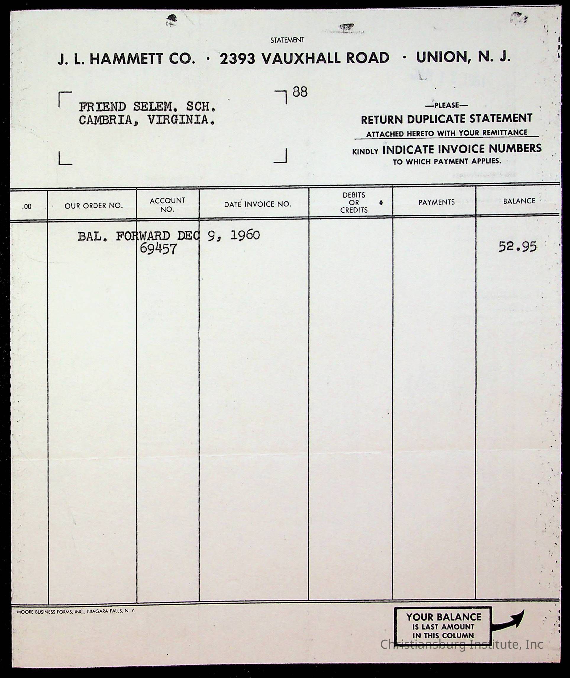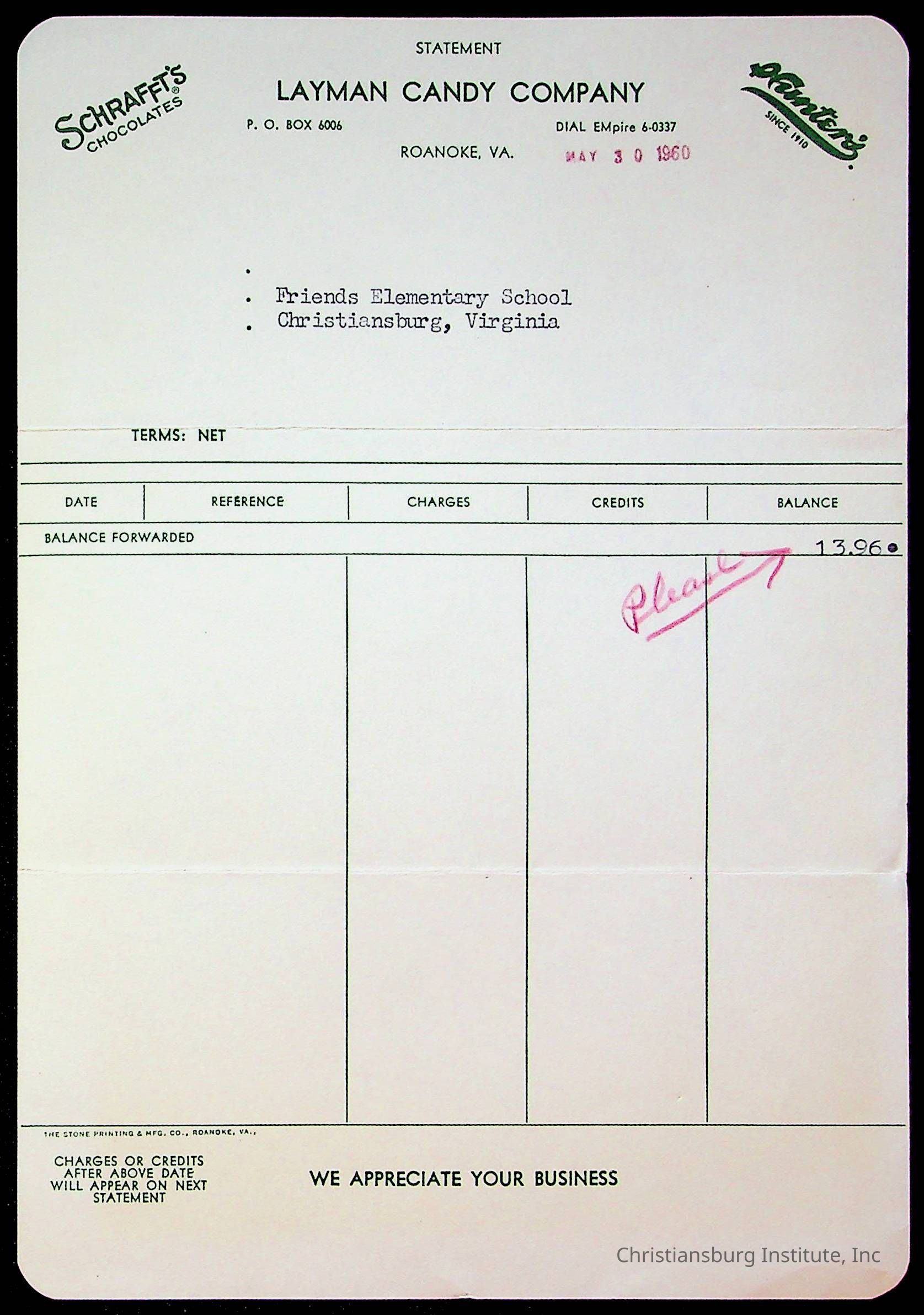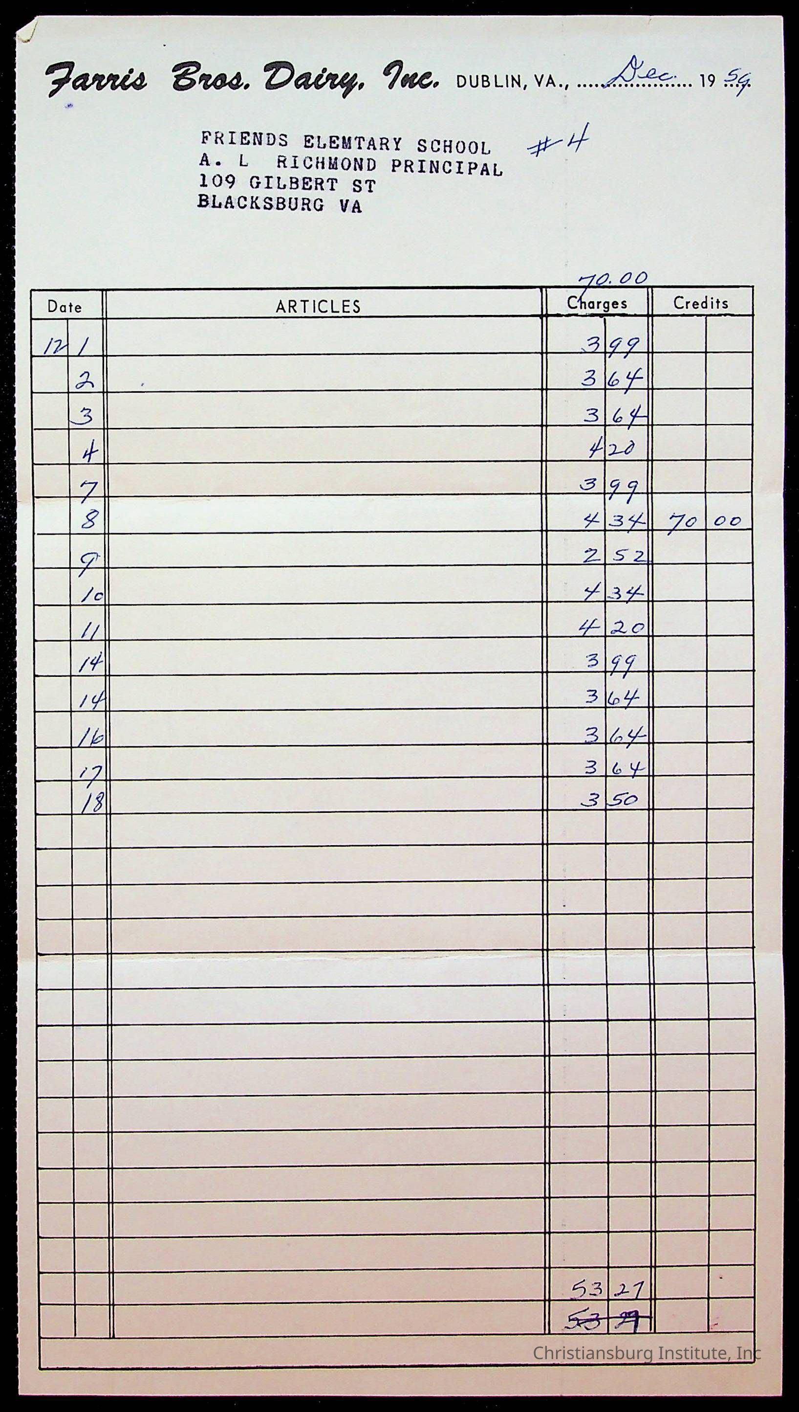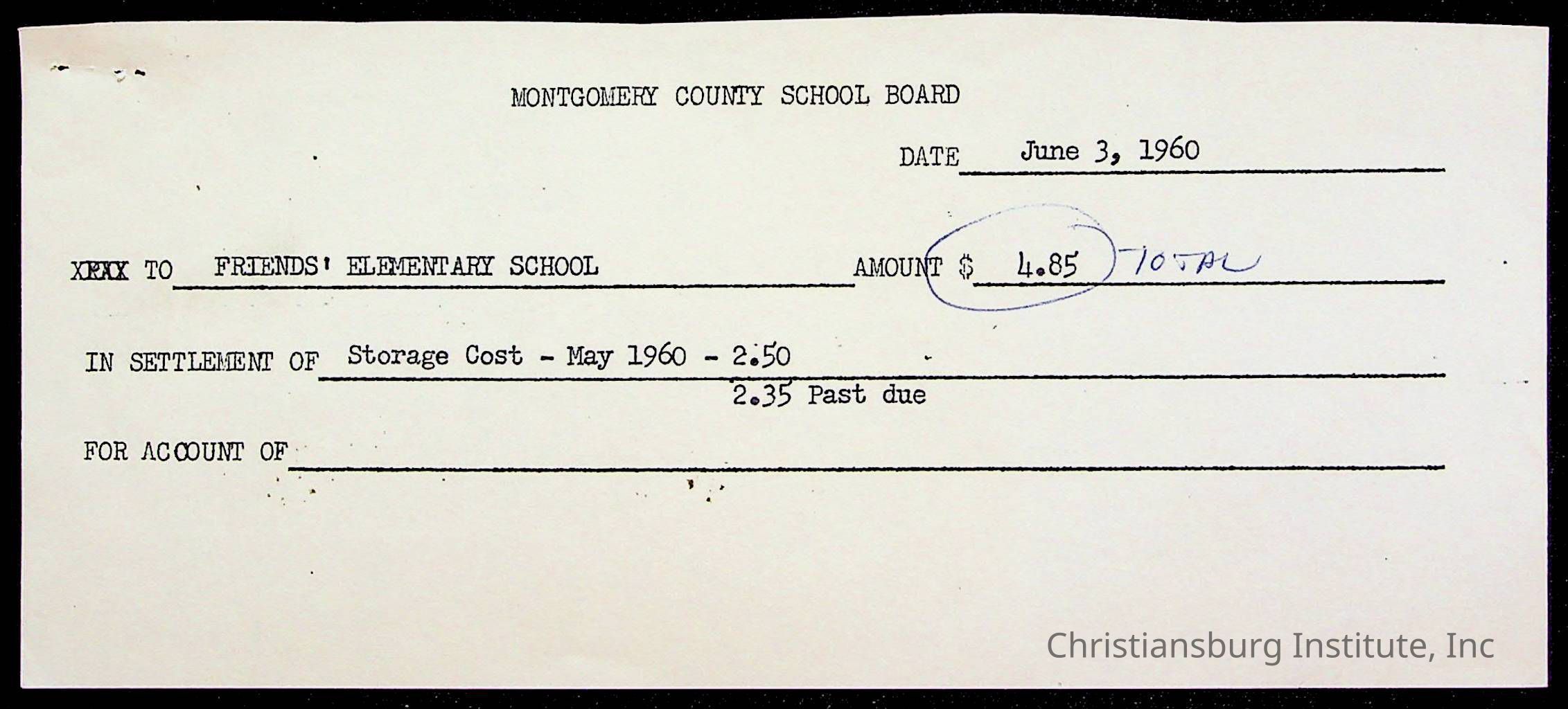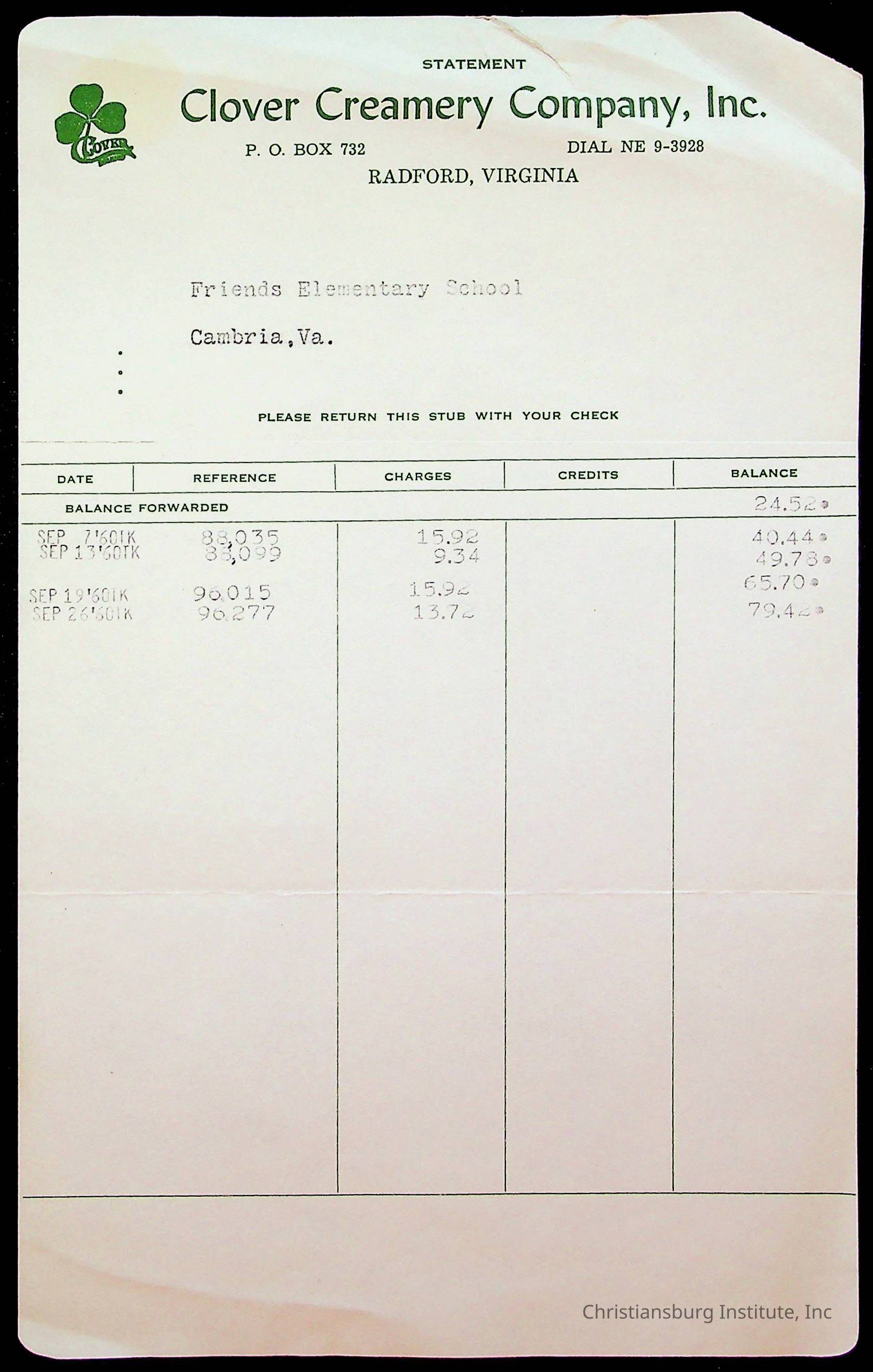 An archive of bills and receipts for Friends Elementary School from the 1959-1960 school year.Collection