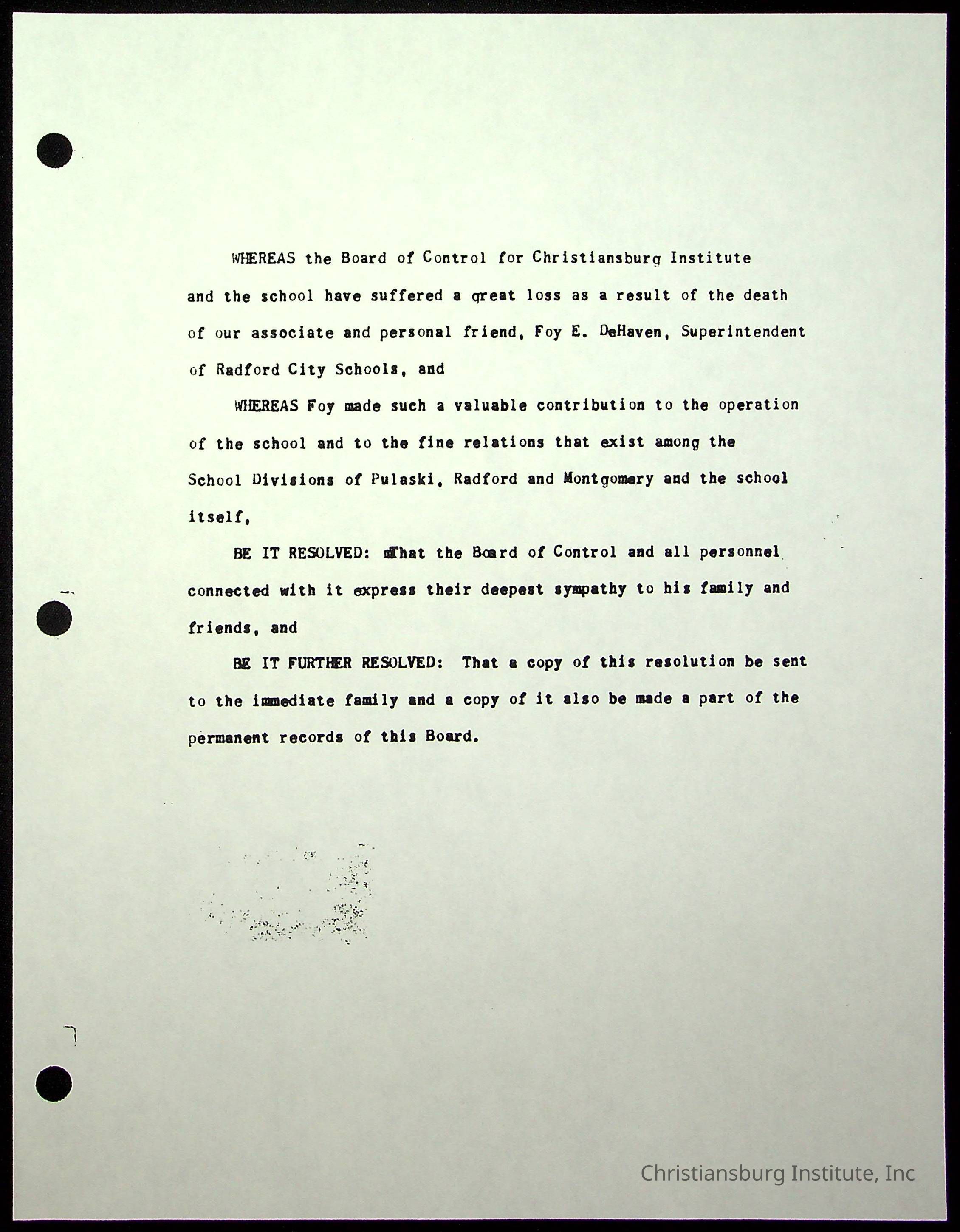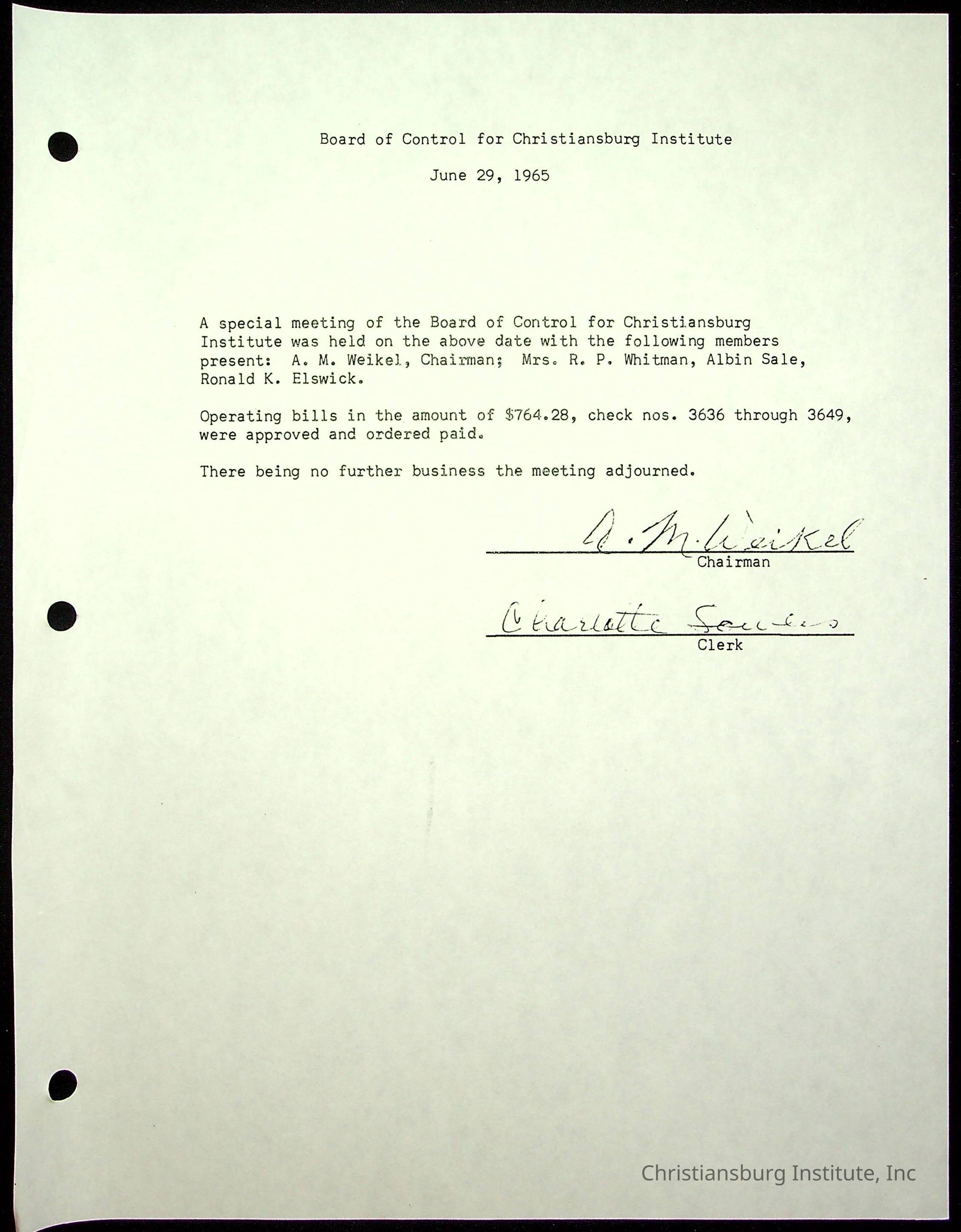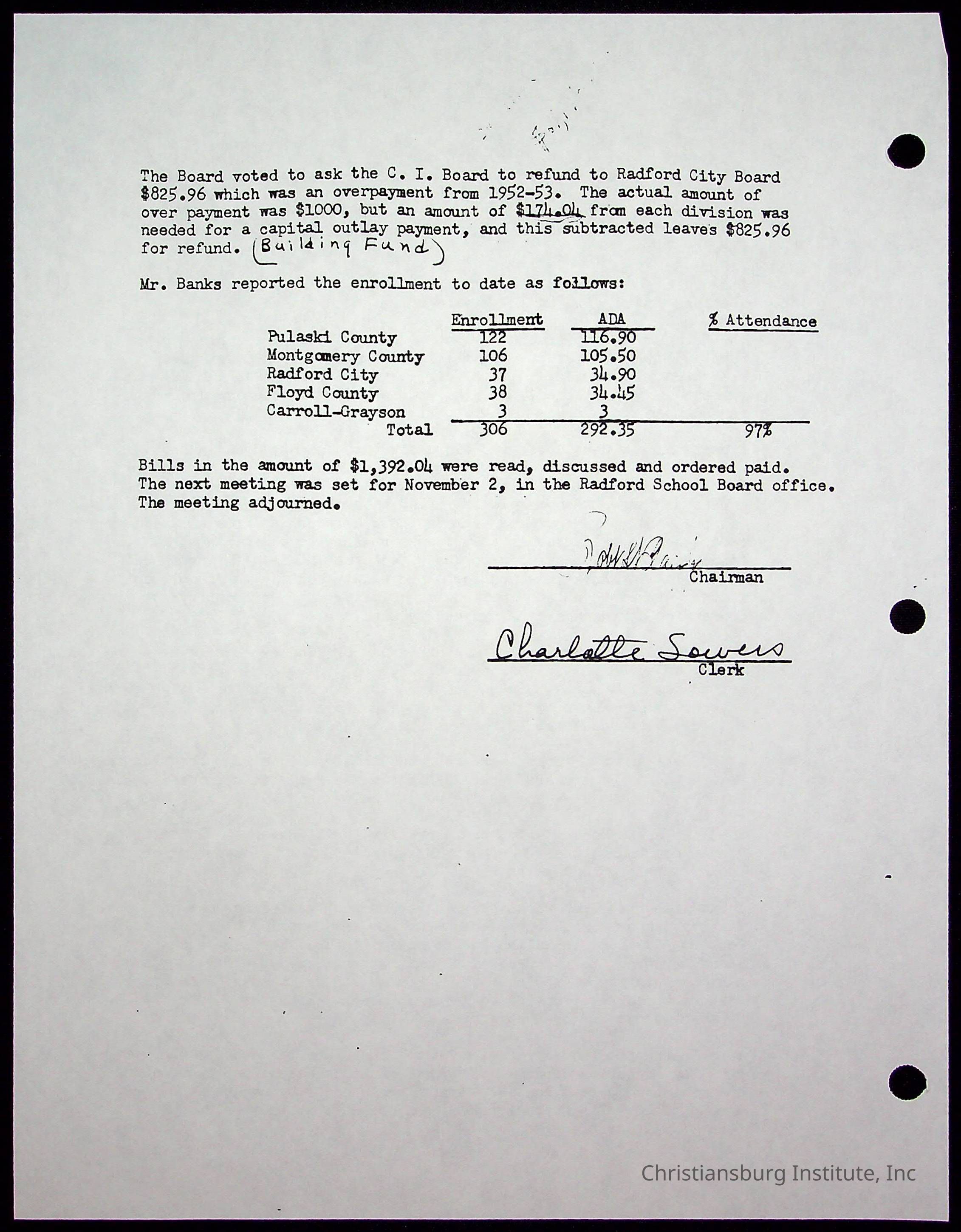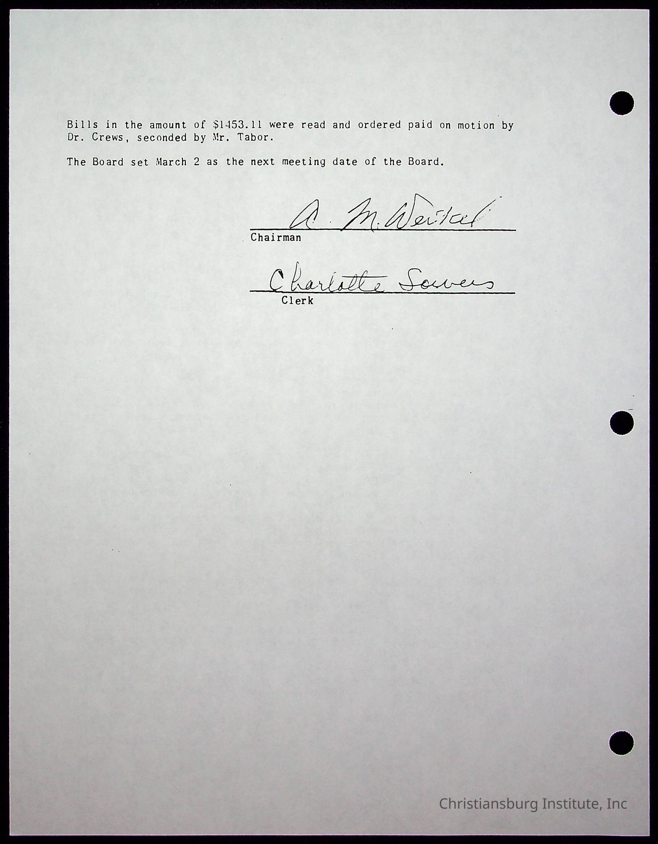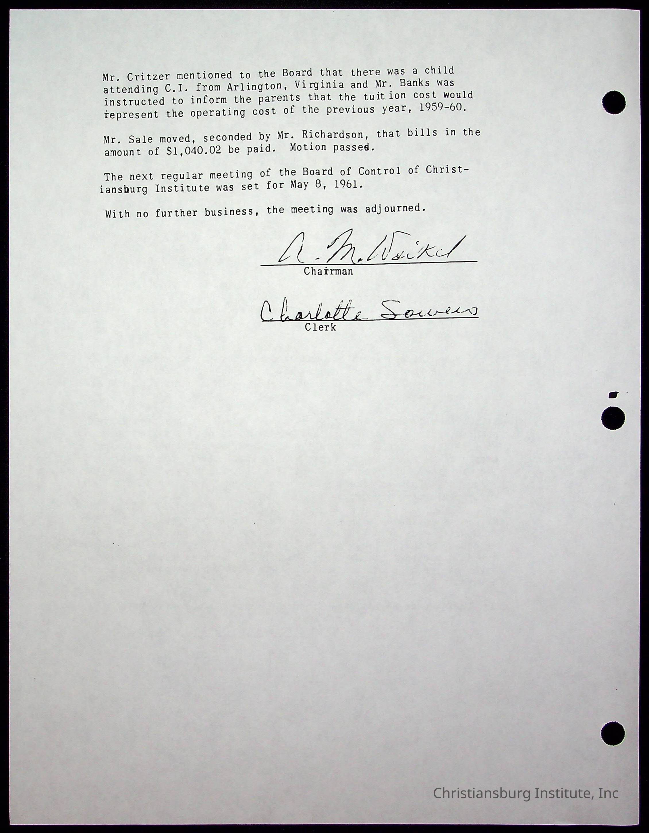 A binder of a photocopy version of the Christiansburg Industrial Institute board minutes from July 1947 through August 1963.Creator