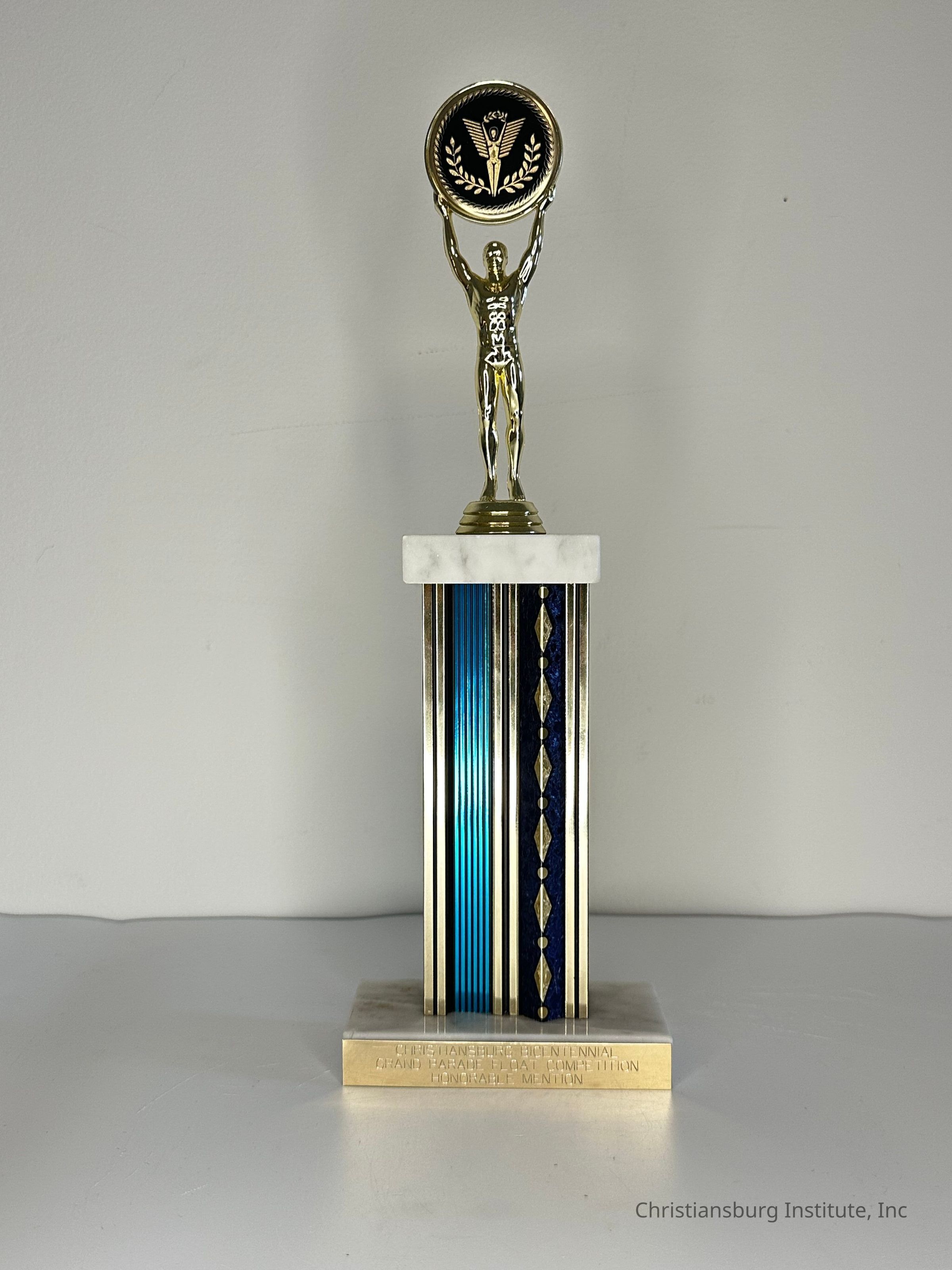 A trophy for the Christiansburg Bicentennial Grand Float Competition awarded to Christiansburg Institute, undated.
