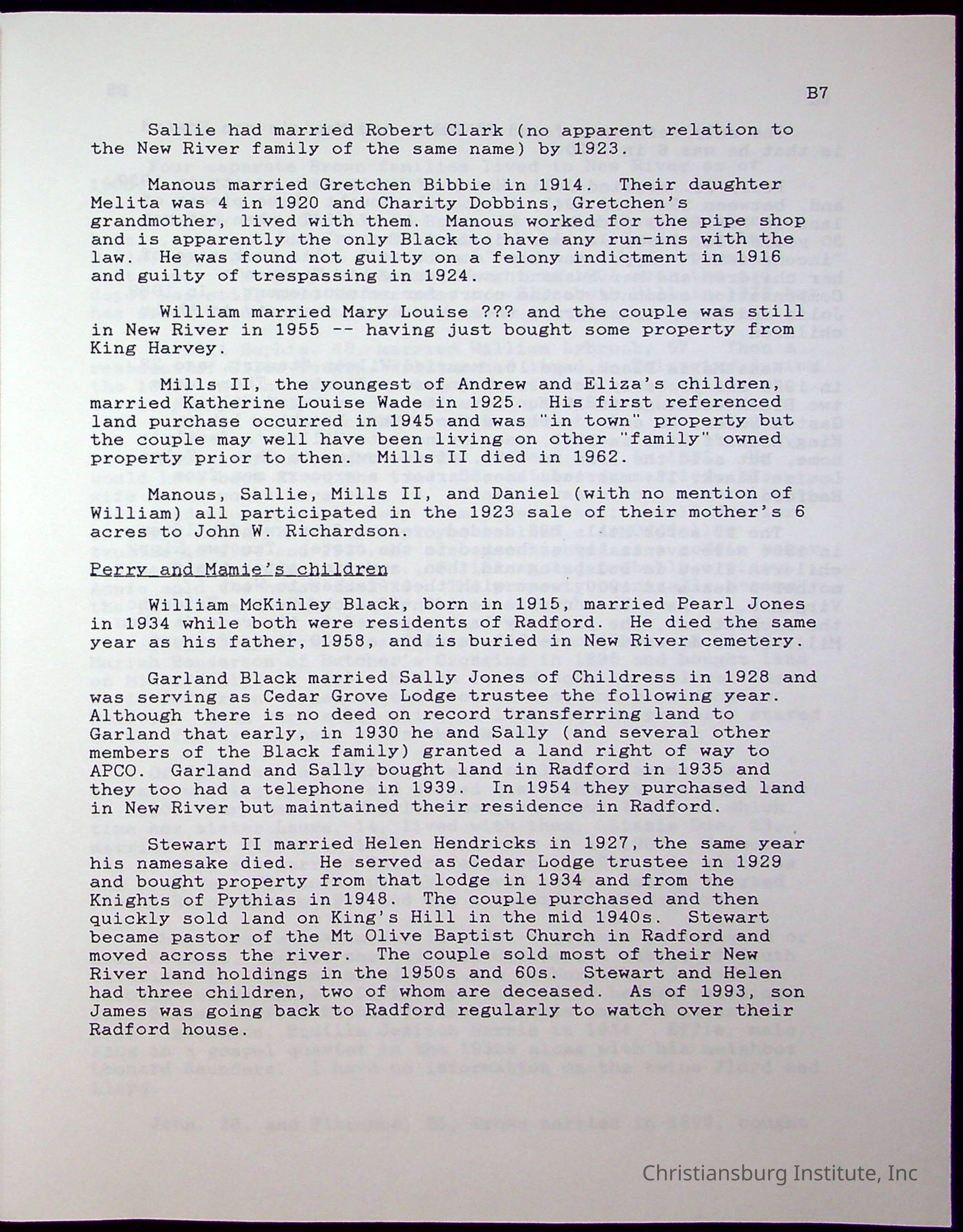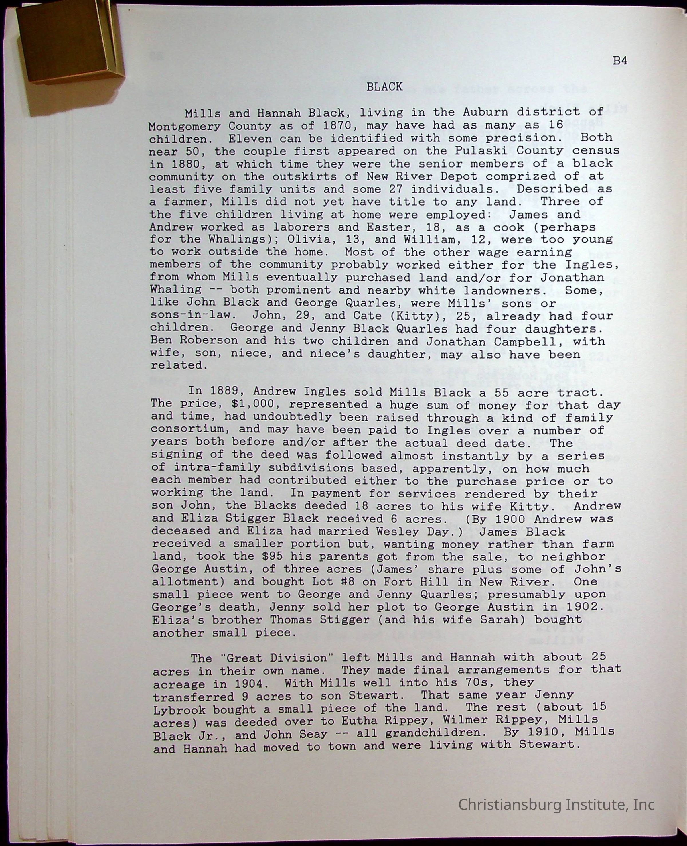 "Making Their Mark: Black Families of New River Depot 1870-1940" written by Dr Linda Killen and published by Radford University in the year 1994.Collection