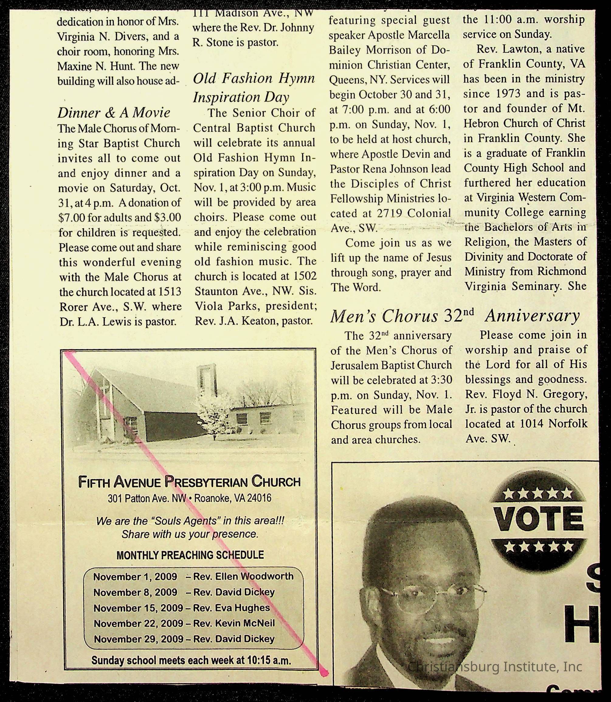 Copyright has been assigned to Christiansburg Institute Museum & Archives by Fifth Avenue Presbyterian Church. For permission to publish materials created by the donor, contact CIMA@christiansburginstitute.com. Materials not created by Fifth Avenue Presbyterian Church may still be under copyright.