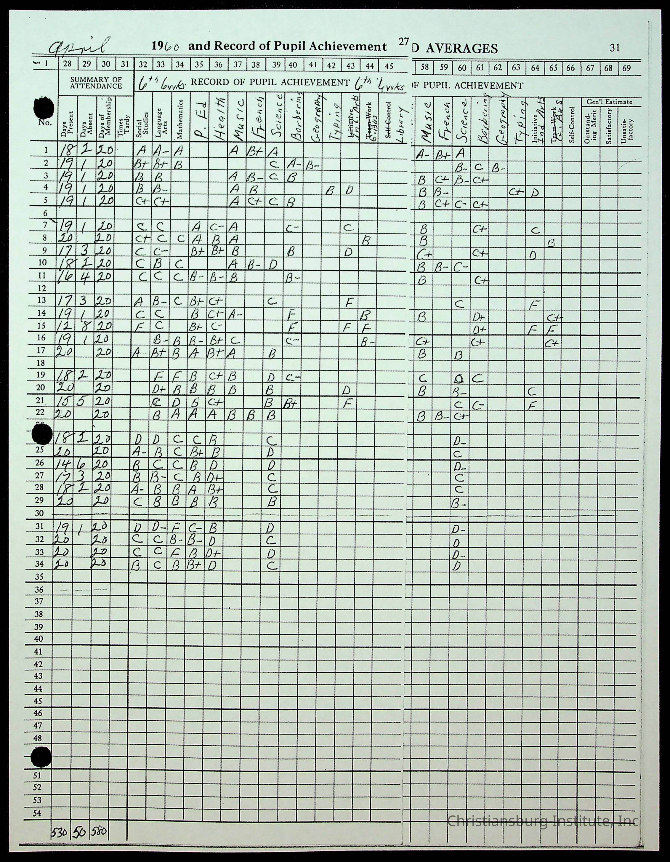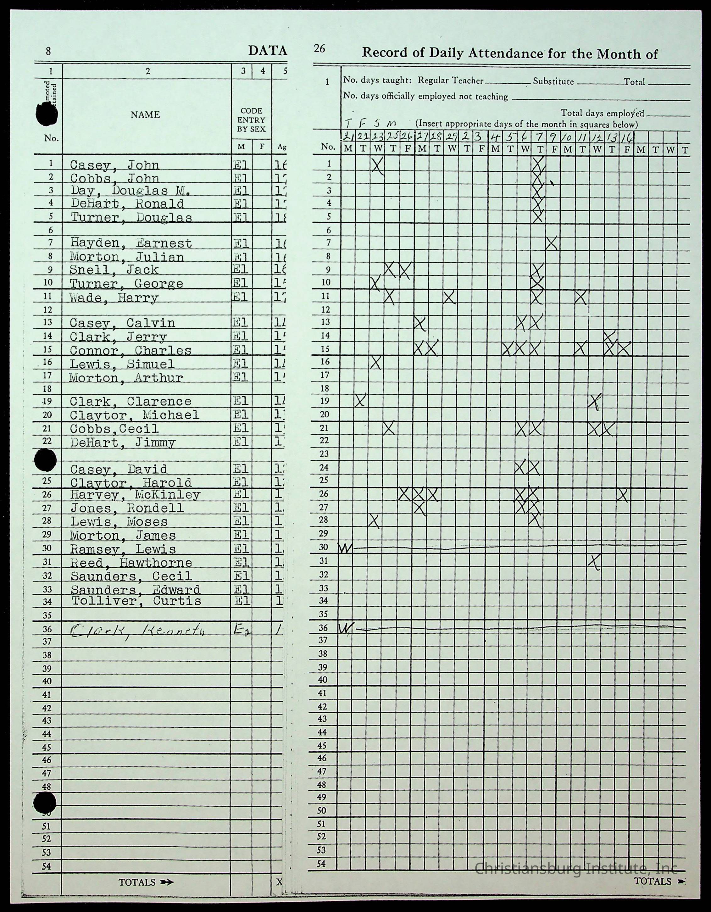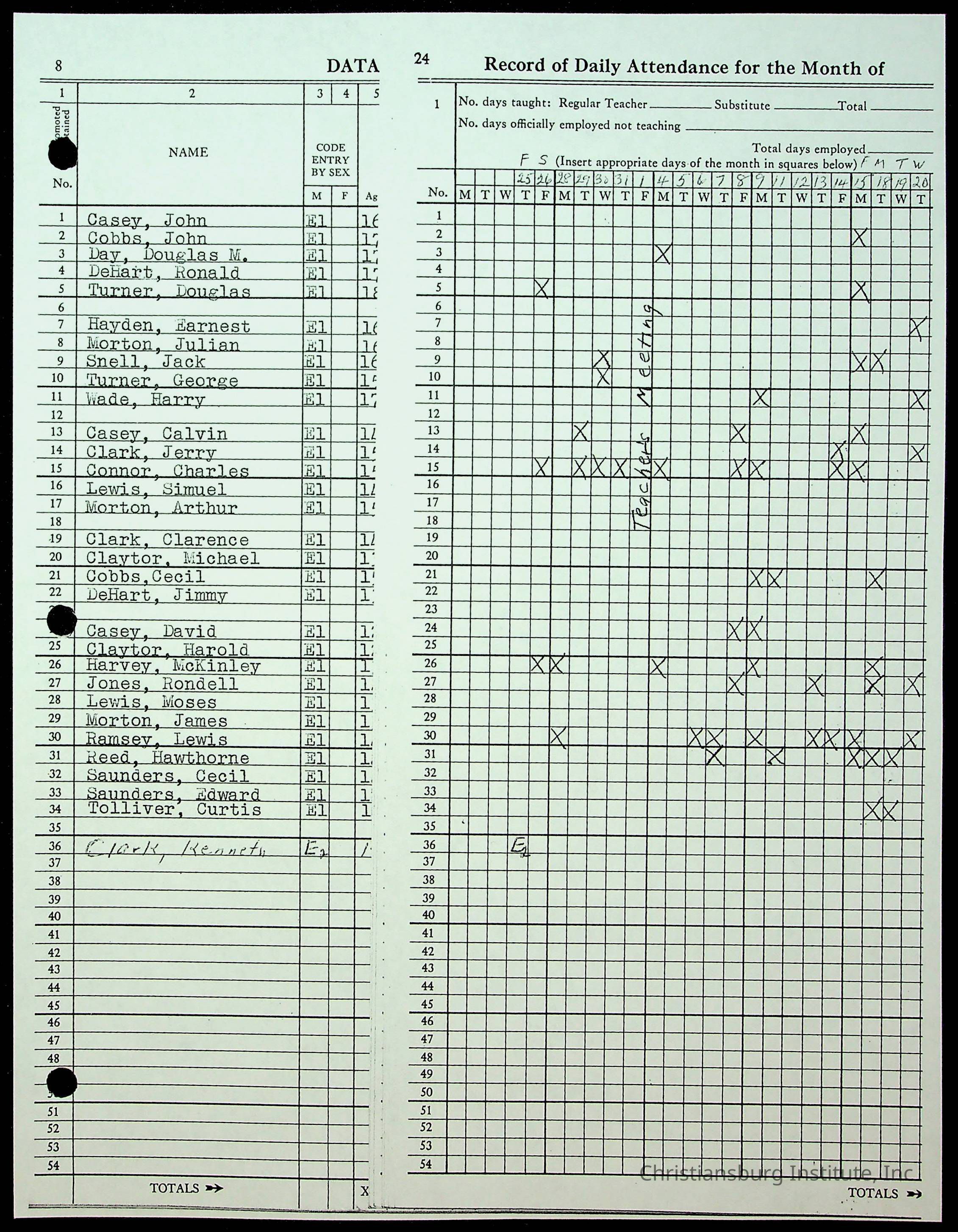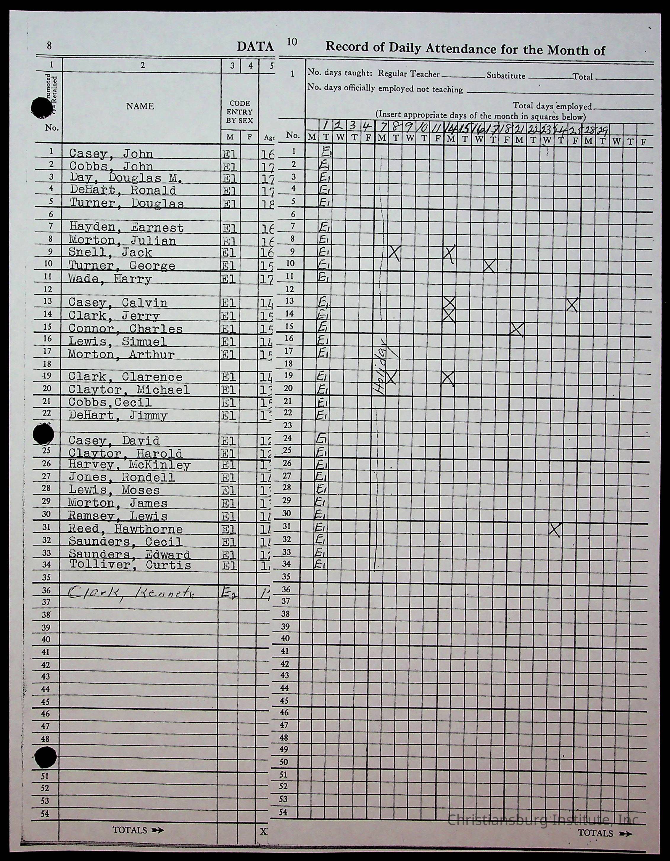 Christiansburg Institute Records of H.E. Clemons, 1959-1960