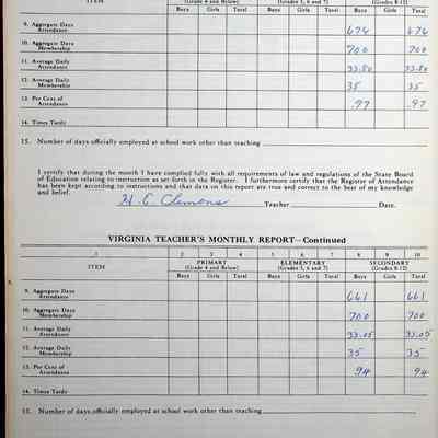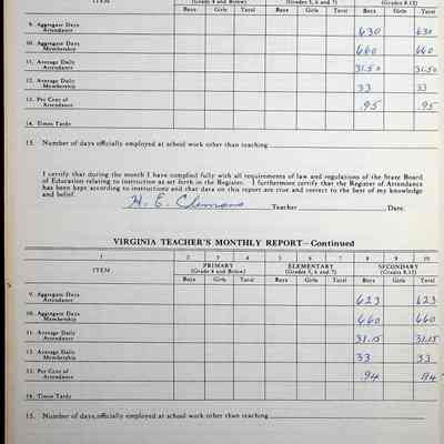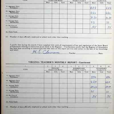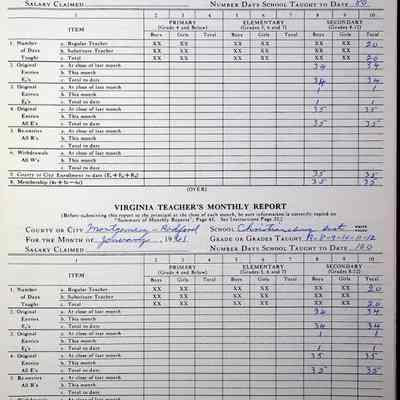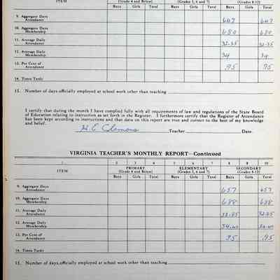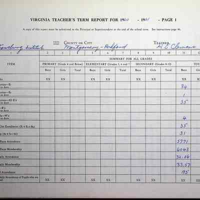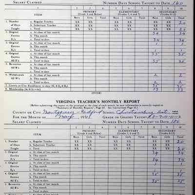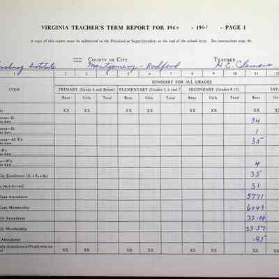 VA Teacher’s Register for H.E. Clemons, 1960-1961 (Radford Boys)Scope and Content