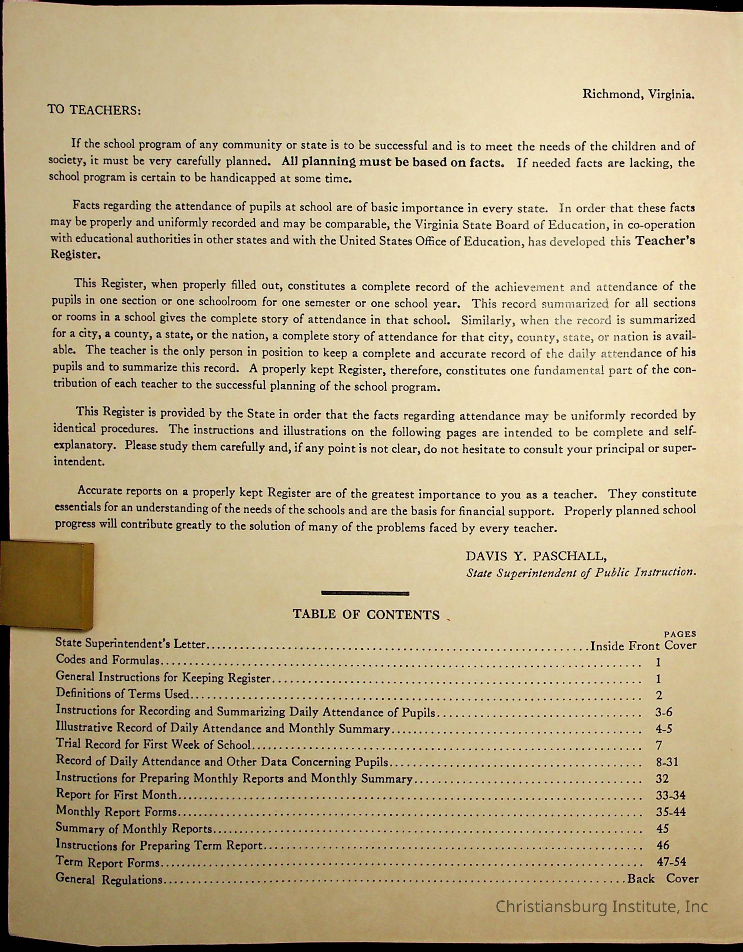 Copyright has been assigned to Christiansburg Institute Museum & Archives by Montgomery County Public Schools. For permission to publish materials created by the donor, contact CIMA@christiansburginstitute.com. Materials not created by Christiansburg Industrial Institute may still be under copyright.