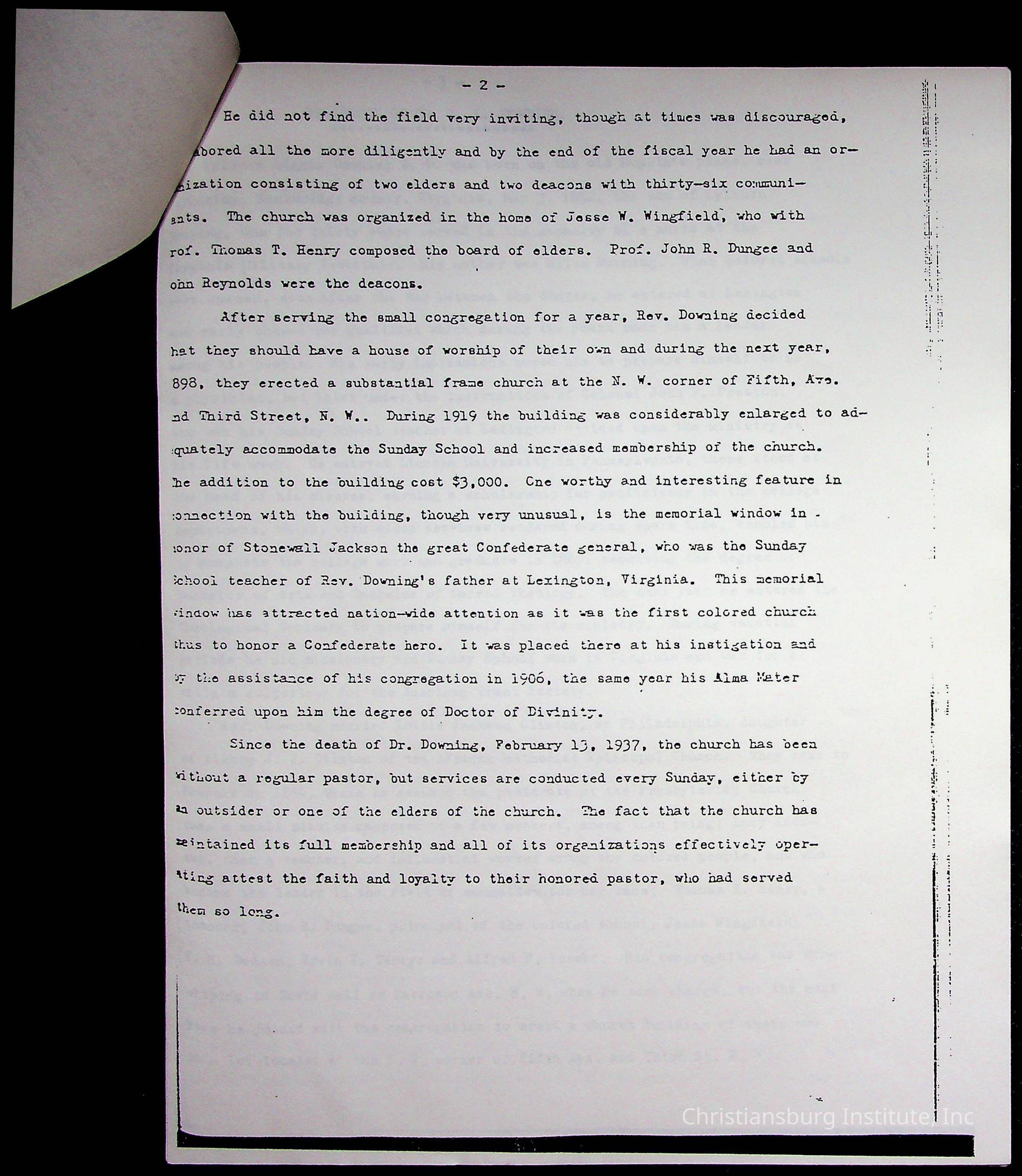 Copyright has been assigned to Christiansburg Institute Museum & Archives by Fifth Avenue Presbyterian Church. For permission to publish materials created by the donor, contact CIMA@christiansburginstitute.com. Materials not created by Fifth Avenue Presbyterian Church may still be under copyright.