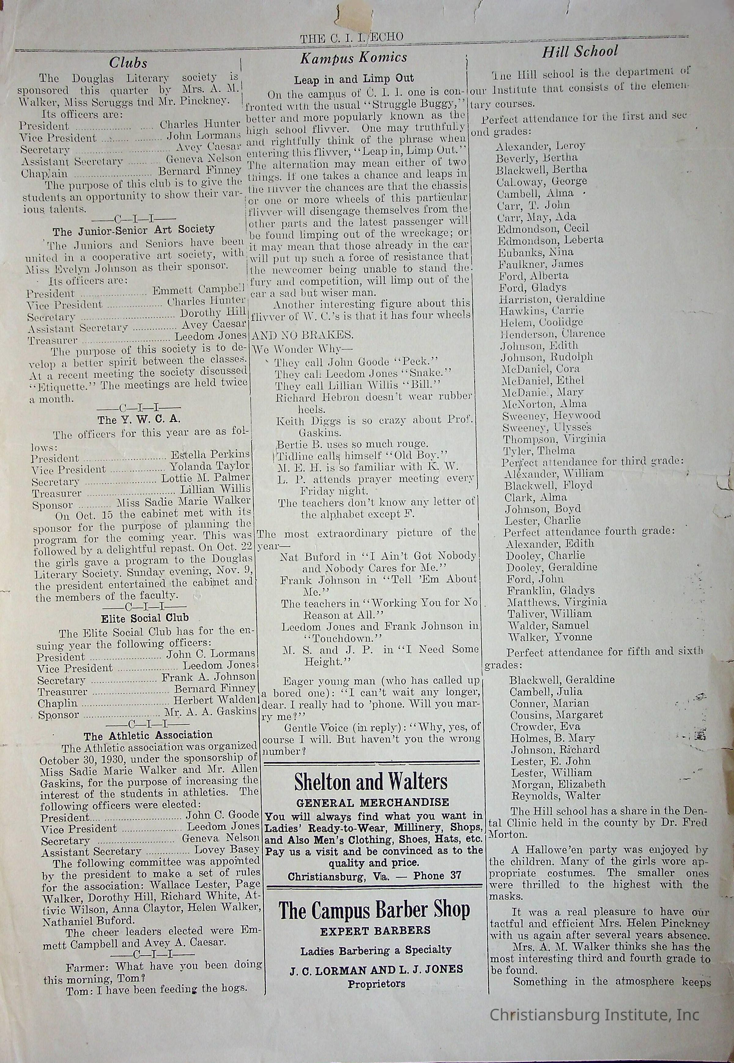 Christiansburg Industrial InstitutePlace Printed