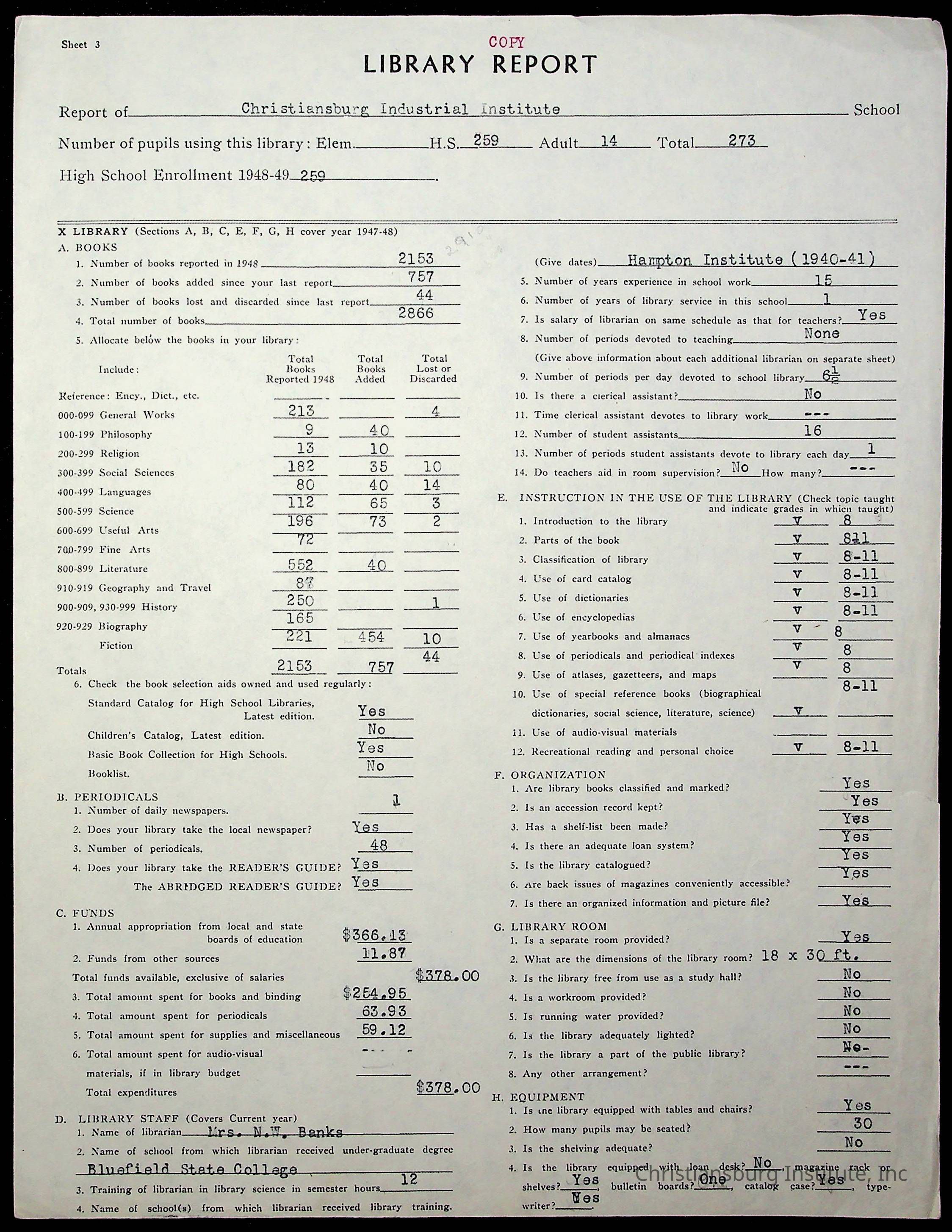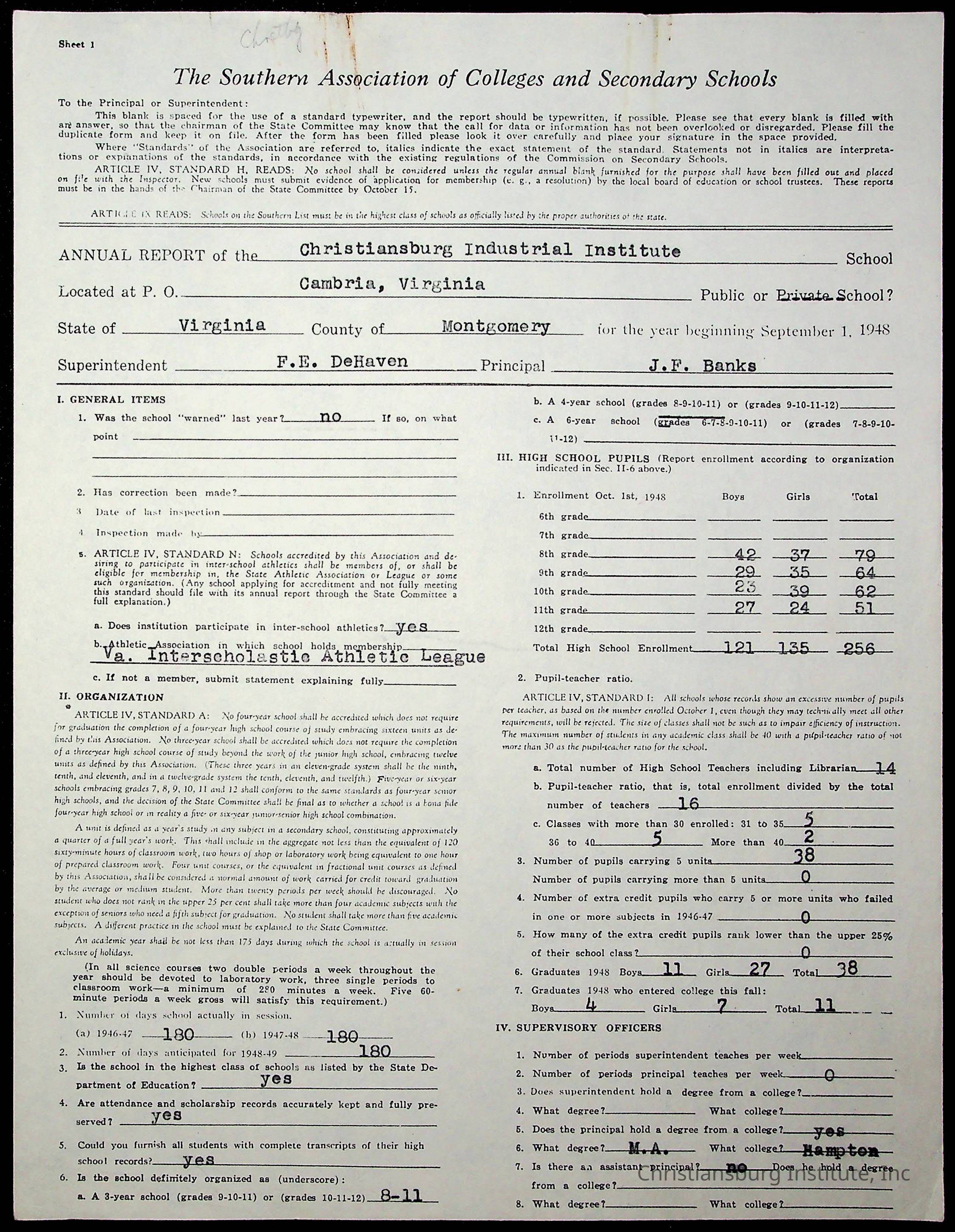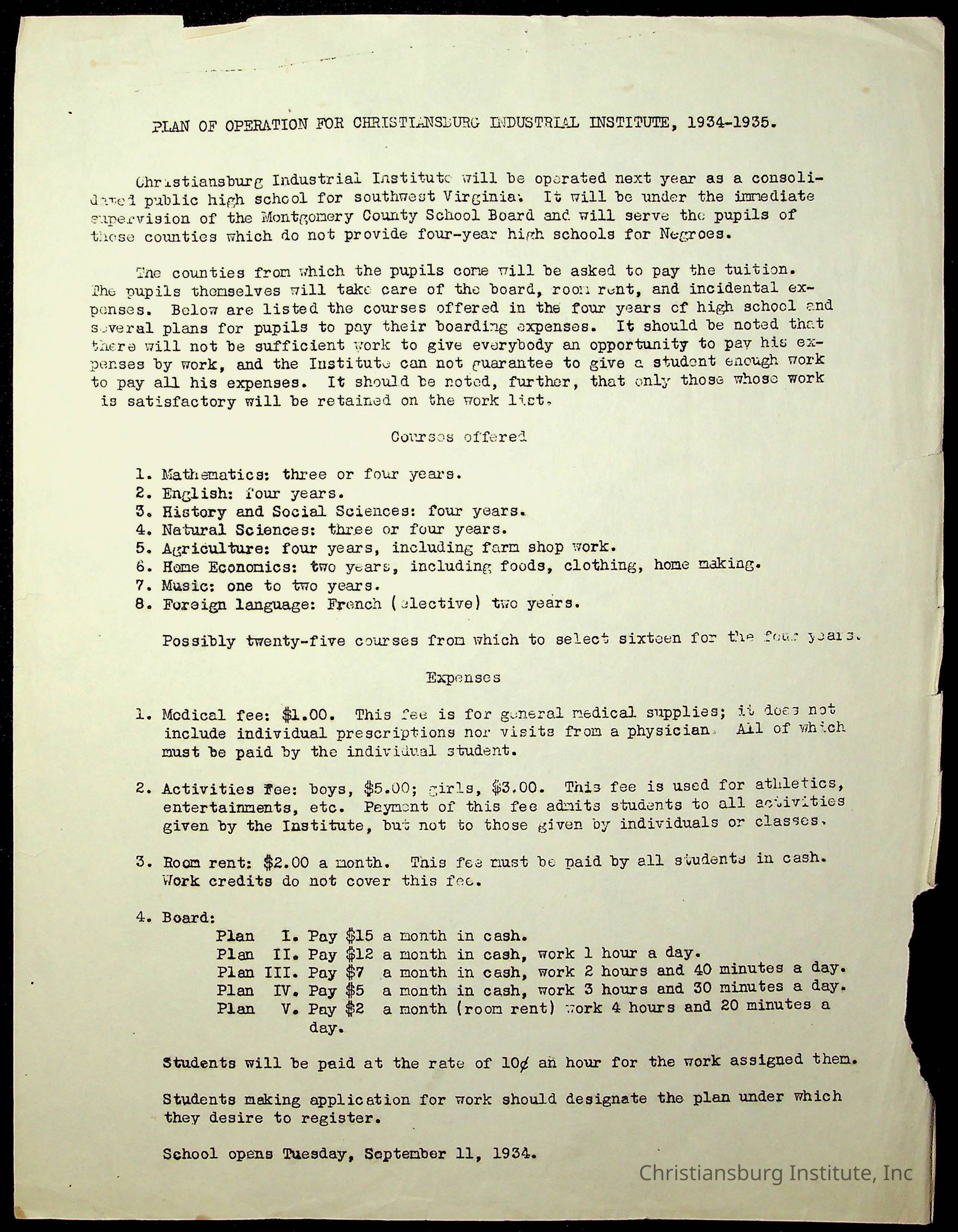 Copyright has been assigned to Christiansburg Institute Museum & Archives by Montgomery County Public Schools. For permission to publish materials created by the donor, contact CIMA@christiansburginstitute.com. Materials not created by Christiansburg Industrial Institute may still be under copyright.