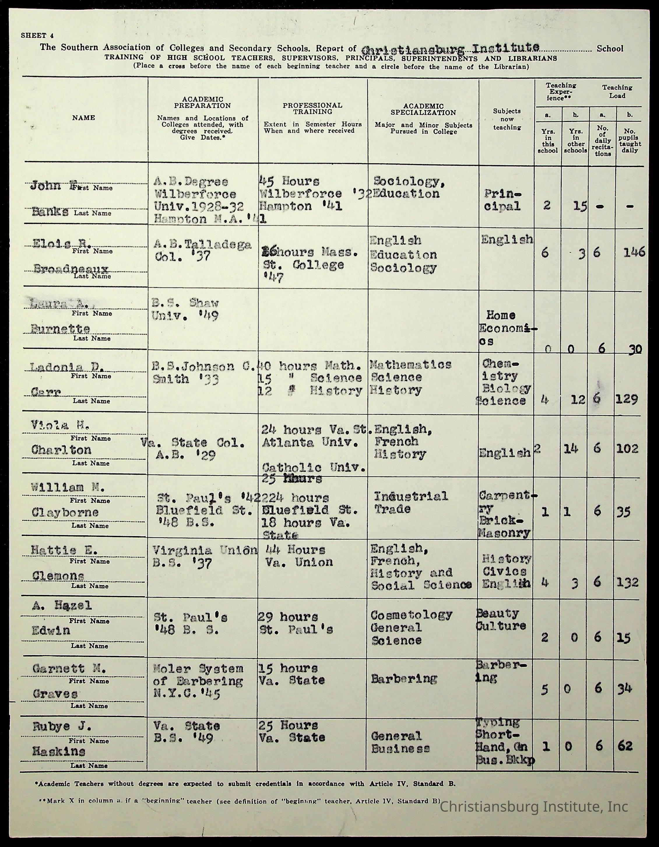 Christiansburg Institute, Southern Association of Colleges and Schools, Wilkerson, Woodrow, Banks, John F.Related Places