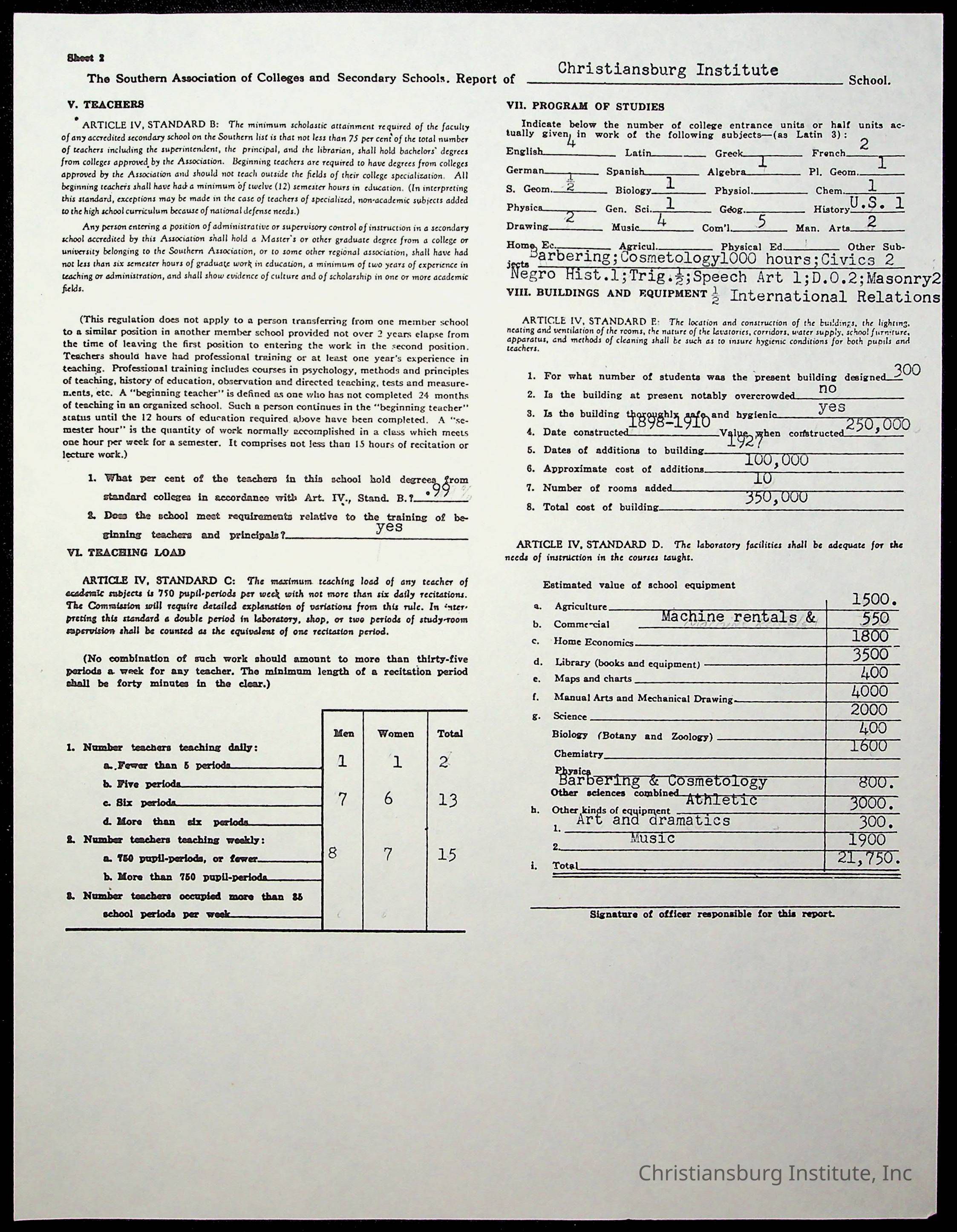 The second folder of an archive of material relating to the reports to the Southern Association of Colleges and Secondary Schools in Richmond, Virginia. Materials include correspondence, reports, and forms dated 1934-1964.Collection