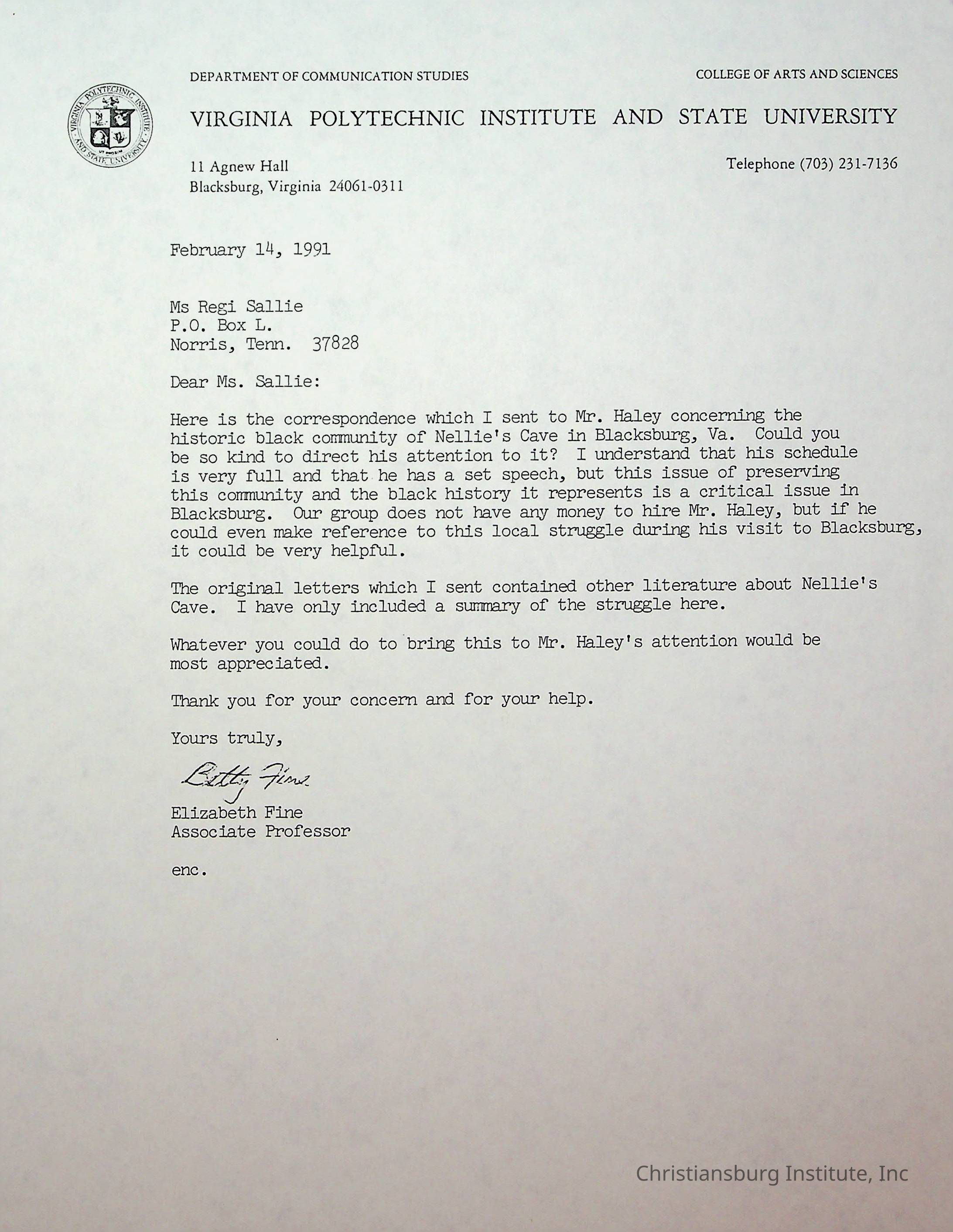 An archive of correspondence between Alex Haley and Elizabeth Fine and Aubrey Mills regarding Nellies Cave, circa 1990s.