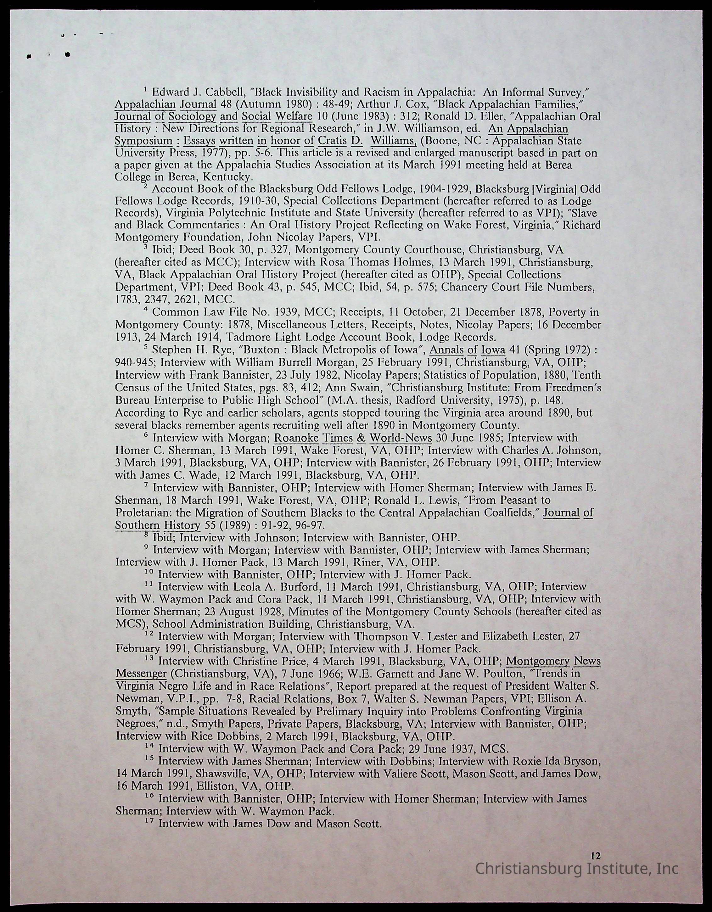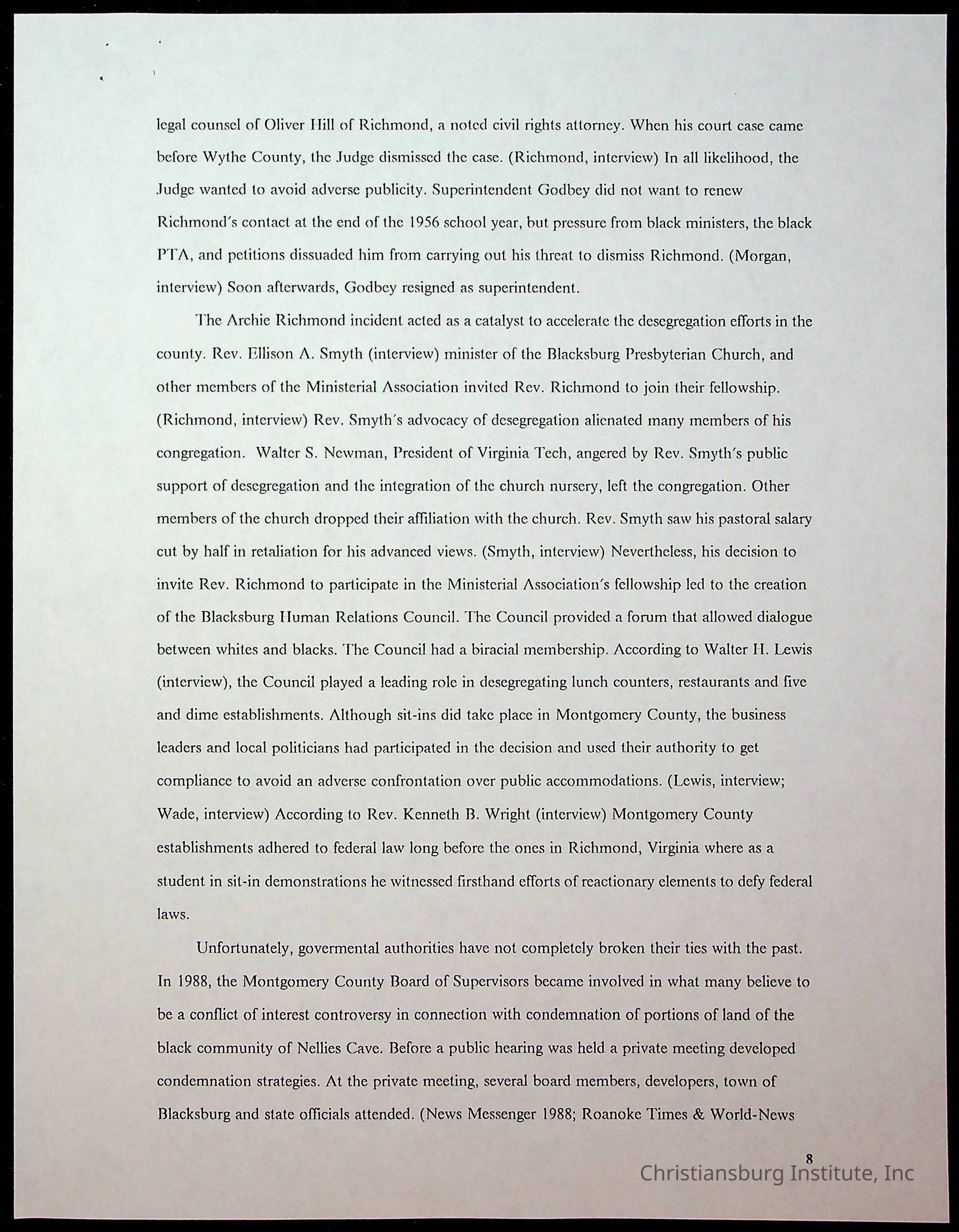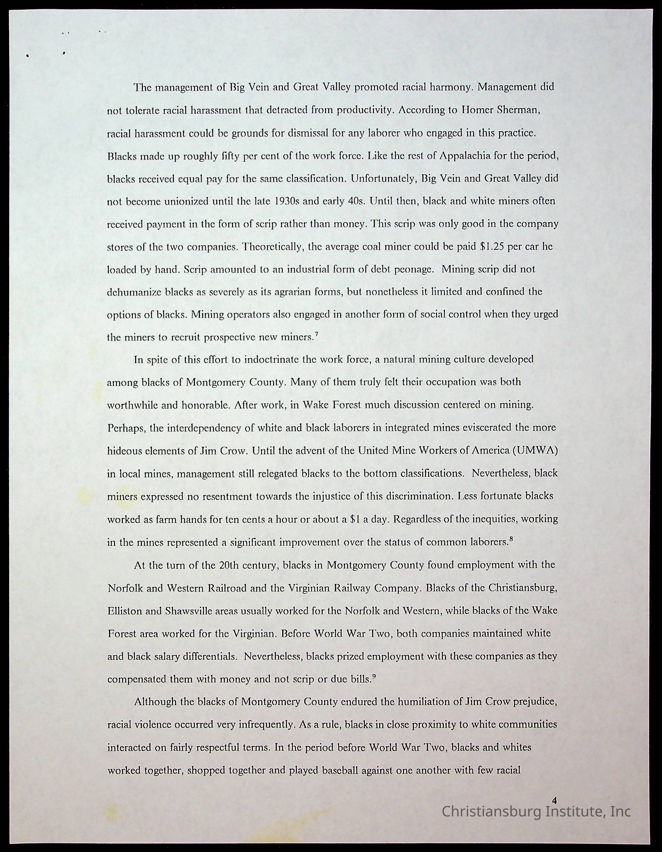 Cooke Race Relations in Montgomery Co., VAScope and Content