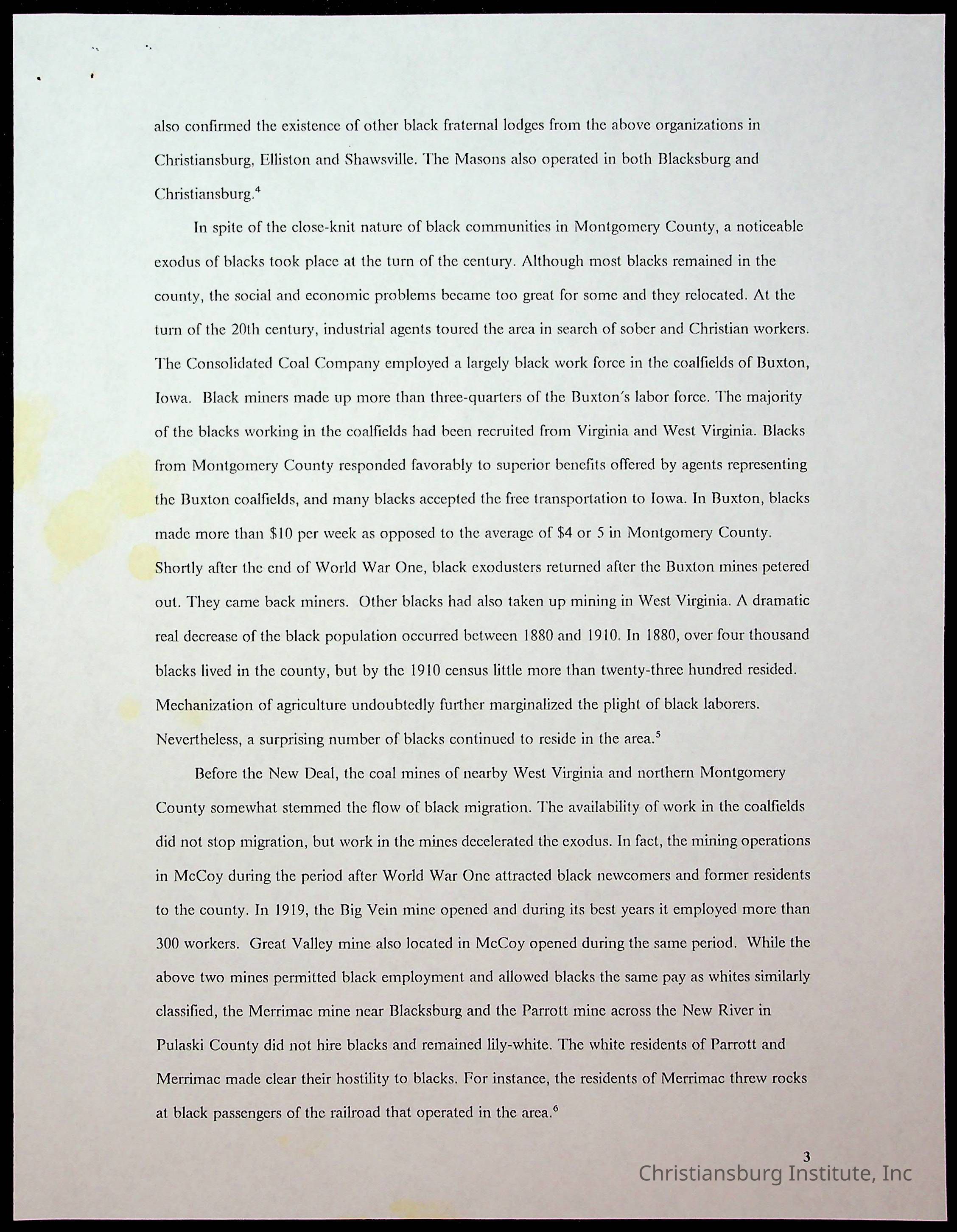 An academic paper titled 'Race Relations in Montgomery County, Virginia, 1870-1990' written by Michael A. Cooke, assistant professor of history at Virginia Tech, dated March 1991.Collection