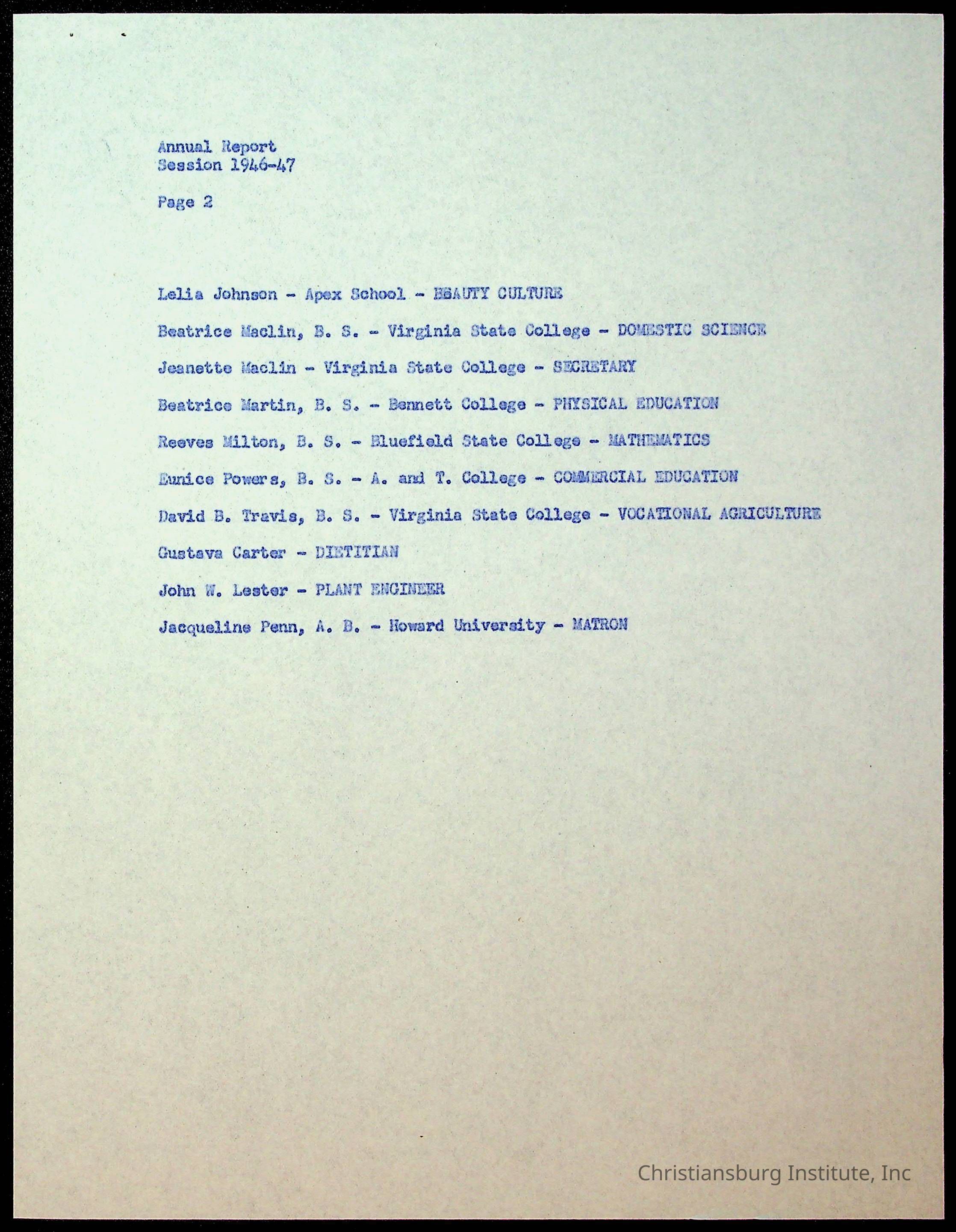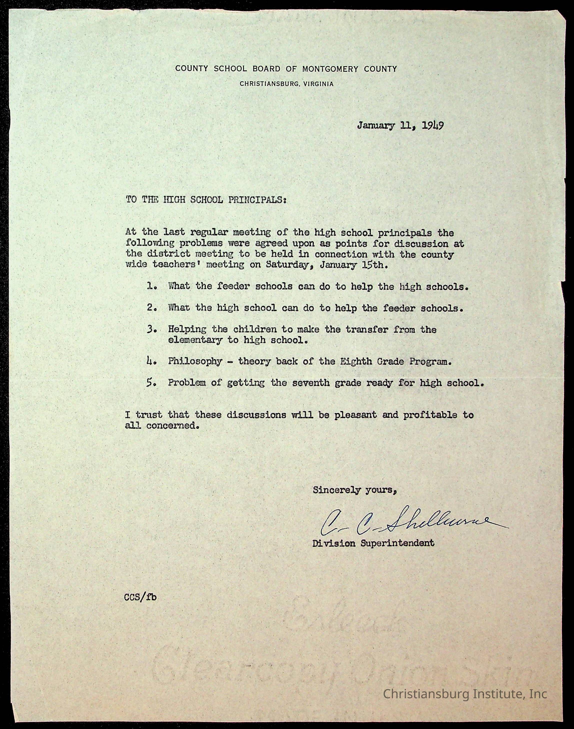 Copyright has been assigned to Christiansburg Institute Museum & Archives by Montgomery County Public Schools. For permission to publish materials created by the donor, contact CIMA@christiansburginstitute.com. Materials not created by Christiansburg Industrial Institute may still be under copyright.